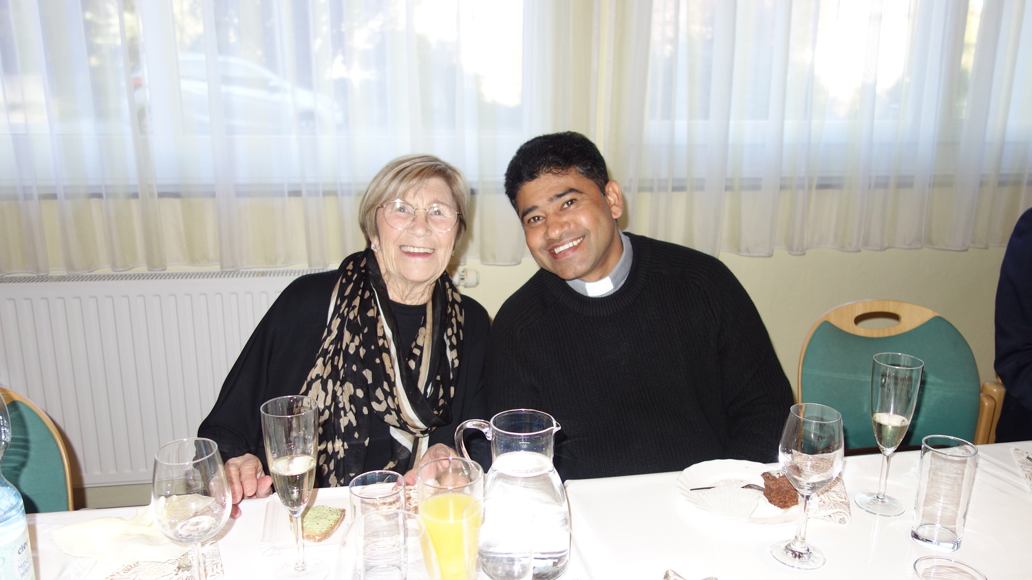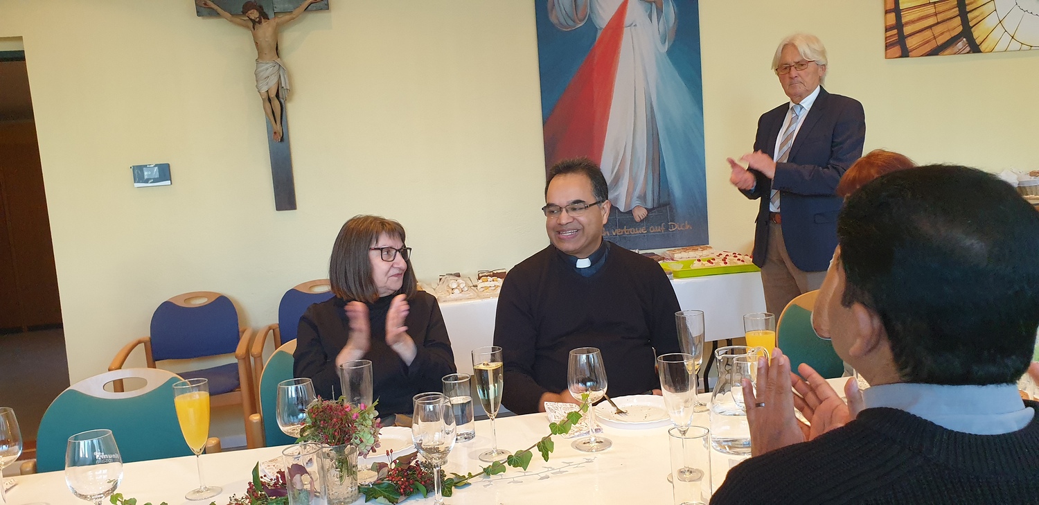 Am Ende des Gottesdienstes erteilte Pater Kuruvila den Segen - ganz besonders erwähnt wurden auch hier die Jubilare. Im Anschluß an den Segen luden Pater Kuruvila und die Pfarre Bad Sauerbrunn die Jubilare zu einer kleinen Feier in den Kommunikationsraum der Kirche.