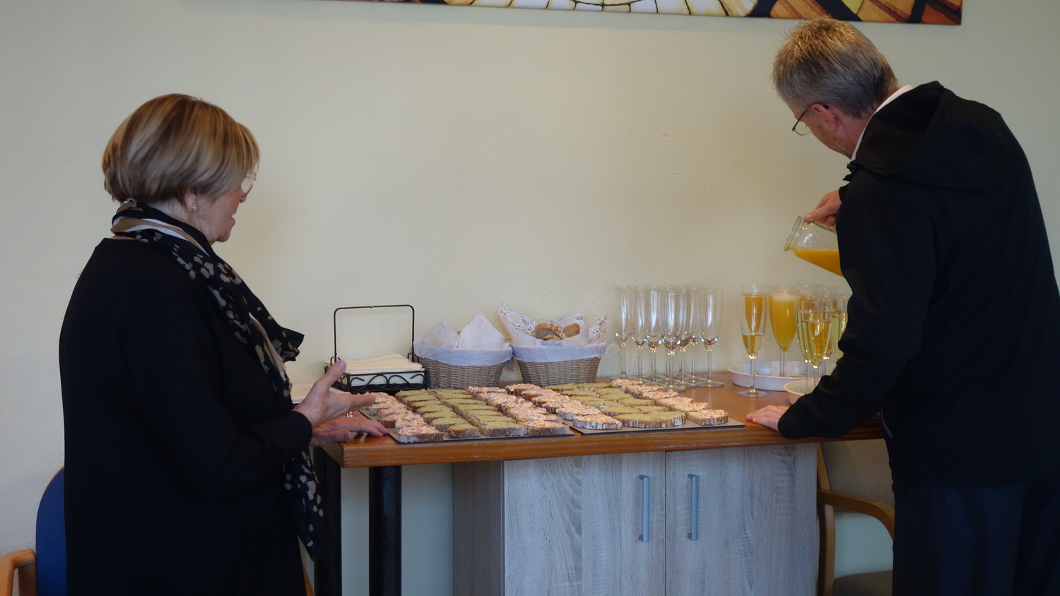 Auch hier fanden die Jubilare einen festlich geschmückten Raum vor. Es gab Aufstrichbrote, mit schmackhaten Aufstrichen von Elisabeth Hanner und Nadja Hutter. Viele Pfarrmitglieder ließen es sich nicht nehmen, für die Jubilare dieses Jahres, ihre Backkünste unter Beweis zu stellen und so gab es sehr delikate Mehlspeisen. Es gab so viel davon, dass den Jubilaren auf Wunsch auch Mehlspeise für eine Feier zu Hause mitgegeben werden konnte.