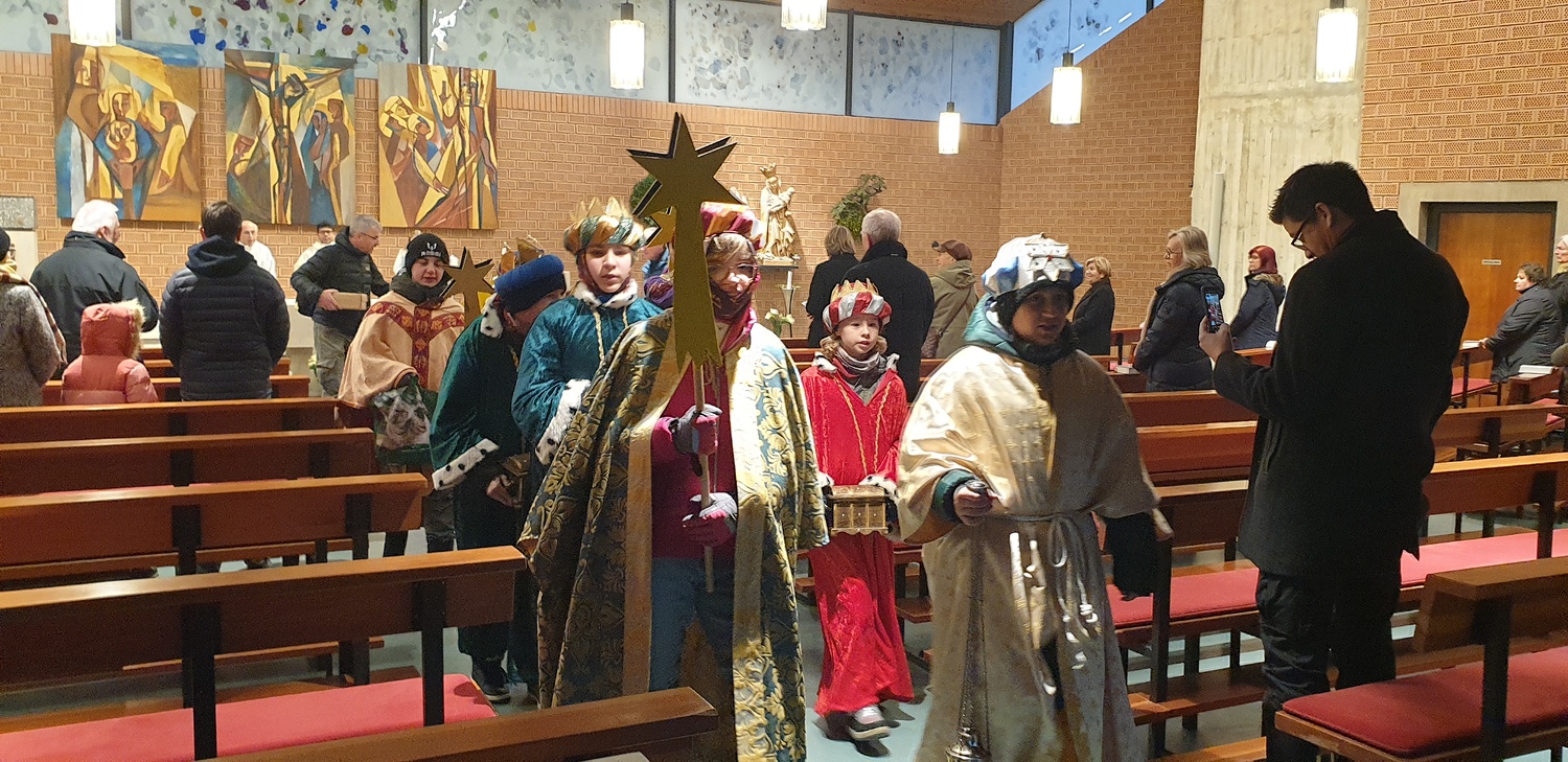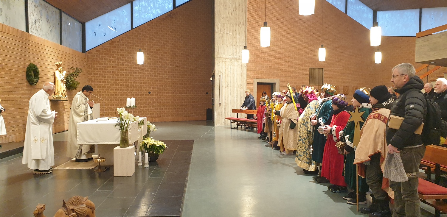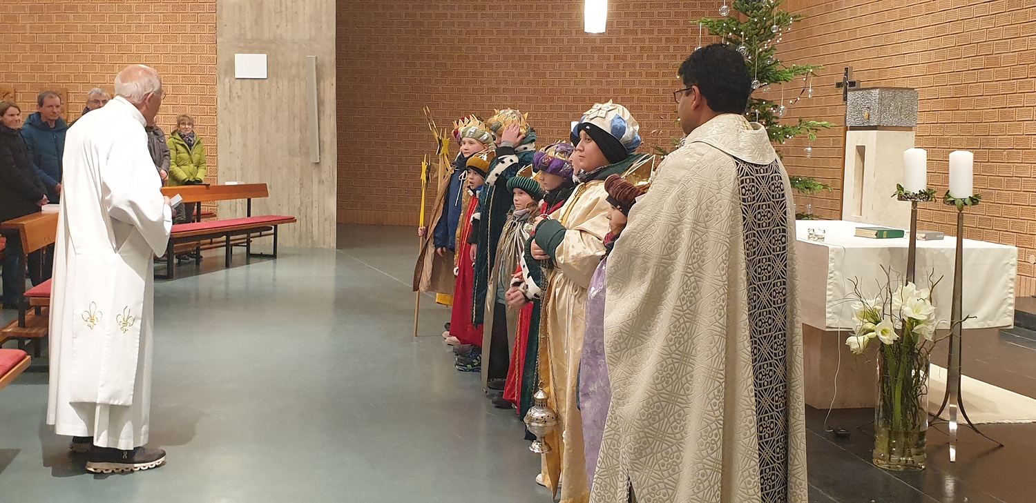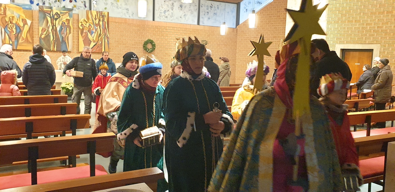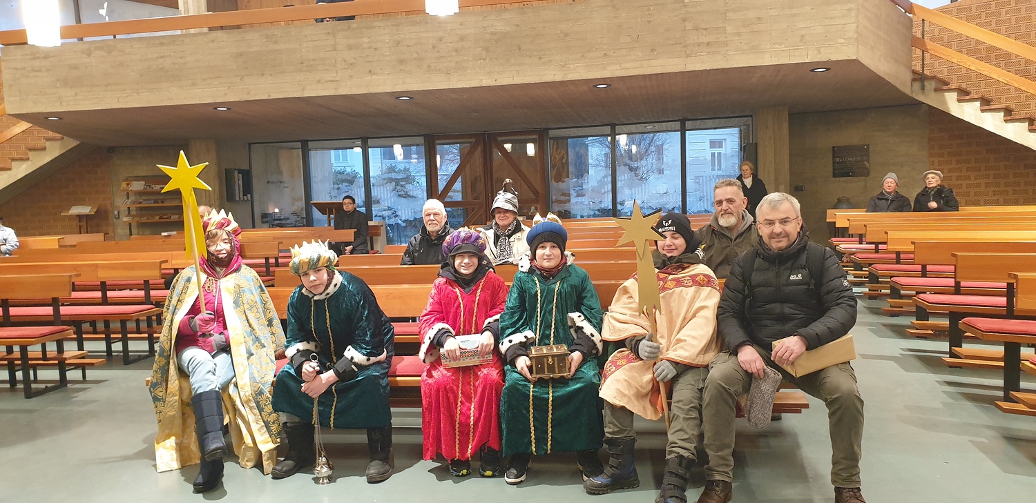 Am 6. Jänner 2024 ab 0830 Uhr war es soweit. Nach der Segnung und Entsendung der "Heiligen Drei Könige" durch Pater Rijo, machten sich diese auf