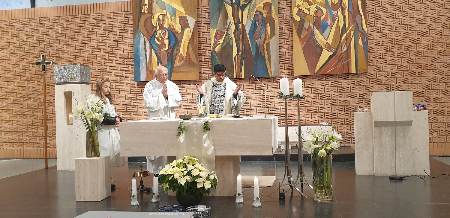 Sternsinger bei der Segnung und Entsendung durch Pater Rijo