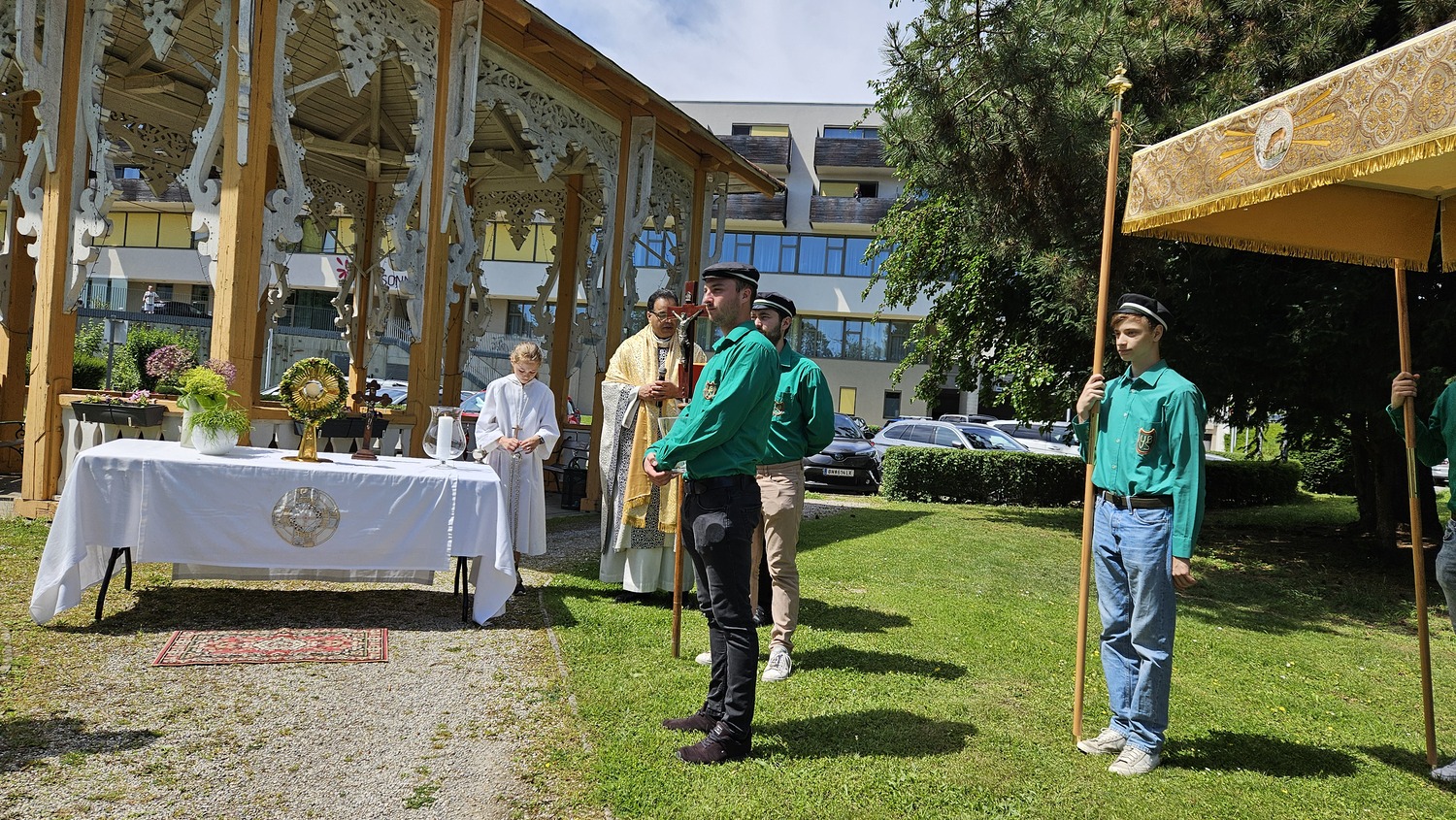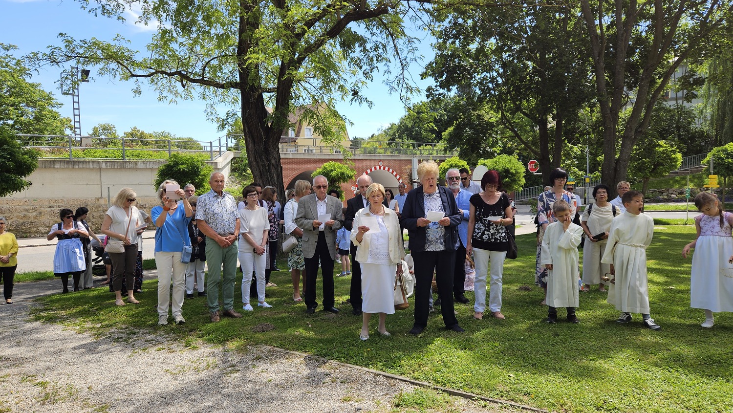 Auch wenn, wie es scheint, die Zeit der großen Prozessionen vorbei ist, nahmen sehr viele Messbesucher im Anschluss an die Hl. Messe an der Fronleichnamsprozession teil, die in den Ortskern über den Hauptplatz führte, durch Schulgasse, Kurpark und Rosarium, durch die Postgasse und über Hauptplatz und Kirchengasse wieder zurück in die Kirche.