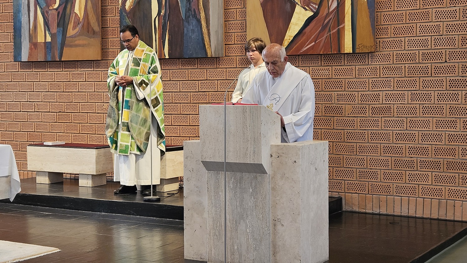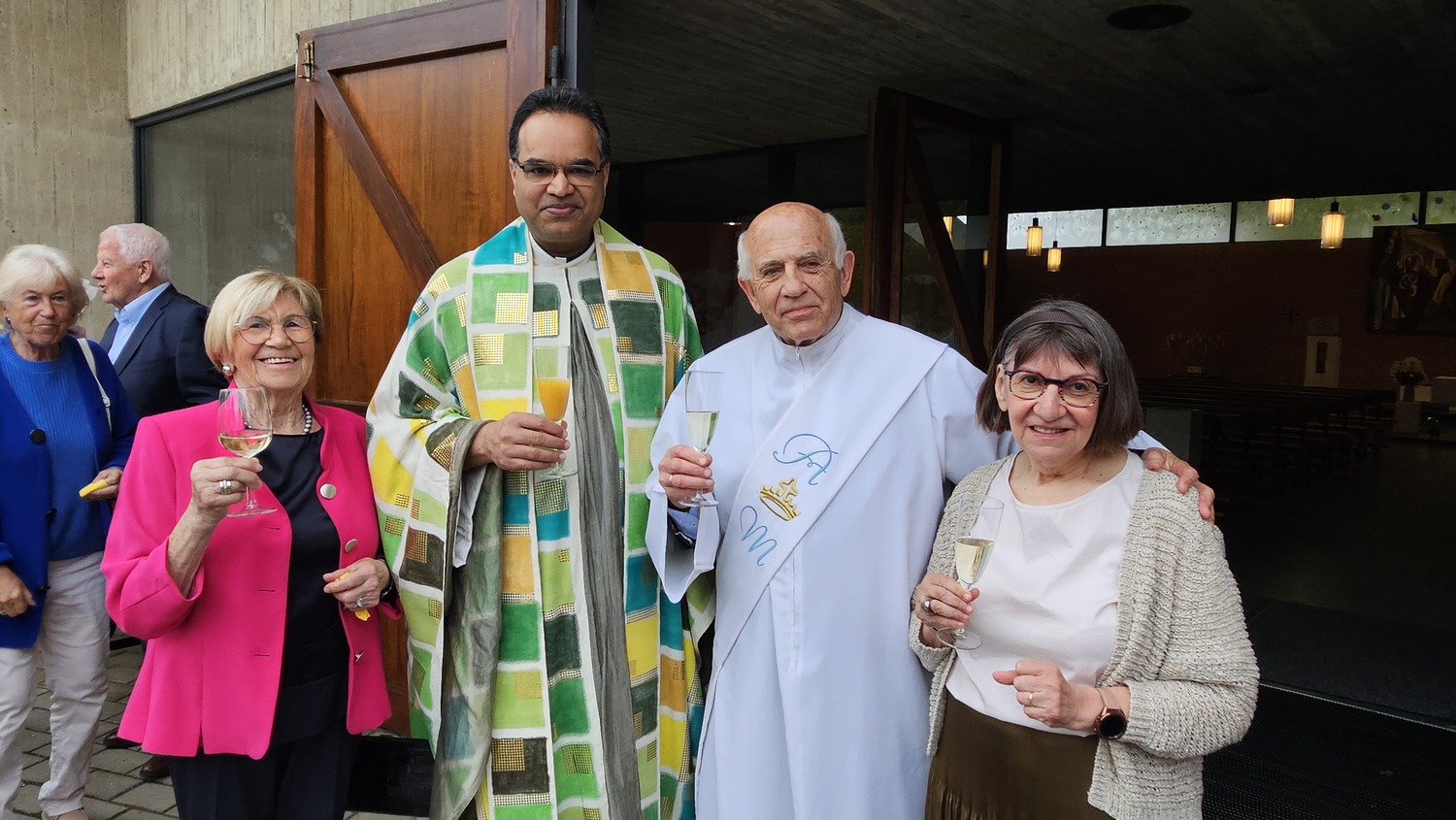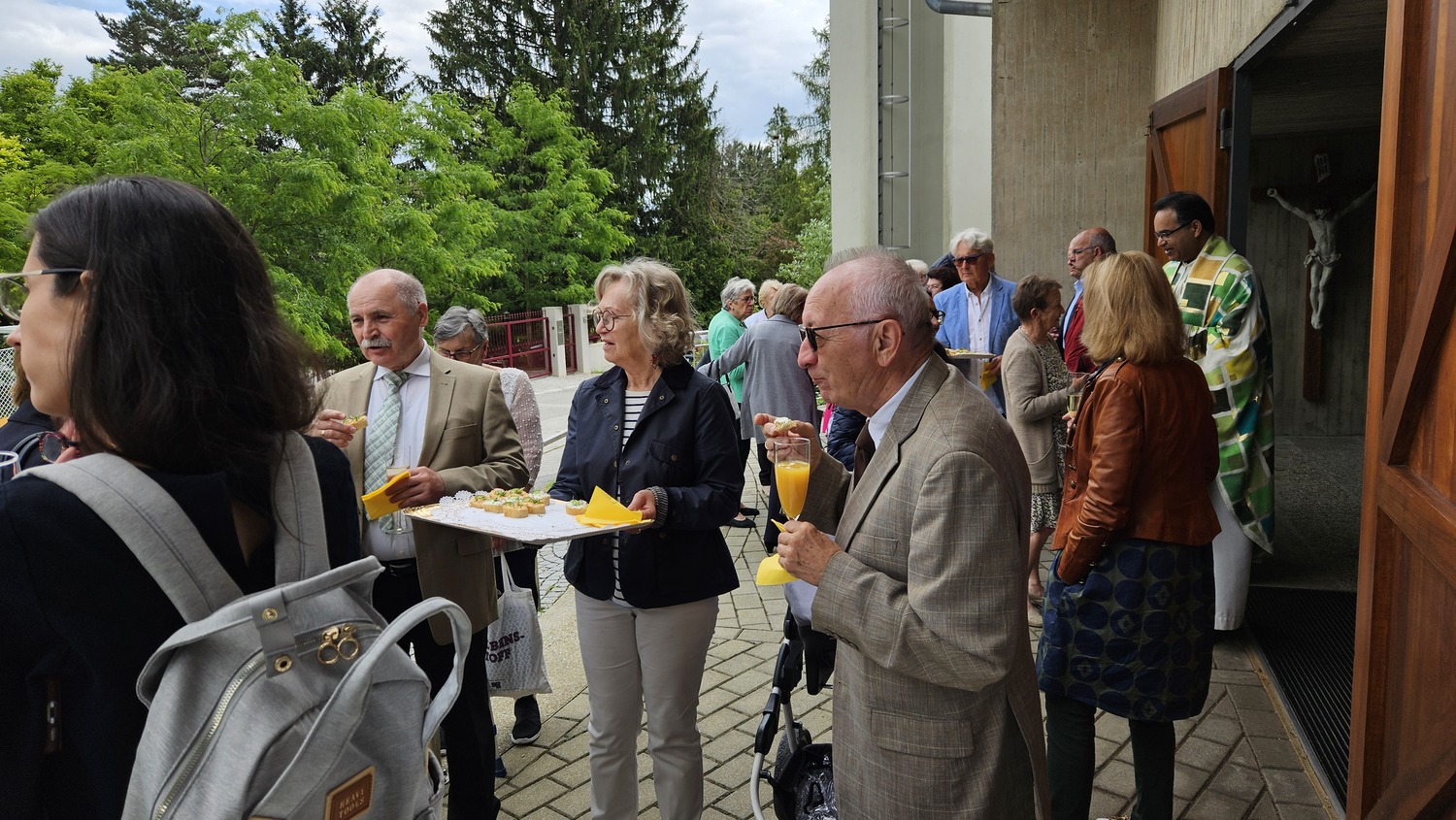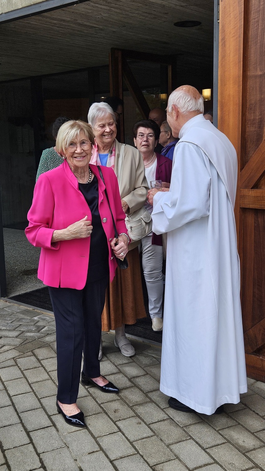 Die heilige Messe am 2. Juni 2024 um 10 Uhr wurde von Pater Kuruvila und Diakon Dr. Peter Zotti zelebriert. Dass es eine besondere Sonntagsmesse war, merkte man bald. Vor der Pfarrkirche waren schön geschmückte Tische aufgestellt und es war für eine Agape vorbereitet.