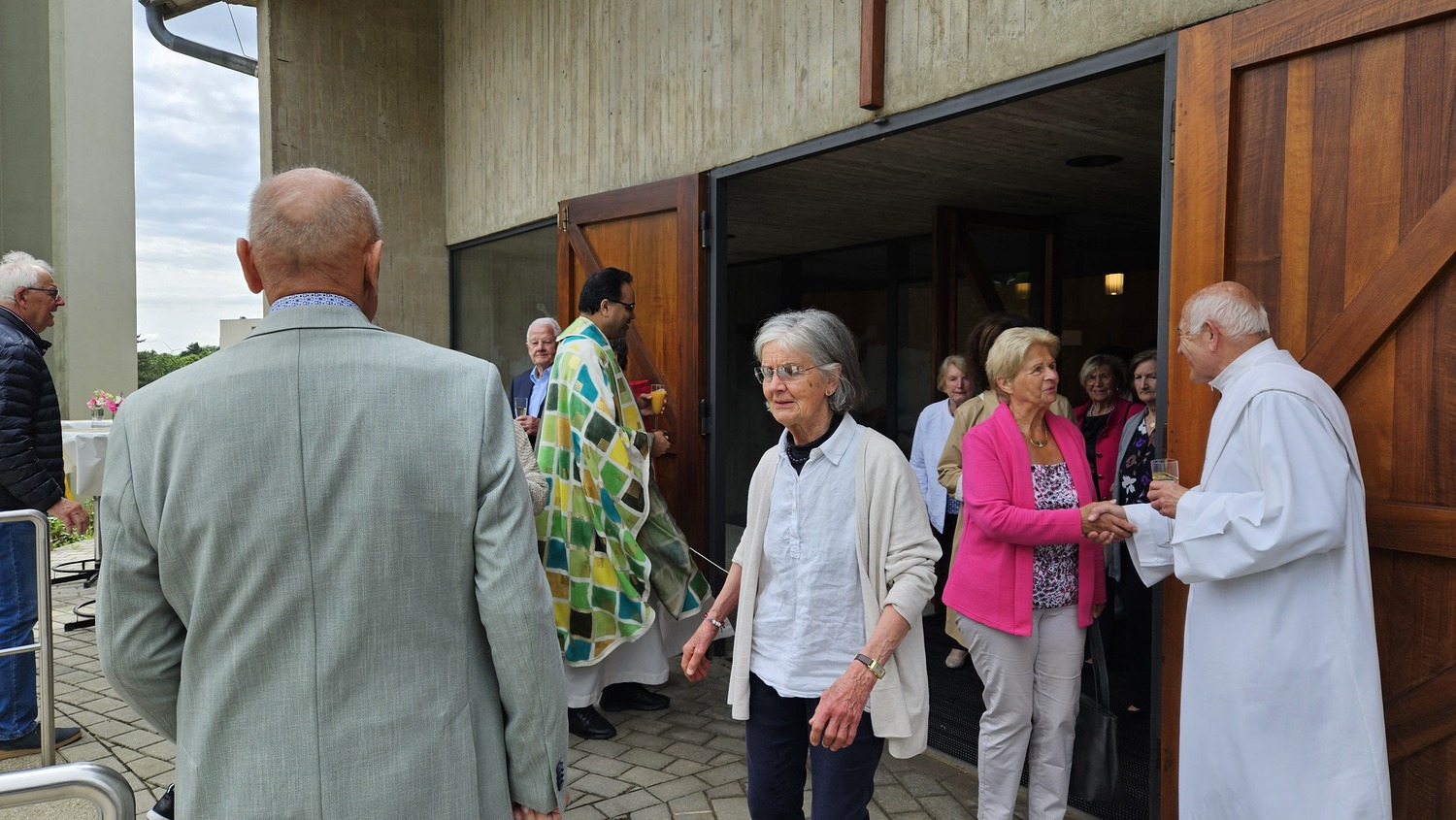 Nach dem Auszug durch das Hauptportal begab man sich zur Agape und hier hatten dann alle Kirchbesucher die Möglichkeit, dem Herrn Diakon persönlich zu gratulieren.