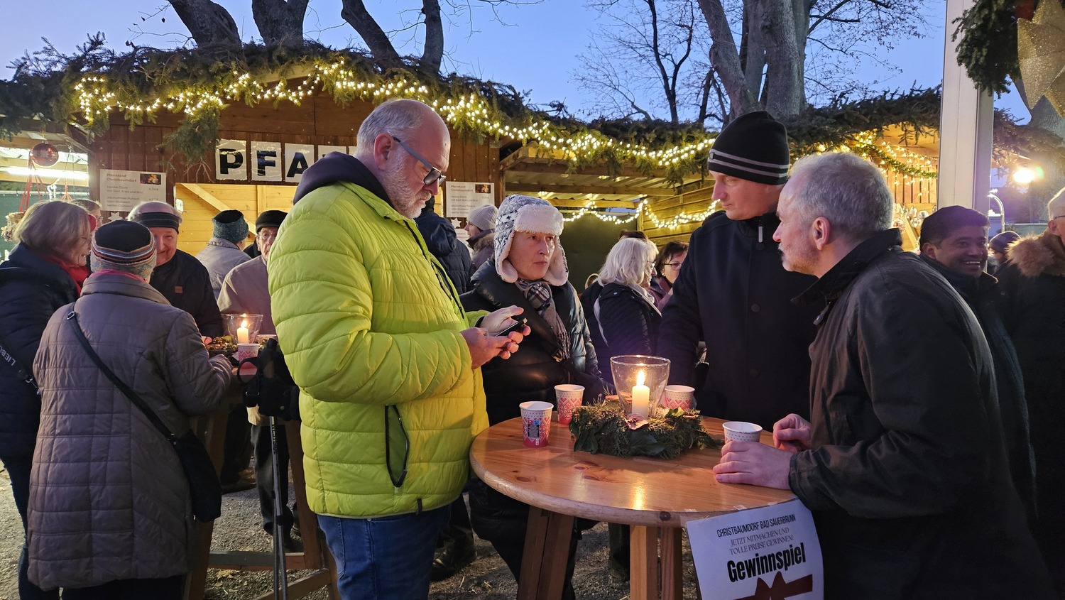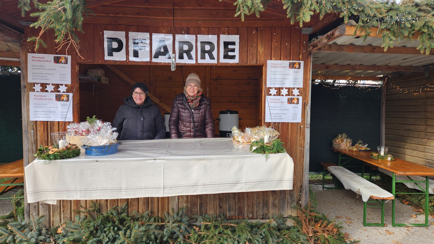 Traditionell betreibt die Pfarre Bad Sauerbrunn am ersten Adventwochenende einen "Pfarrstand" im Christbaumdorf im Kurpark von Bad Sauerbrunn. Pfarrkuratorin Gerti Ankerl und die Pfarrgemeinderäte bemühten sich um den Zuspruch der Gäste. Und der war groß!