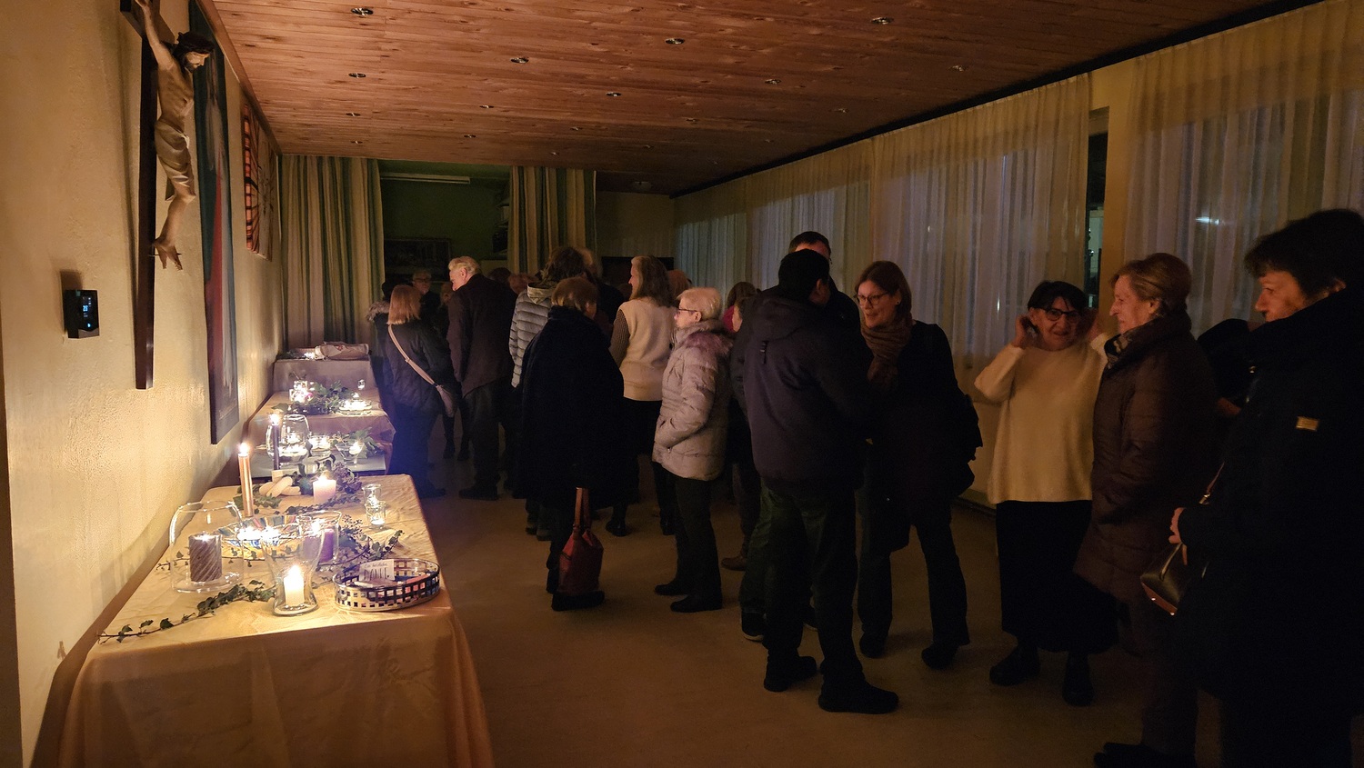Im Kommunikationsraum hatte die Pfarre auch Getränke und kleine Speisen vorbereitet. Es gab süßen Strietzl, zweierlei Brot, sowie Tee, Orangensaft, Apfelsaft, Mineralwasser und Sekt. Auch das fand guten Zuspruch und den Dank der Besucher.