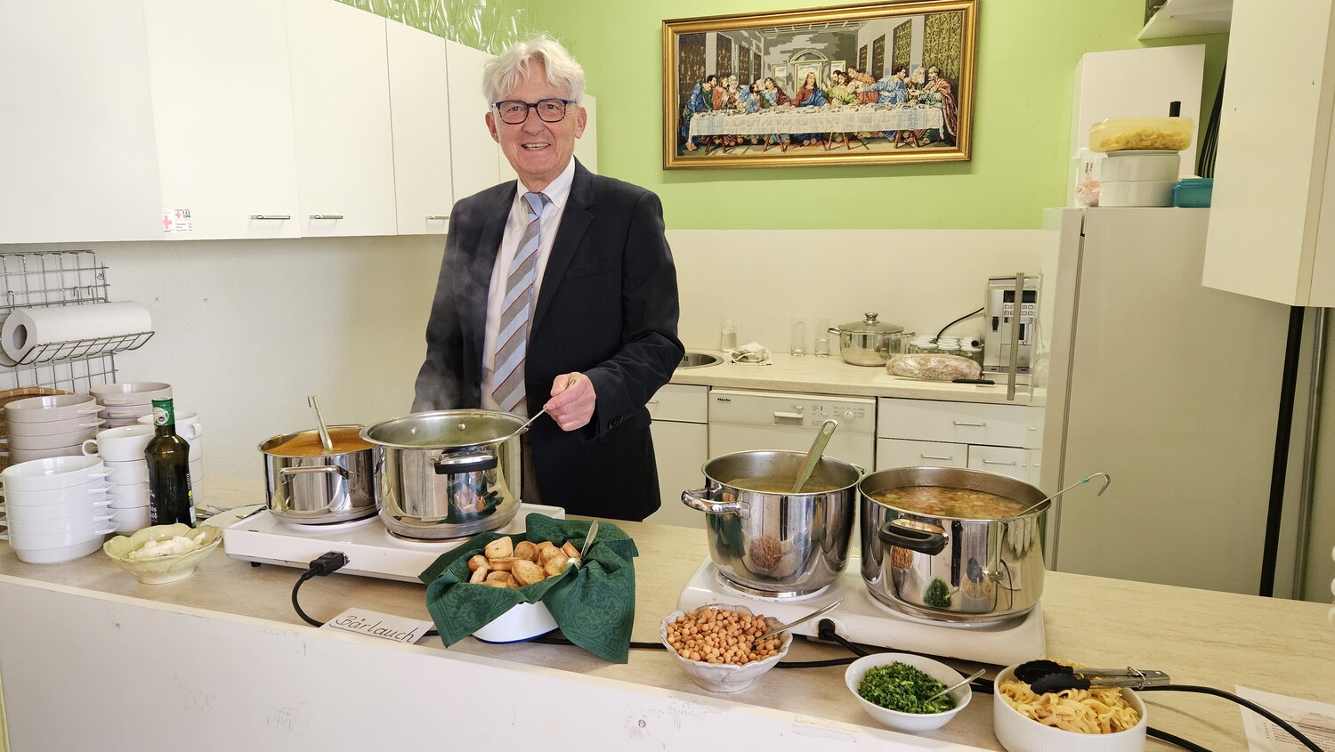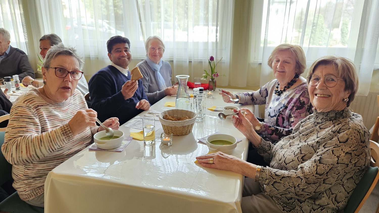 Wie alljährlich kochten Frauen der Pfarre Bad Sauerbrunn ganz ausgezeichnete Suppen. So konnte man für seine Spende eine pannonische Fischsuppe, eine pikante Süßkartoffelsuppe, eine Kürbiscremesuppe, eine Bärlauchsuppe mit Croutons oder eine Zucchinicremesuppe, aber auch die von der Firmlingsgruppe gekochten Gemüsesuppe mit Frittaten verkosten.