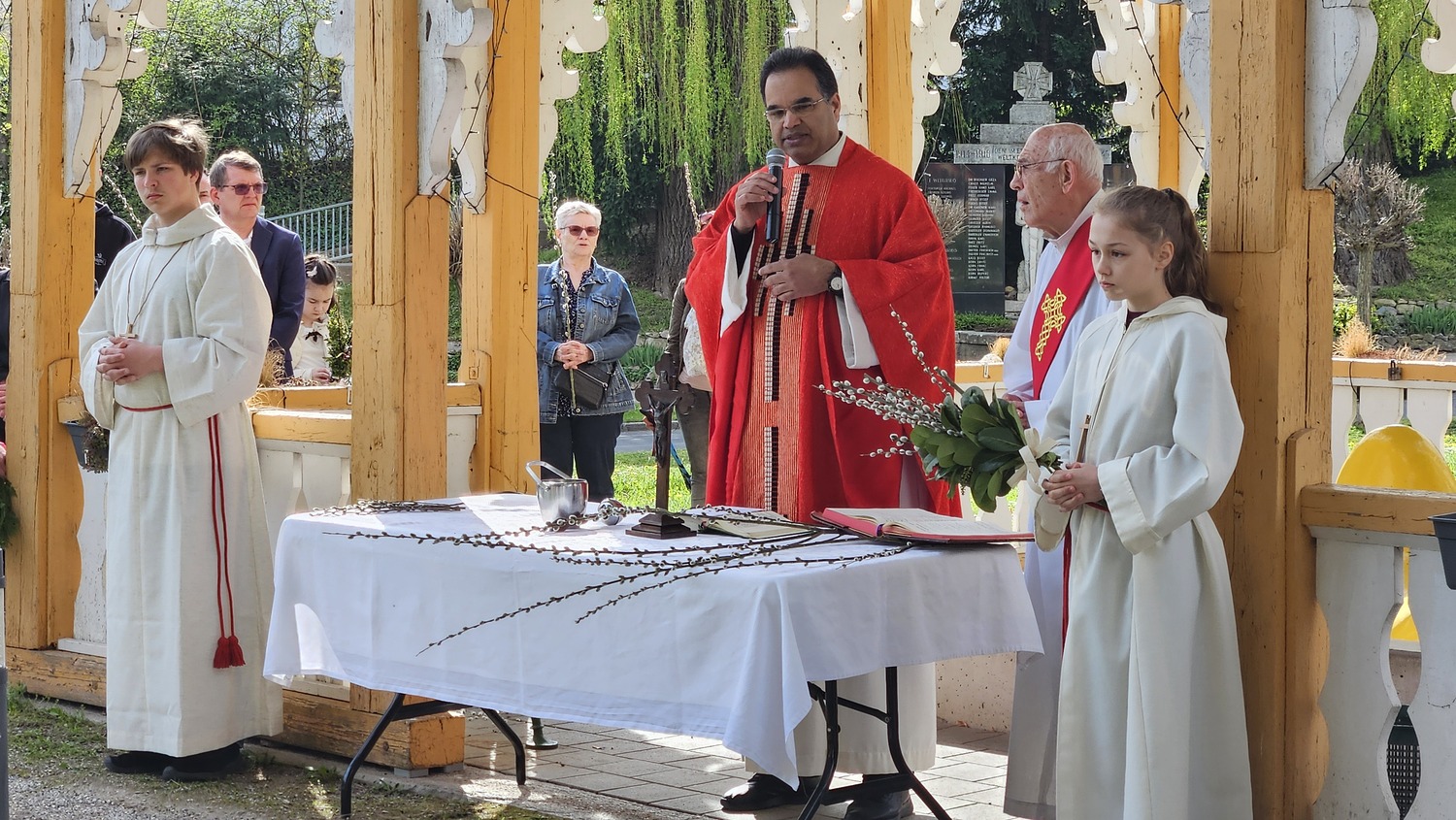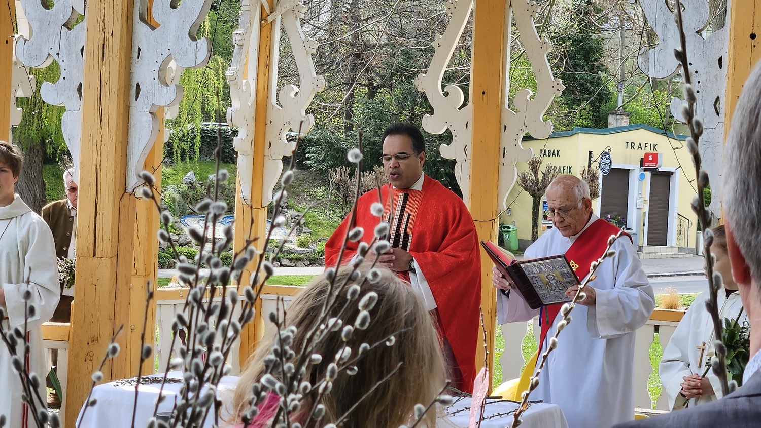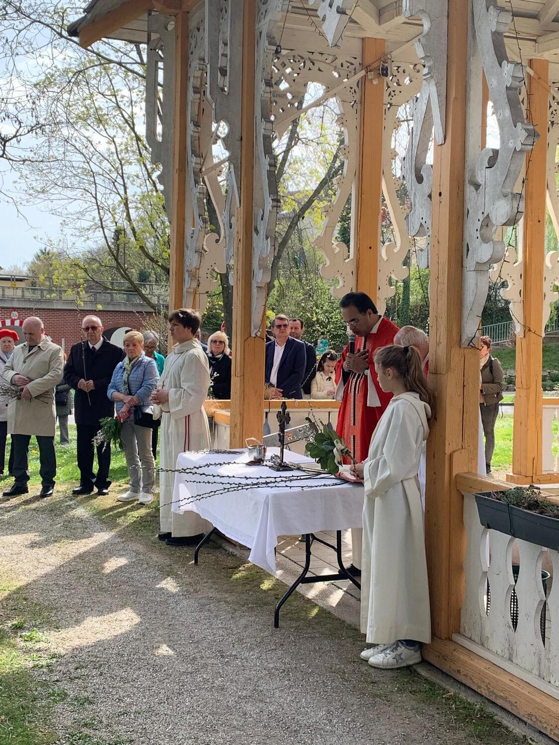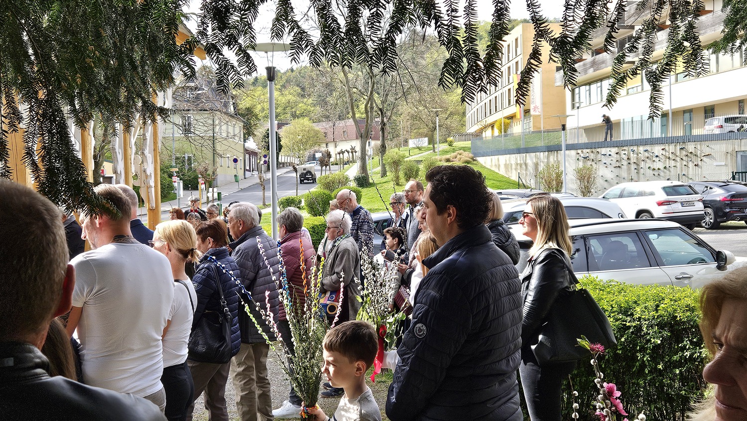 Am Palmsonntag trafen sich die Gläubigen der Pfarrgemeinde Bad Sauerbrunn und viele Gäste um 0945 Uhr beim Pavillon Kurhaus. Hier wurden die Palmzweige, Palmbuschen und Palmstäuße gesegnet.