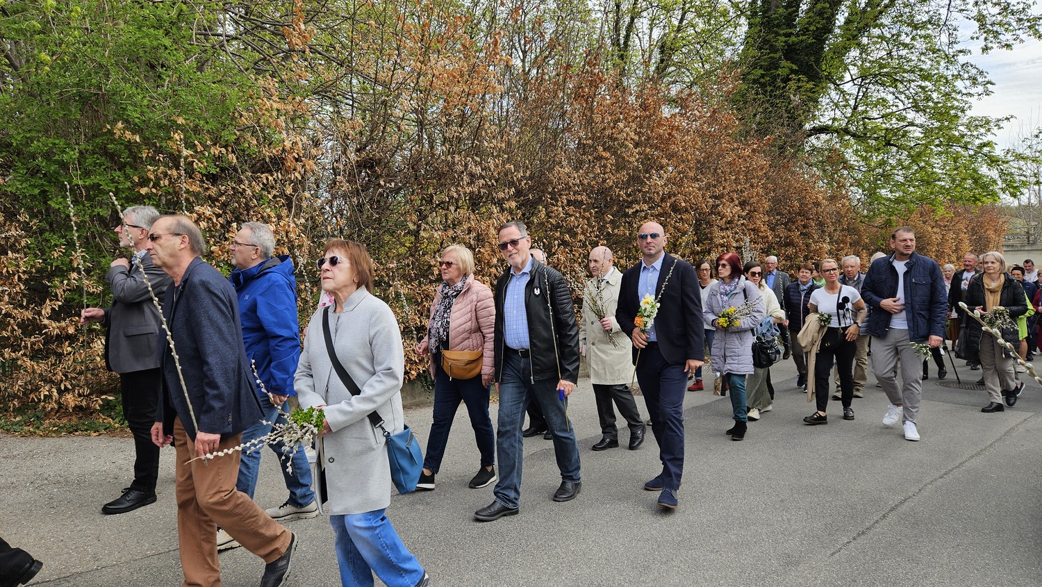 Anschließend führte die Palmprozession in die Pfarrkirche, wo die Hl. Messe gefeiert wurde. Viele Gläubige nahmen an der Prozession teil. Die Erstkommunionkinder, die am Vortag schöne Sträuße gebunden haben, nahmen ebenfalls an der Prozession teil.