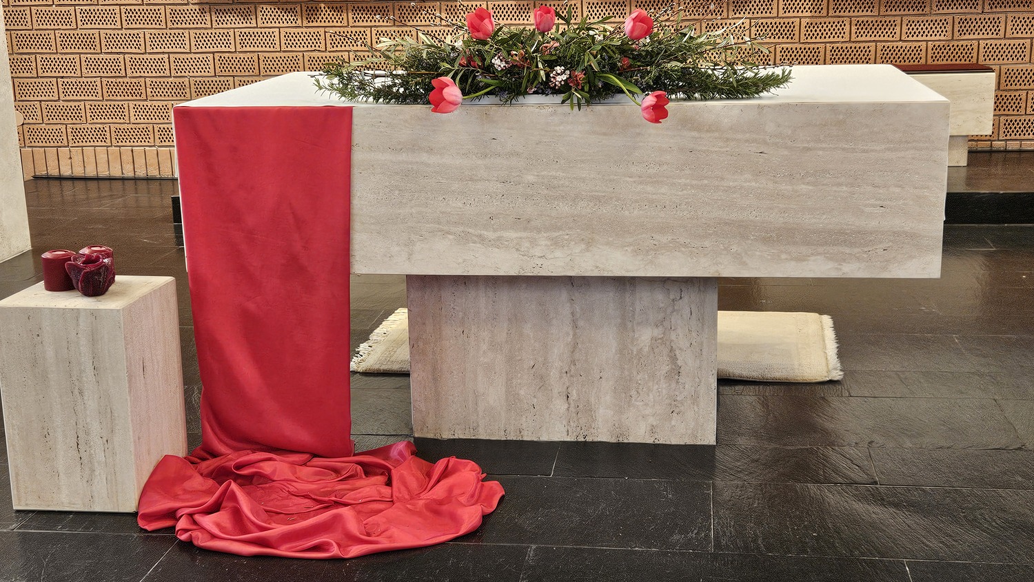 Mit einem großen Einzug in die Pfarrkirche endete die Palmprozession. Während der Hl. Messe, nach den Lesungen, wurde die Leidensgeschichte unseres Herrn Jesus Christus vorgetragen. Die Texte des Evangelisten wurden von Pfarrgemeinderat Andreas Reisner verlesen, die Texte von Anderen wurden von Pfarrkuratorin Gerti Ankerl vorgetragen, die Worte von Jesus sprach Pater Kuruvila.