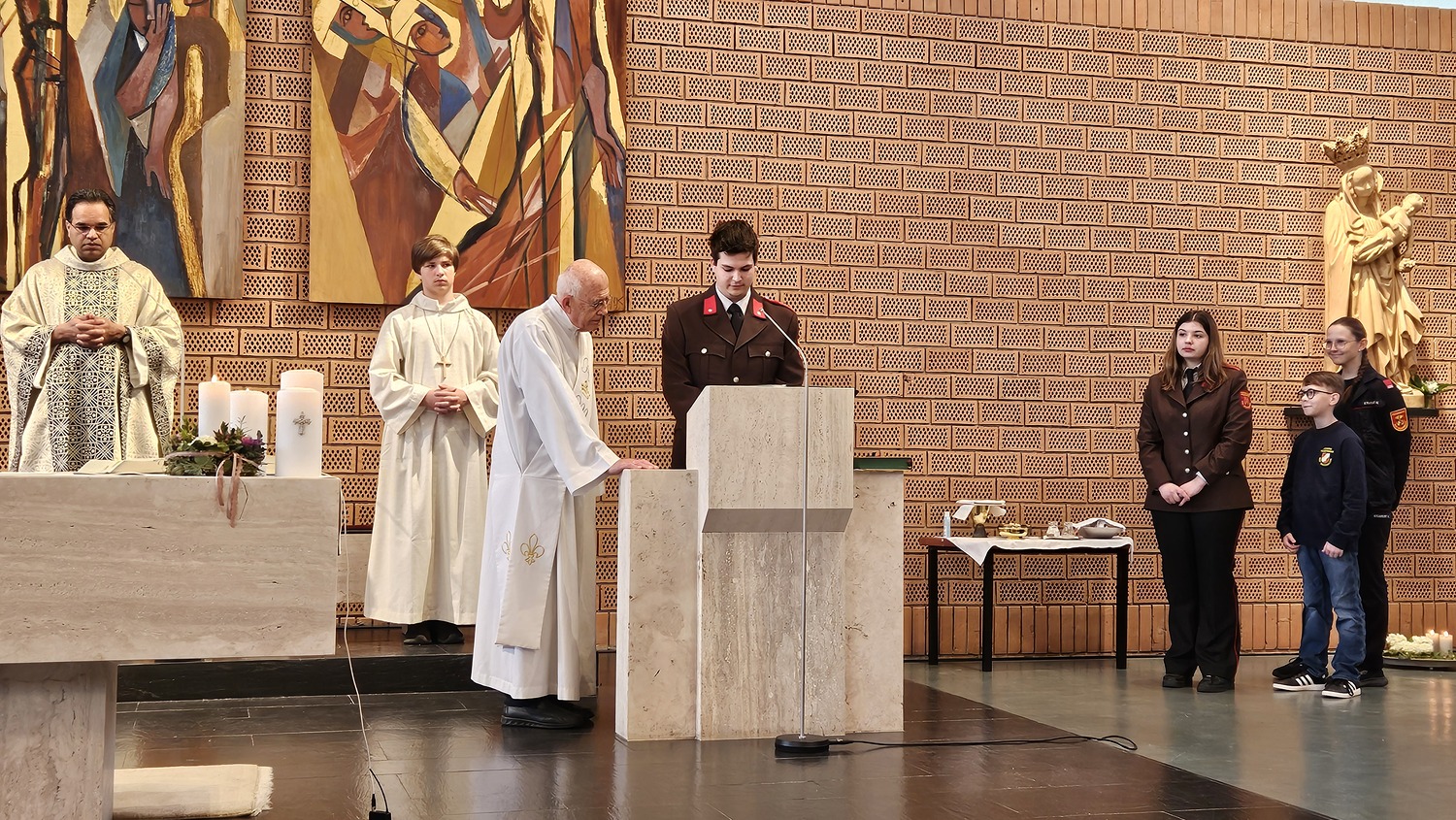 Mehrfach bedankte sich Pater Kuruvila bei den Mitgliedern der Freiwilligen Feuerwehr für deren Freiwilligendienst für die Gemeinschaft. Dieser freiwillige Dienst werde von den Feuerwehrfrauen und -männern oft auch unter Einsatz des eigenen Lebens geleistet, führte Pater Kuruvila in der Predigt weiters aus.