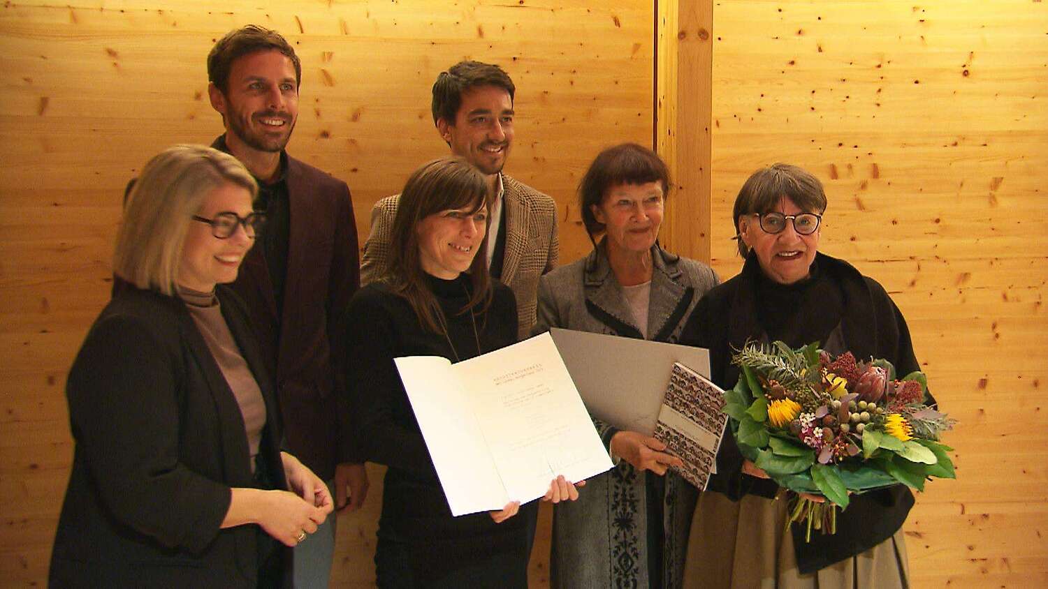 Kuratorin Gertrud Ankerl (r) und die Architekten der freistil Architektur GmbH wurden für das Projekt der Sanierung und Neugestaltung Pfarrkirche Mariä Himmelfahrt ausgezeichnet,