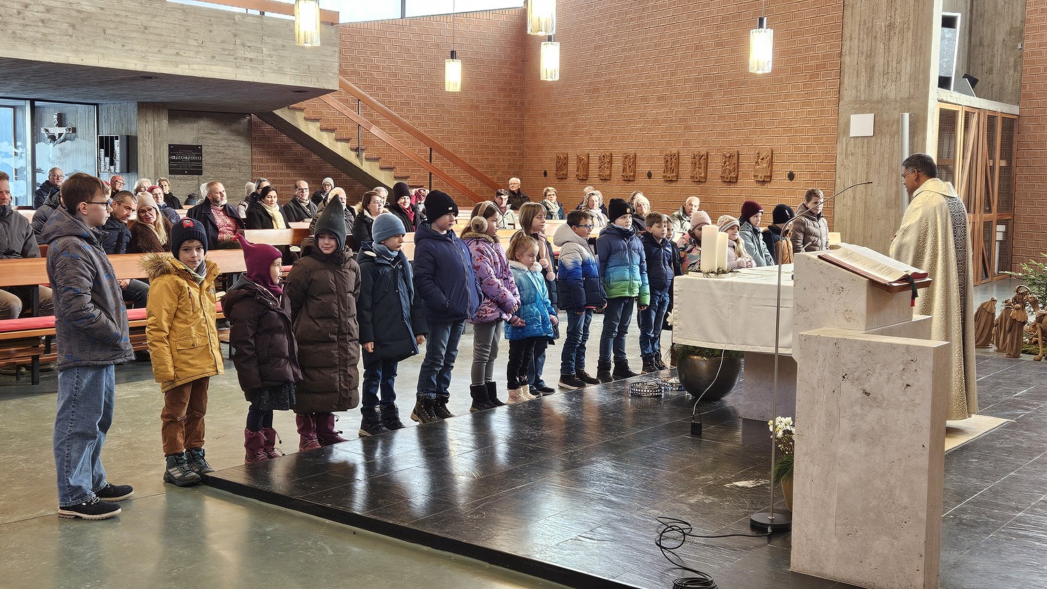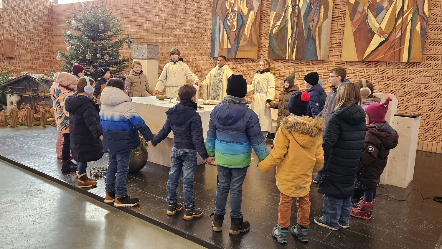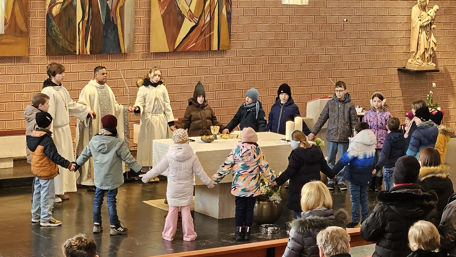 Gemeinsames Vater Unser mit den Kindern am Altar