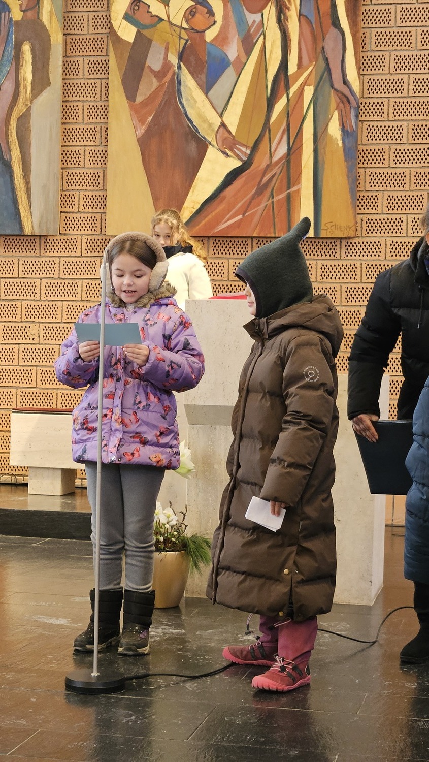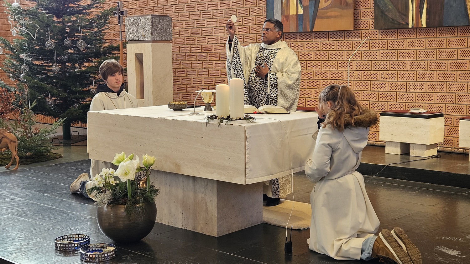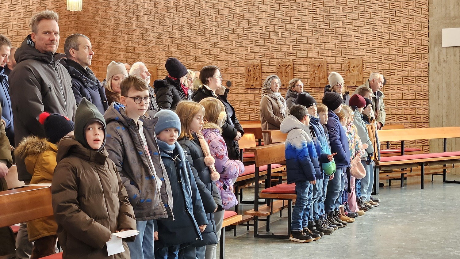 Gemeinsames Vater Unser mit den Kindern am Altar