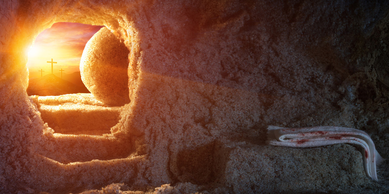 Tomb Empty With Shroud And Crucifixion At Sunrise - Resurrection / Romolo Tavani