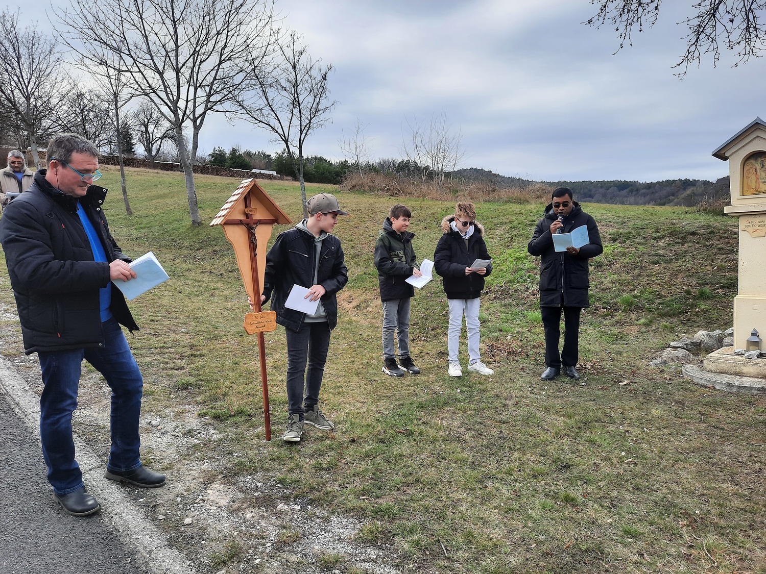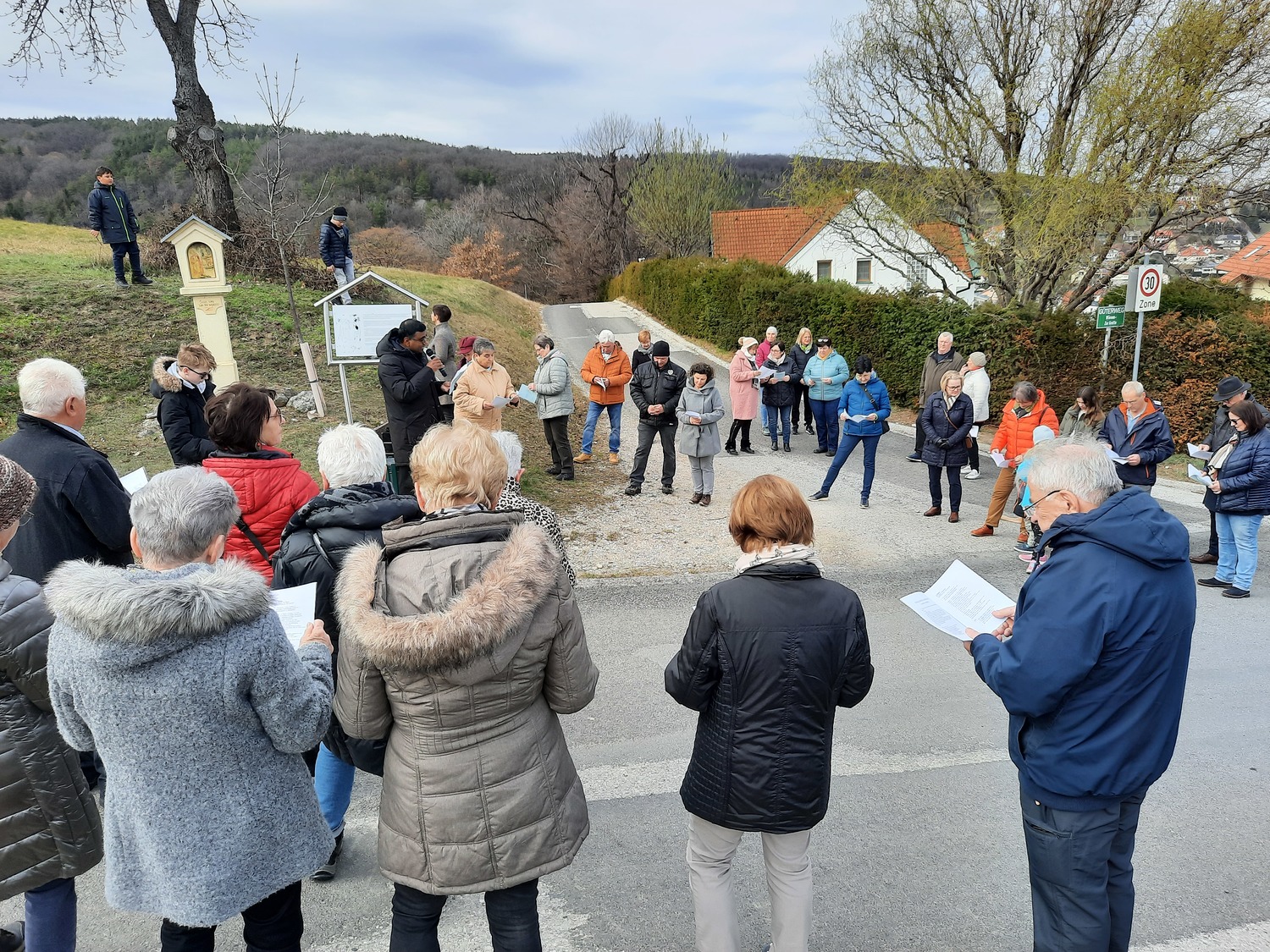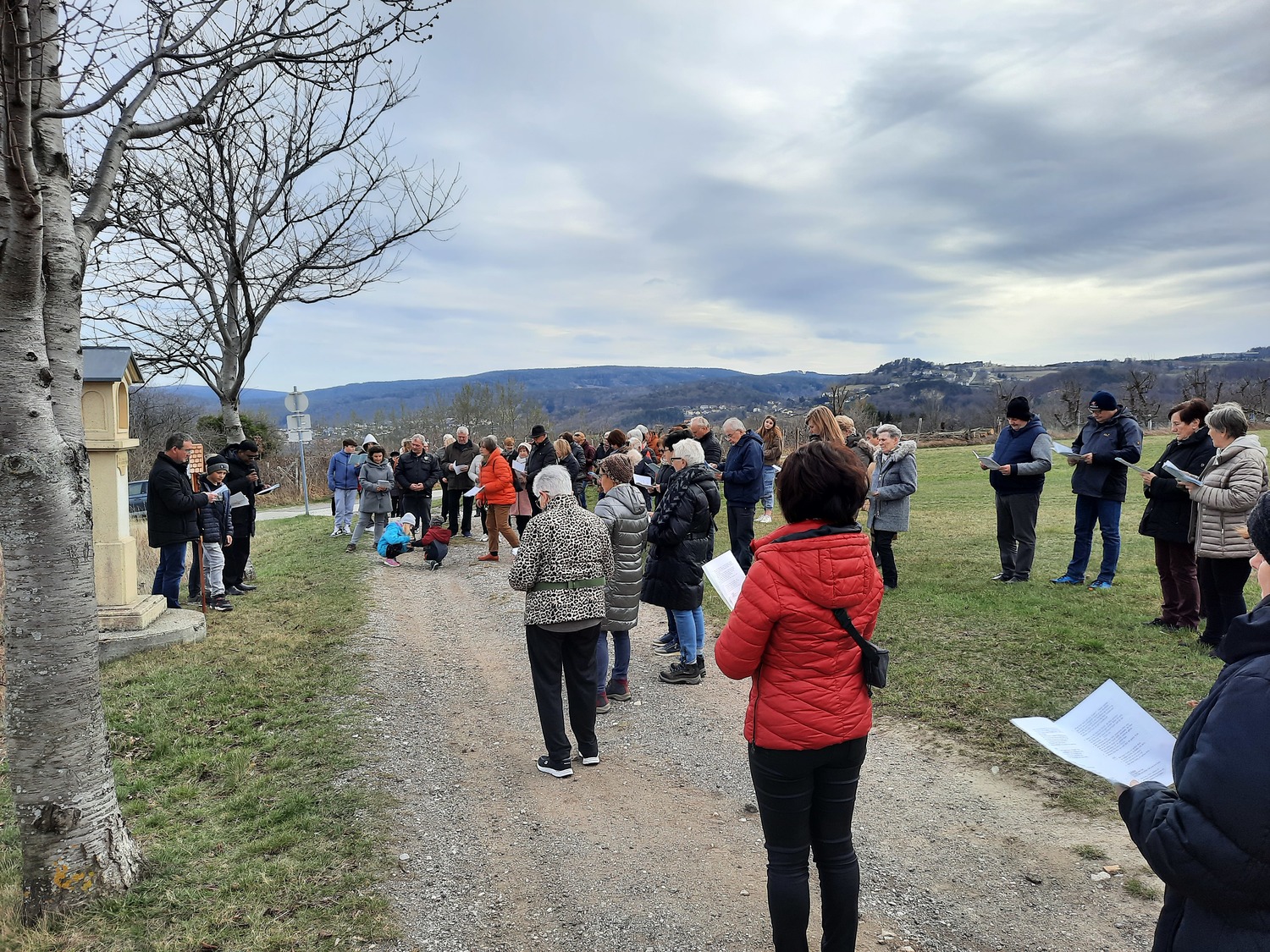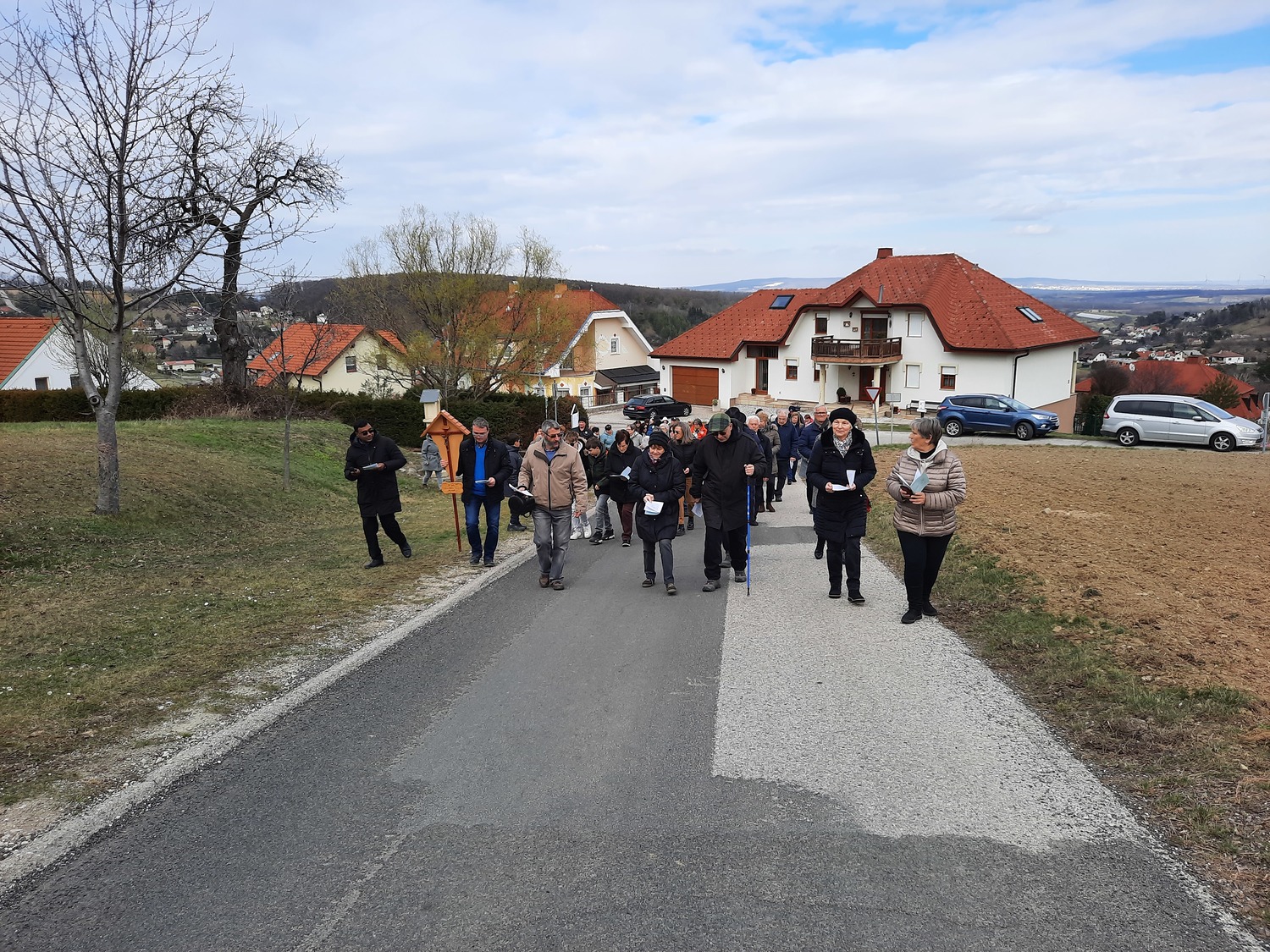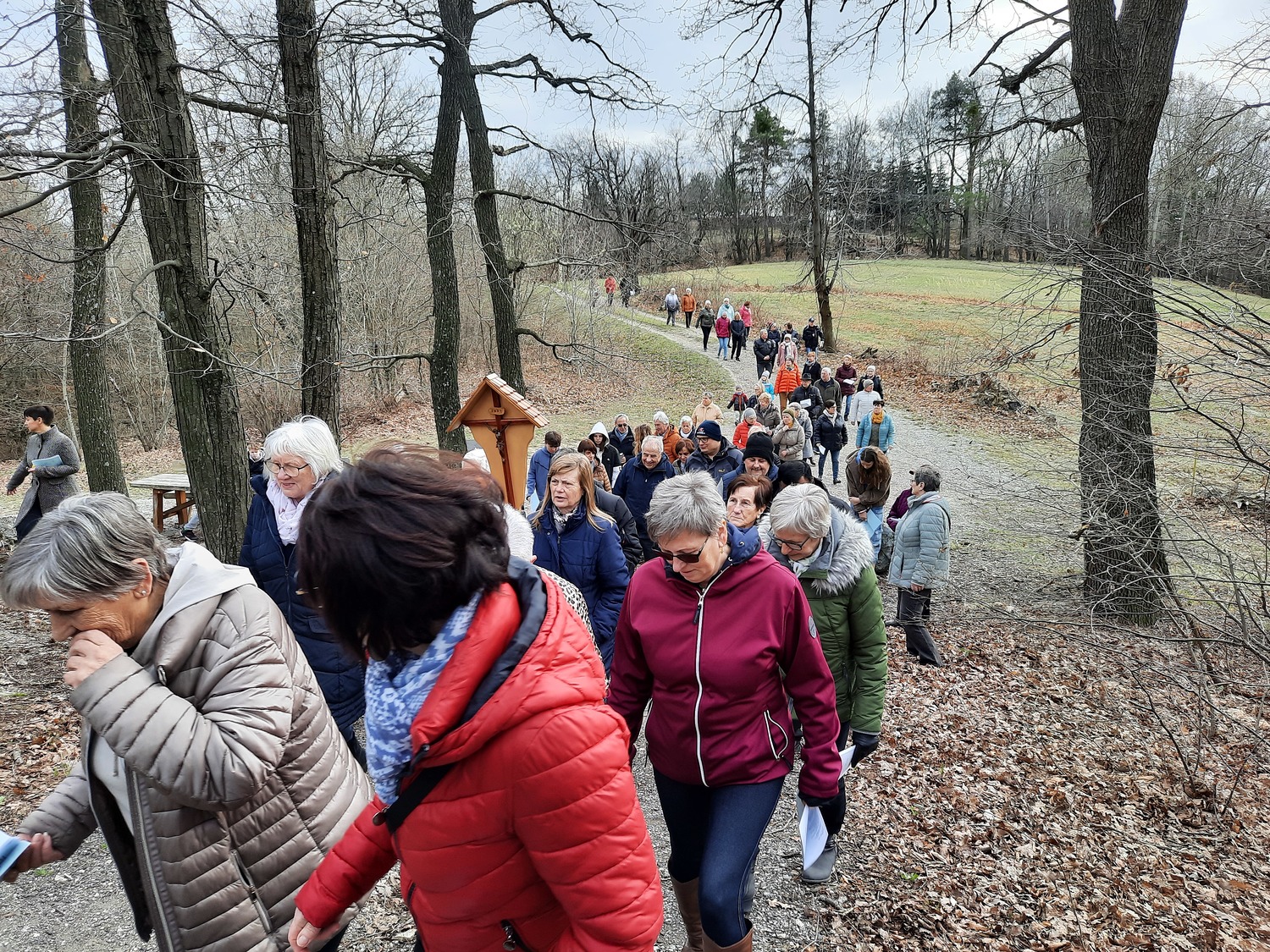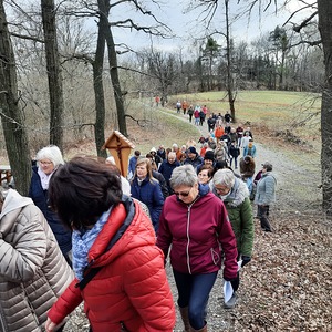 Am dritten Fastensonntag trafen sich rund 90 Pfarrangehörige, um gemeinsam bei den einzelnen Stationen an den Leidenweg Jesu zu denken. Mit dem Kreuz voran die Kreuzwegstsationen in der Natur zu gehen, war bestimmt für alle Teilnehmer eine gute Vorbereitung auf das kommende Osterfest.