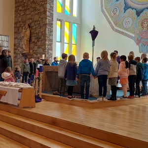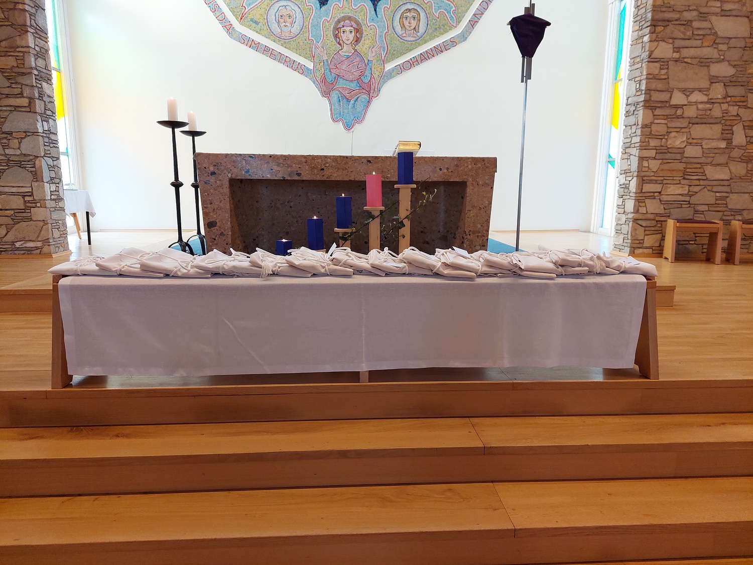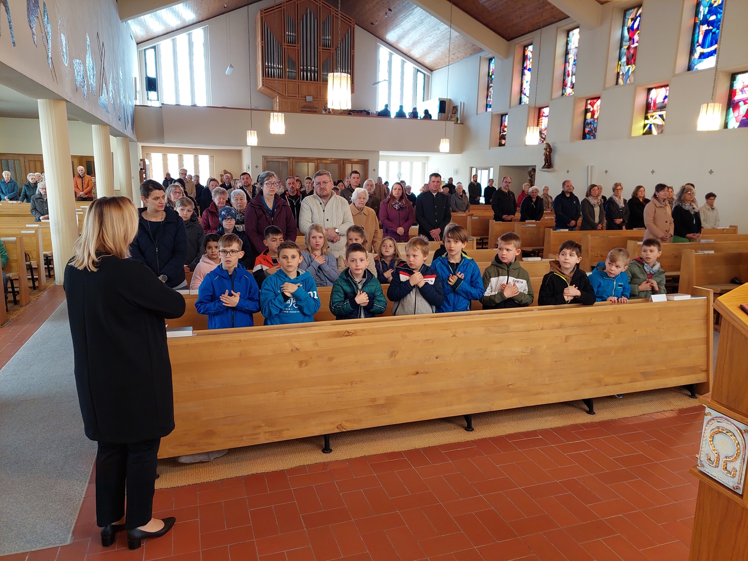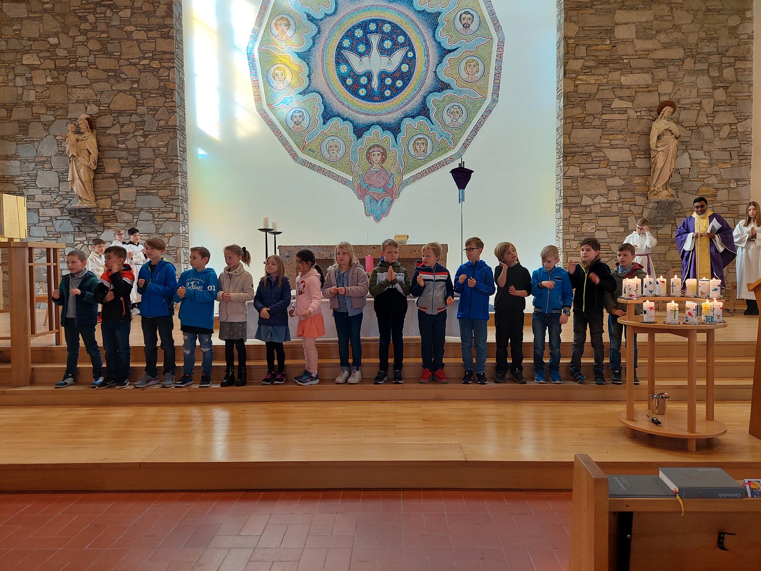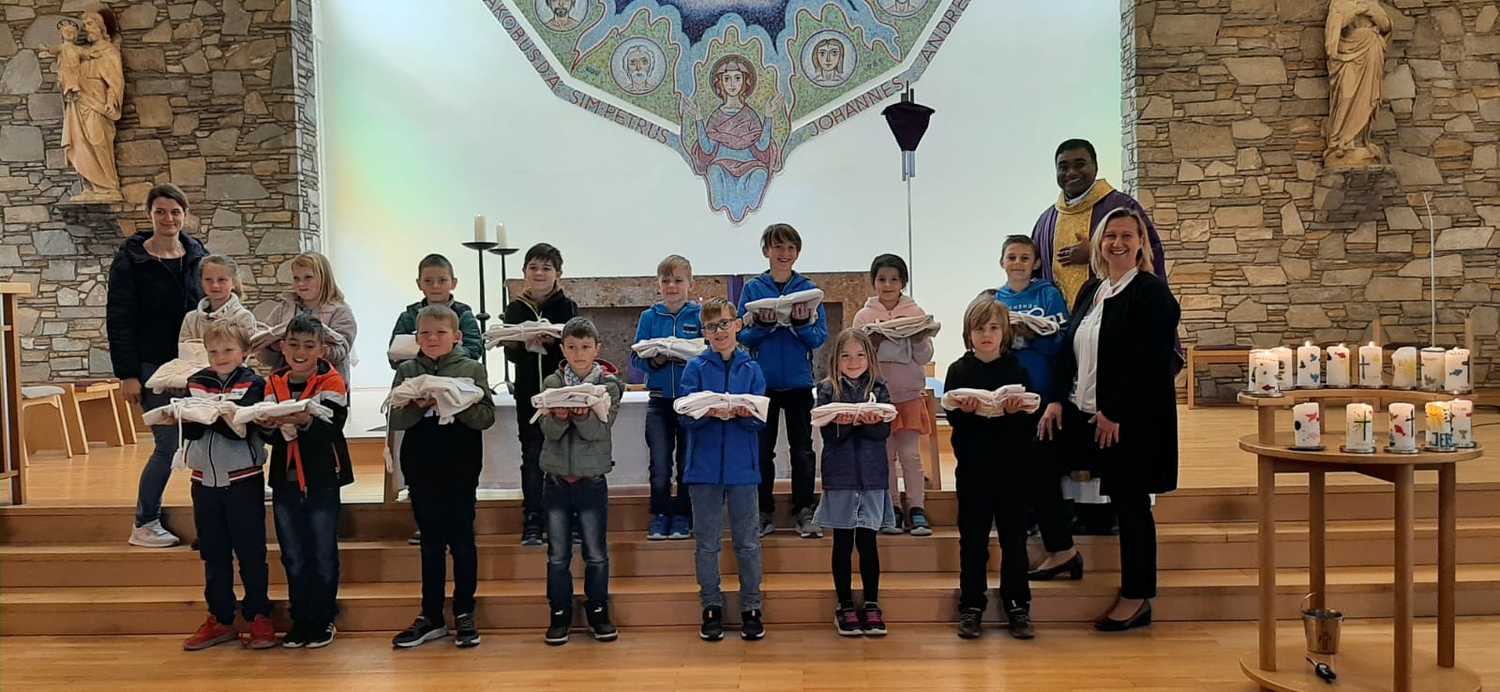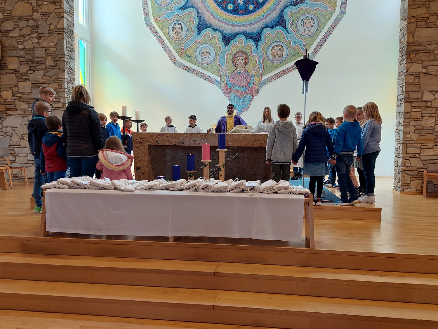 Am 5. Fastensonntag wurden im Rahmen einer feierlichen Messe, nach der Segnung durch P. Jomon, die weißen Kutten an die Erstkommunionkinder übergeben.