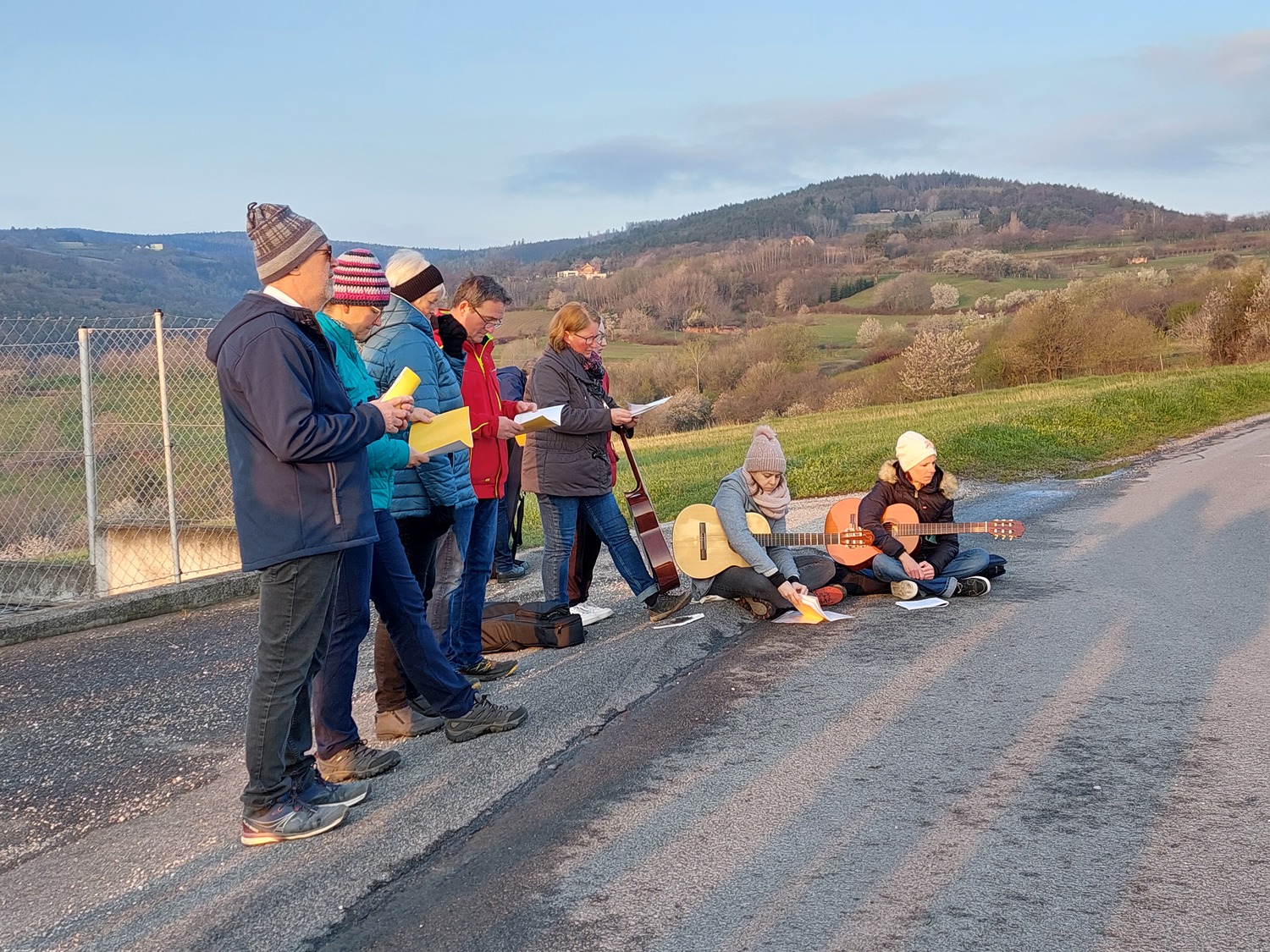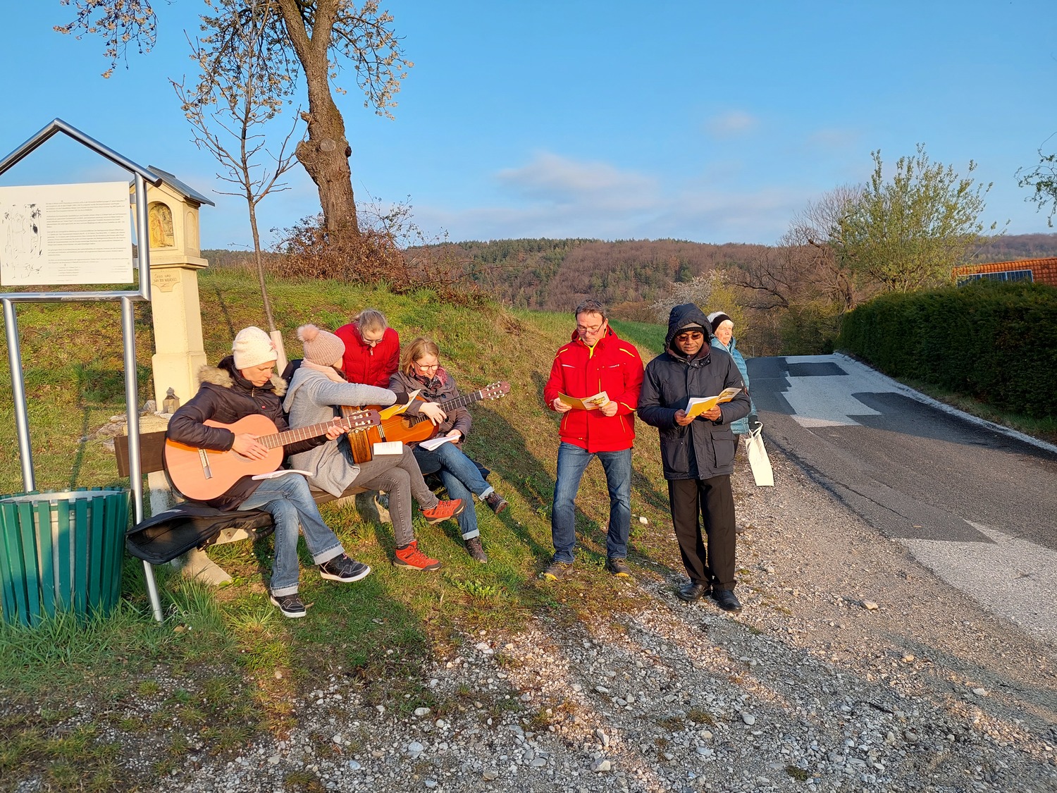 Viele Gläubige und eine große Anzahl von Firmlingen machten sich am Ostermontag zum Emmausgang auf. Nach kurzen Impulsen an drei Stationen fanden sich alle zu einem, von den Firmgruppen ausgezeichnet organisierten, Frühstück im Pfarrheim ein.