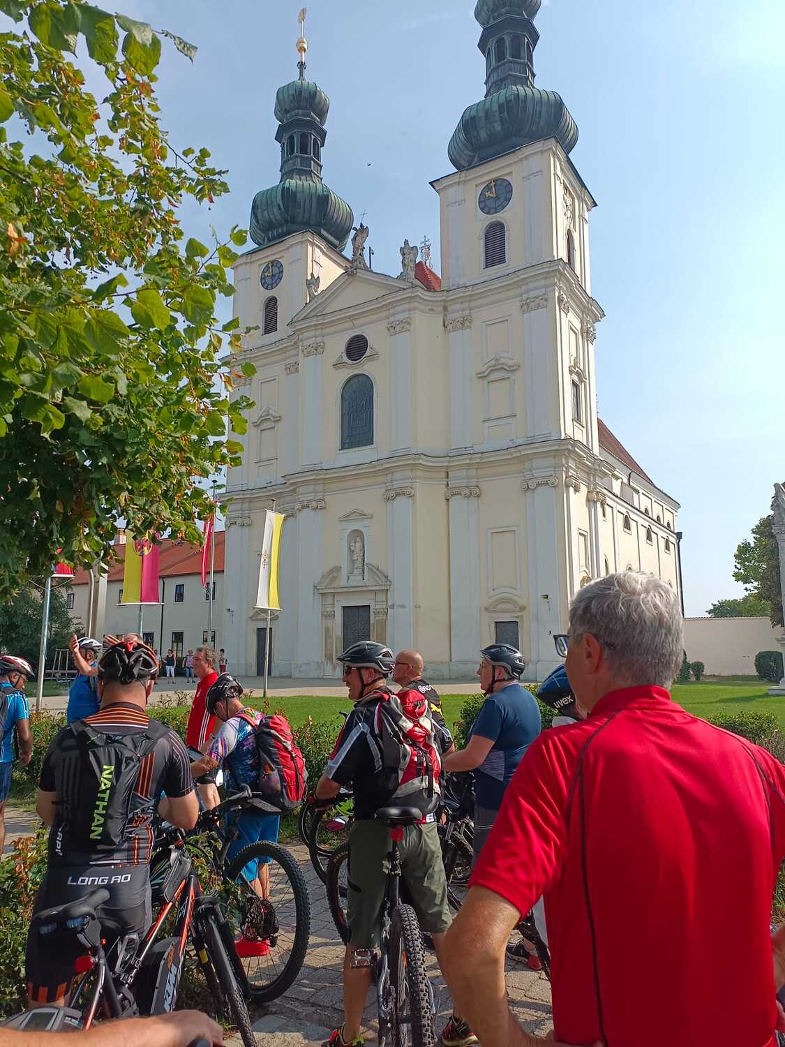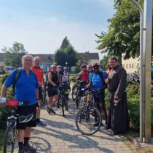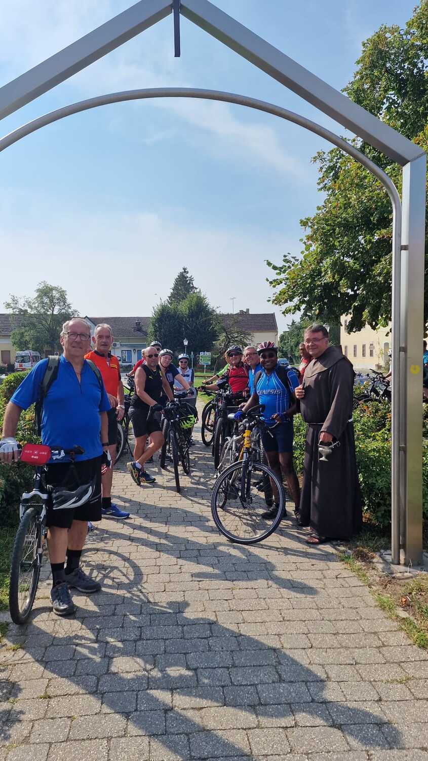 Gleich 26 Personen nahmen die Einladung der Pfarre zur ersten Radwallfahrt nach Frauenkirchen an. Nach einem Segensgebet um 05:30 vor der Pfarrkirche, starteten die Biker gemeinsam mit P. Jomon und Toni Widlhofer, die die Wallfahrt organisierten, Richtung Mörbisch.