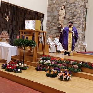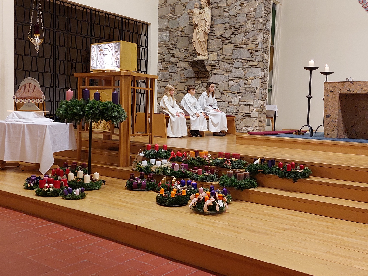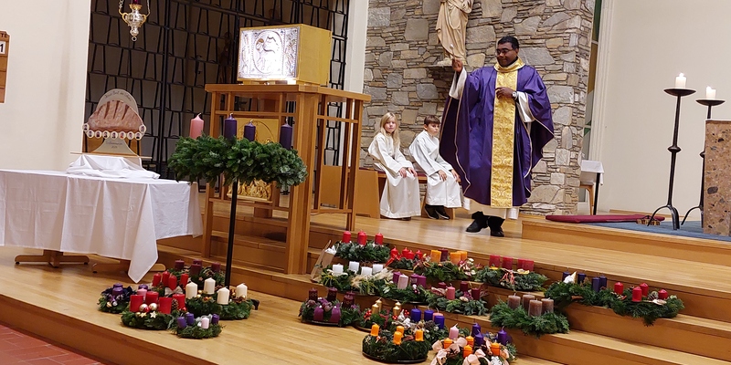 Auch dieses Jahr brachten, neben vielen Gläubigen, die Erstkommunionkinder ihre selbst gebundenen und gestalteten Adventkränze zur Segnung in die Pfarrkirche.