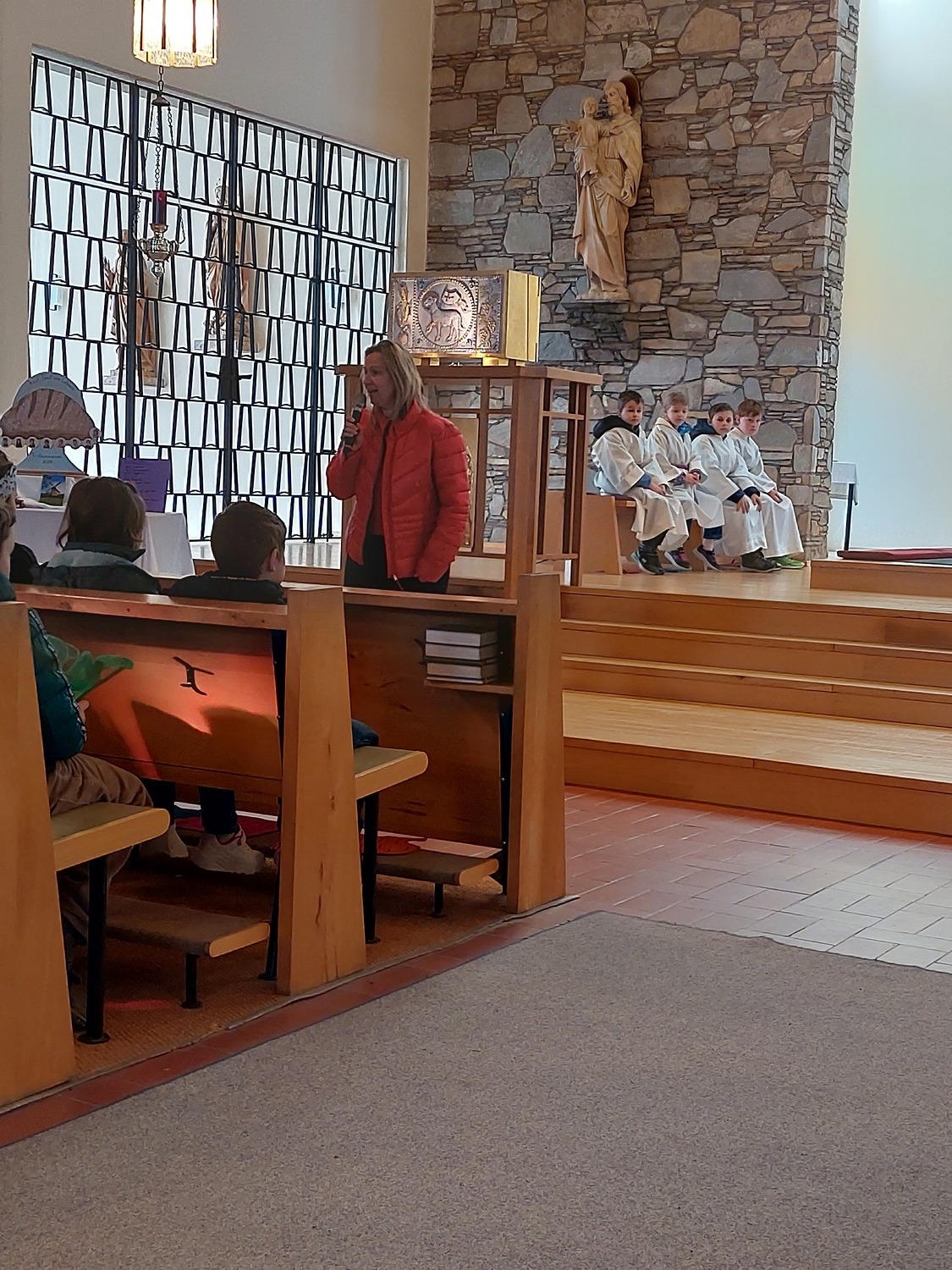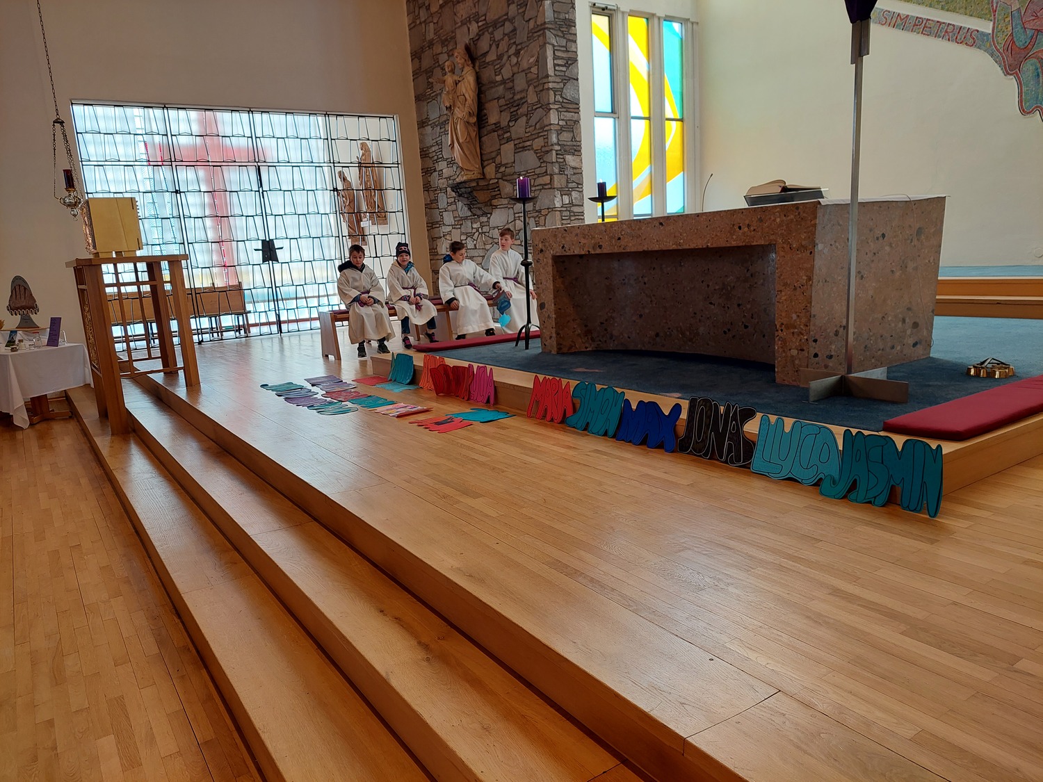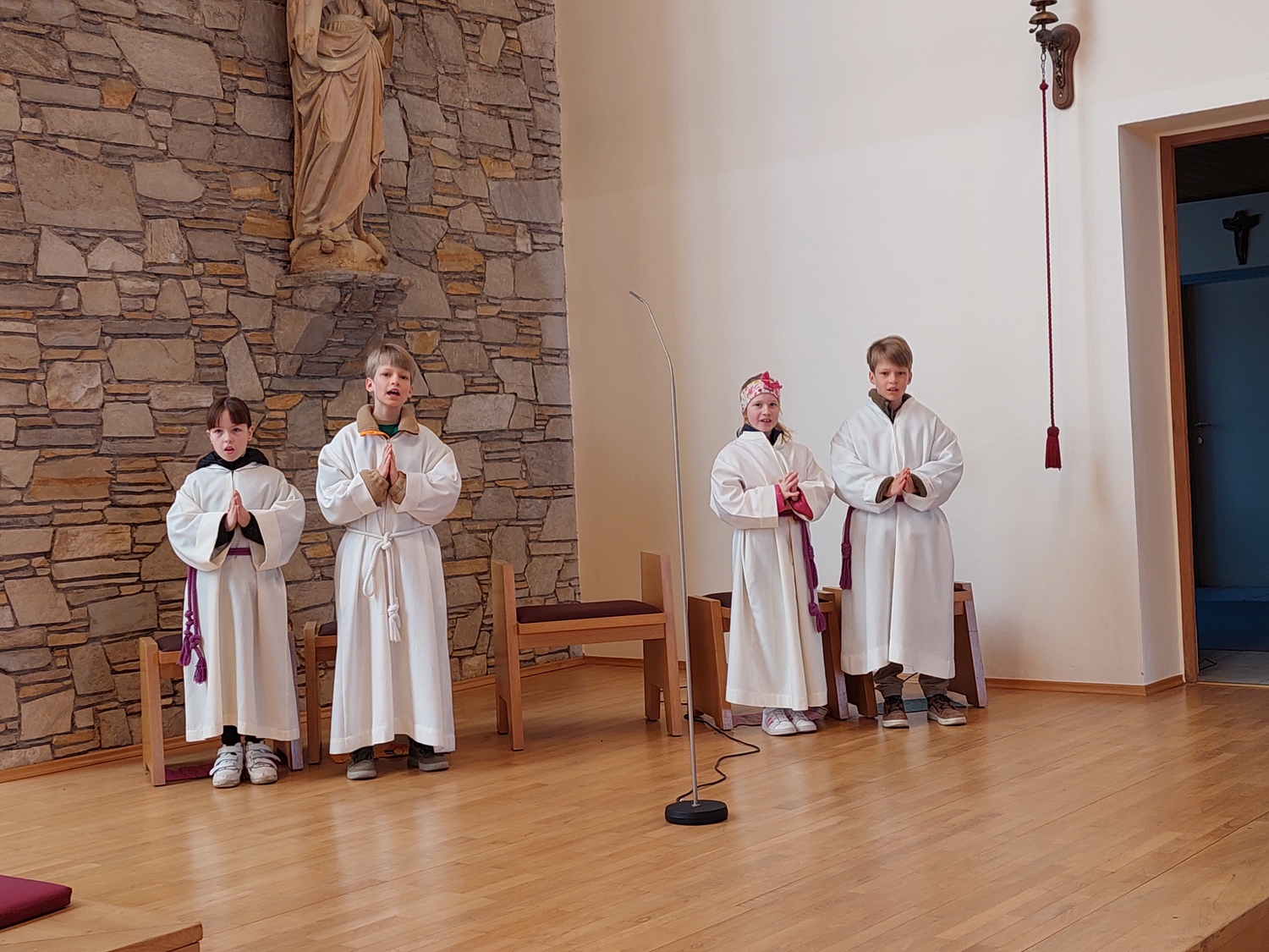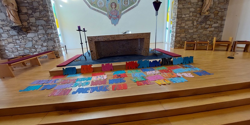 Die Schülerinnen und Schüler der Volksschule feierten gemeinsam mit P. Jomon, dem Lehrkörper und einigen Eltern sowie Großeltern einen feierlichen Ostergottesdienst.