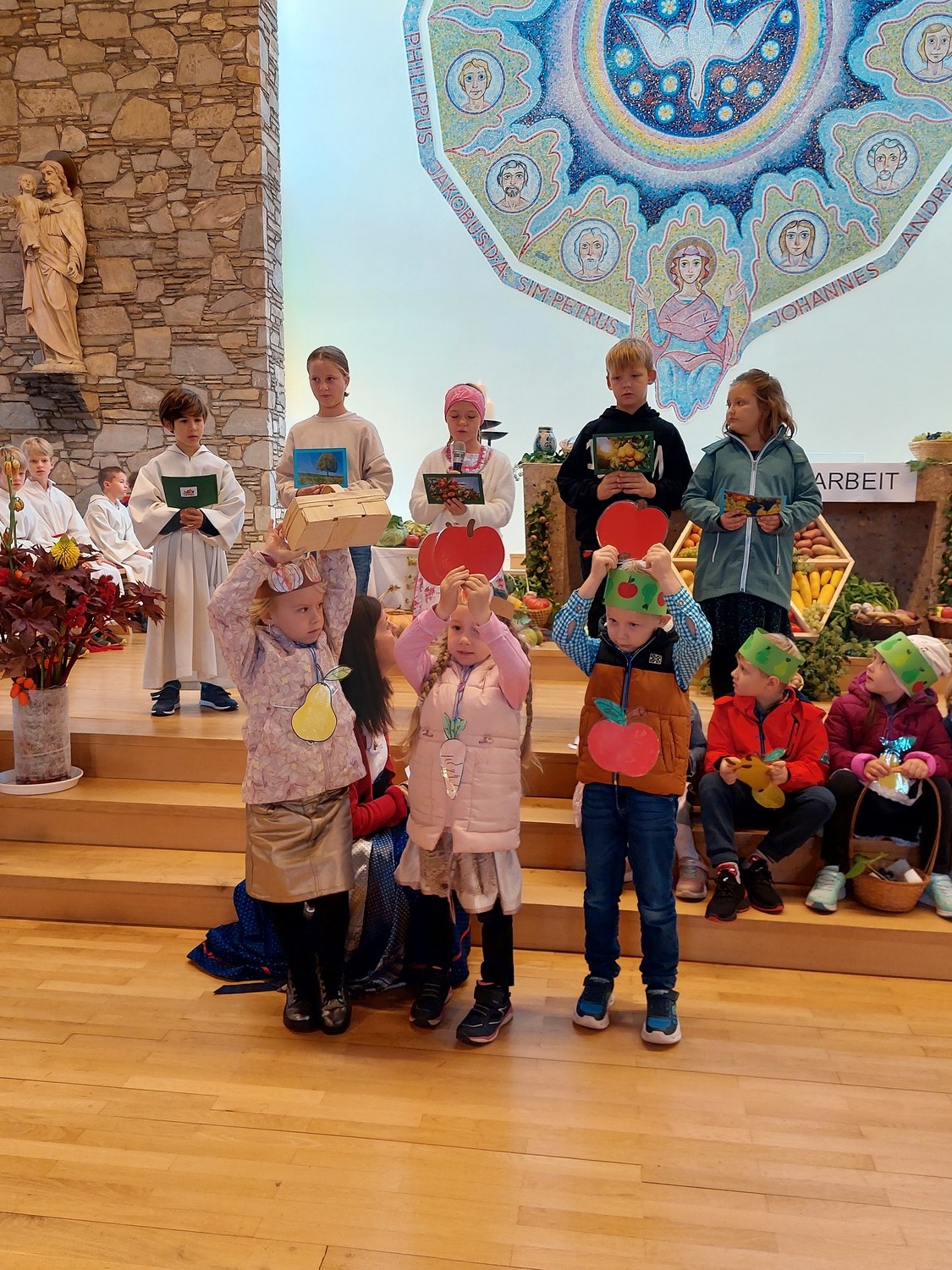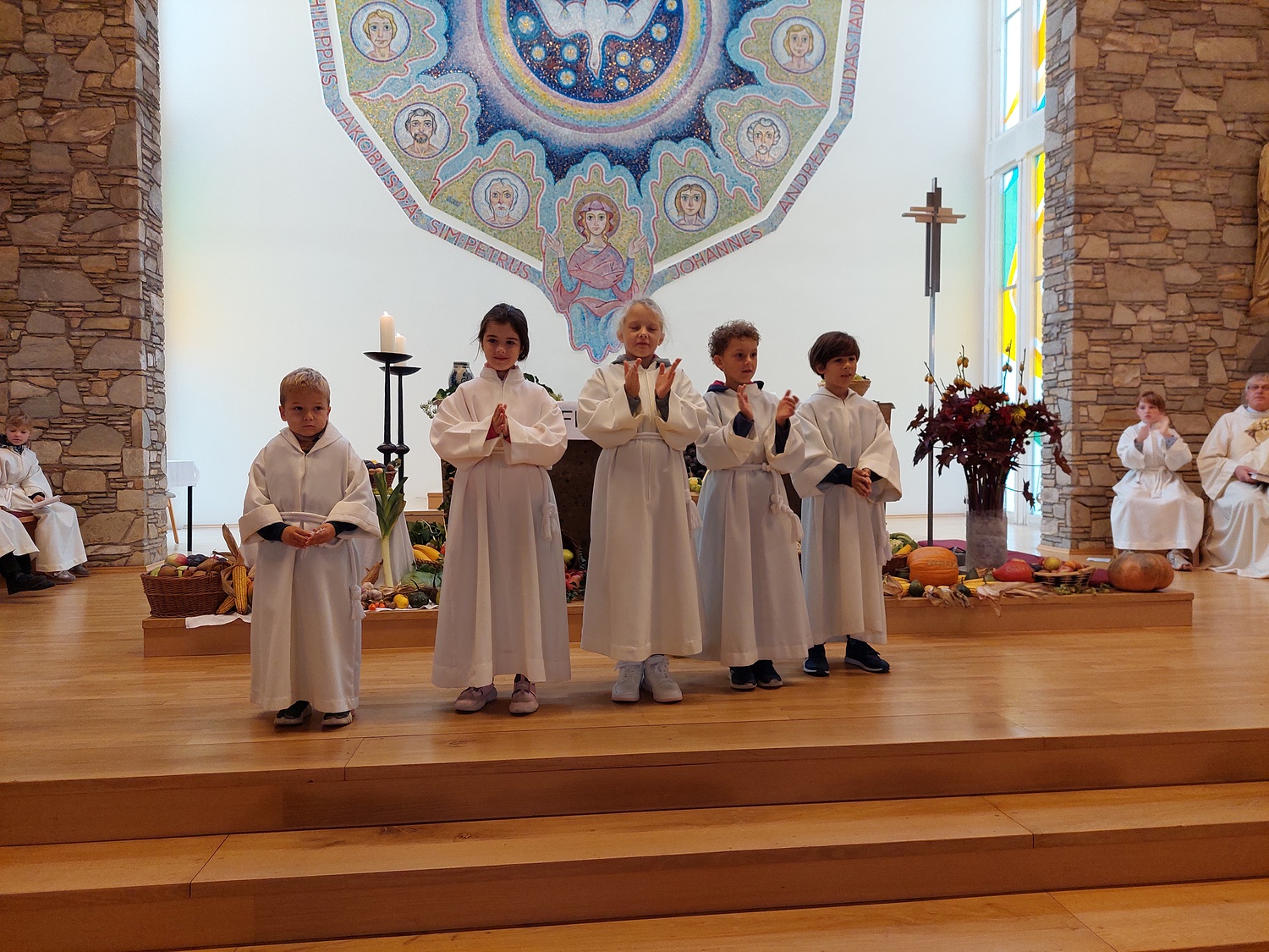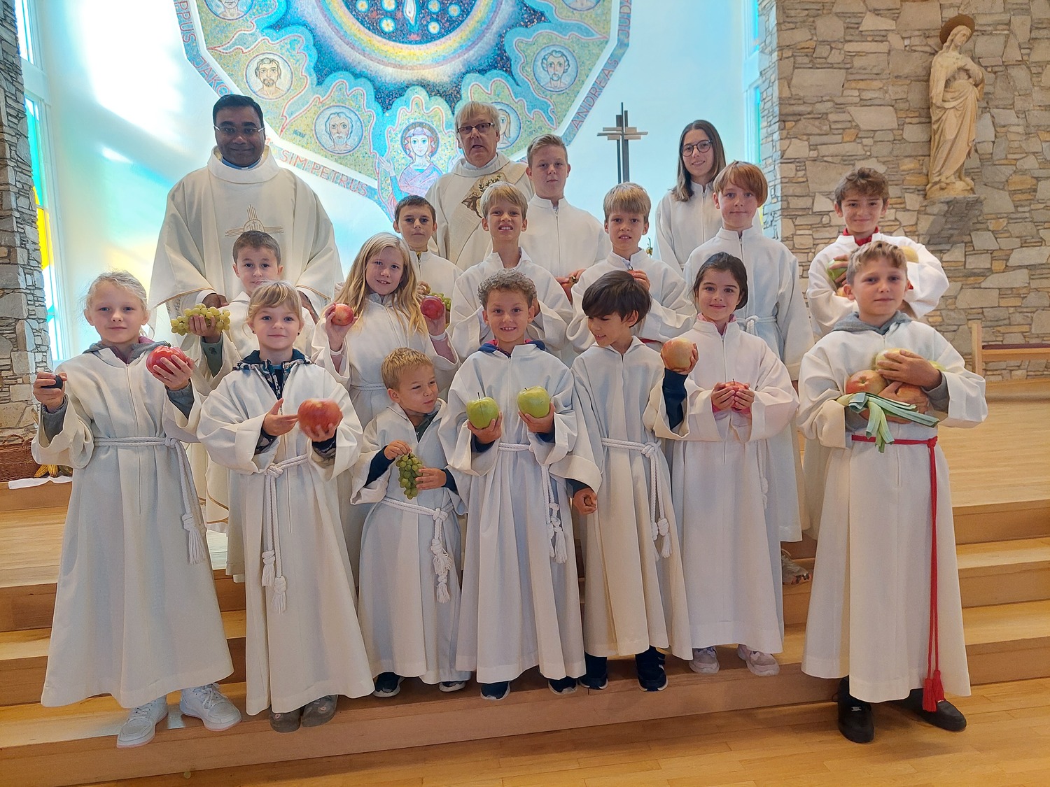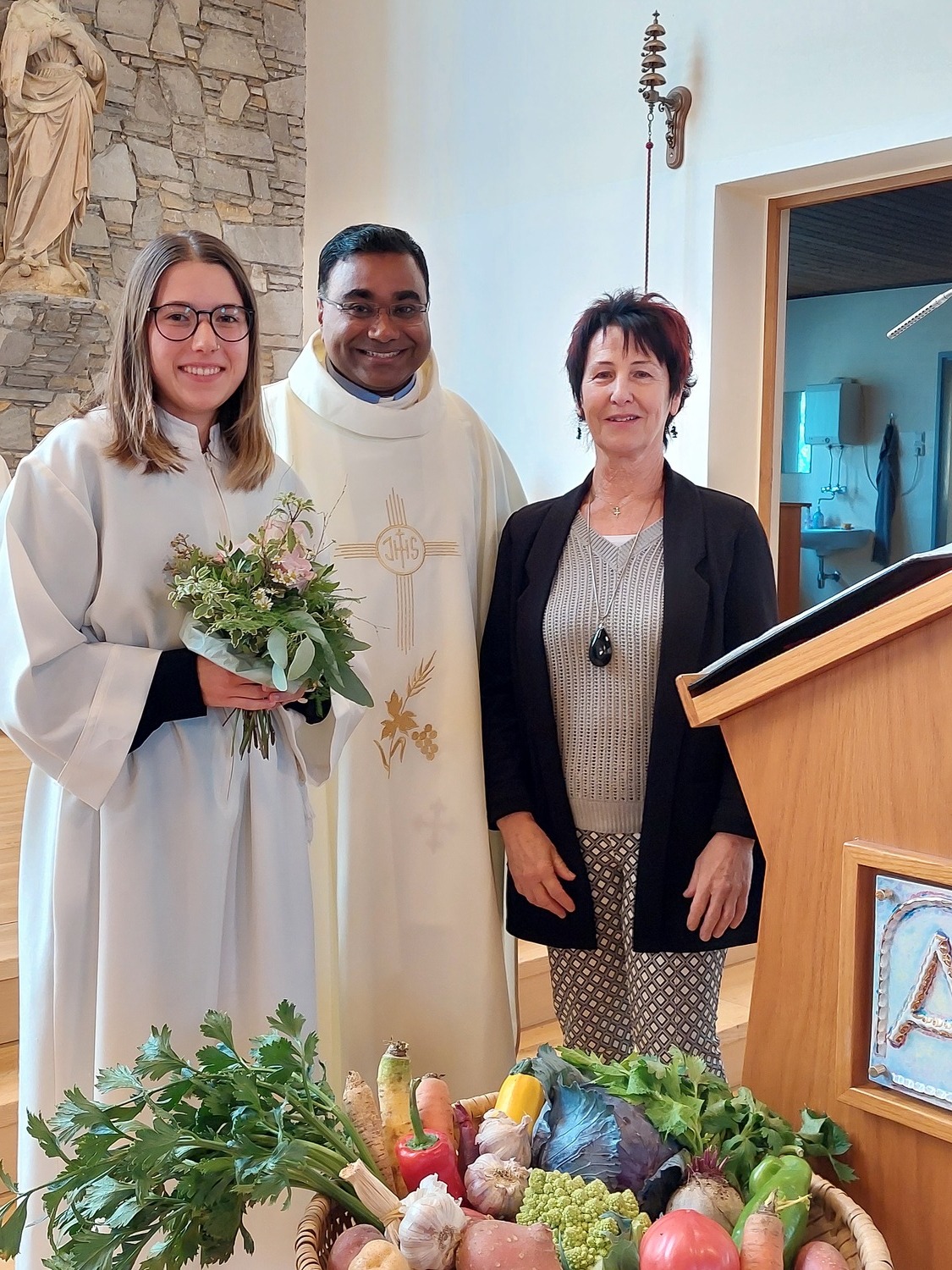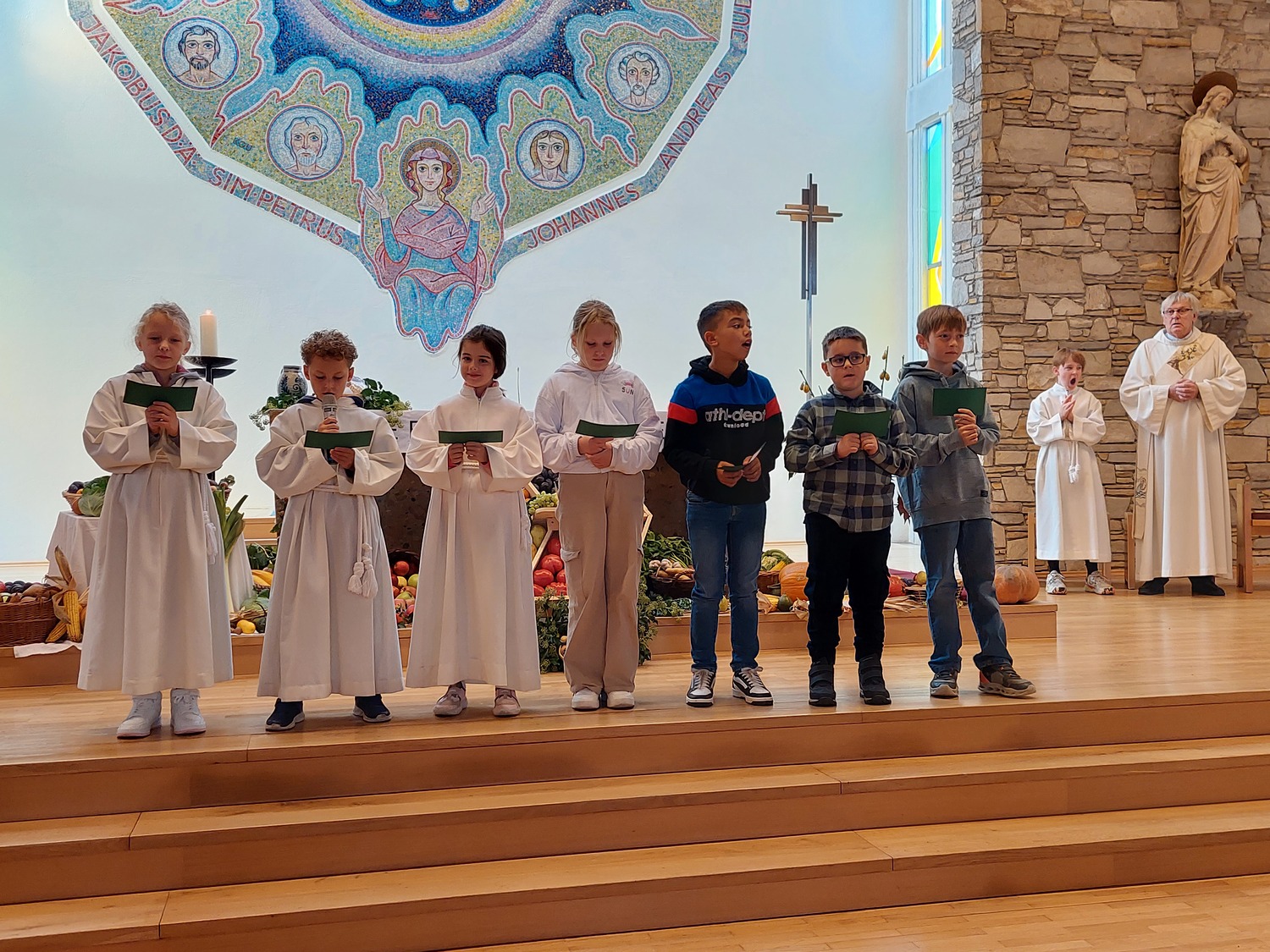 An diesem Tag dankte die Pfarre nicht nur für die Erntegaben, sondern ein großes Dankeschön erging von P. Jomon und den Messbesuchern an fünf Kinder, die sich neu für den Ministrantendienst gemeldet haben.