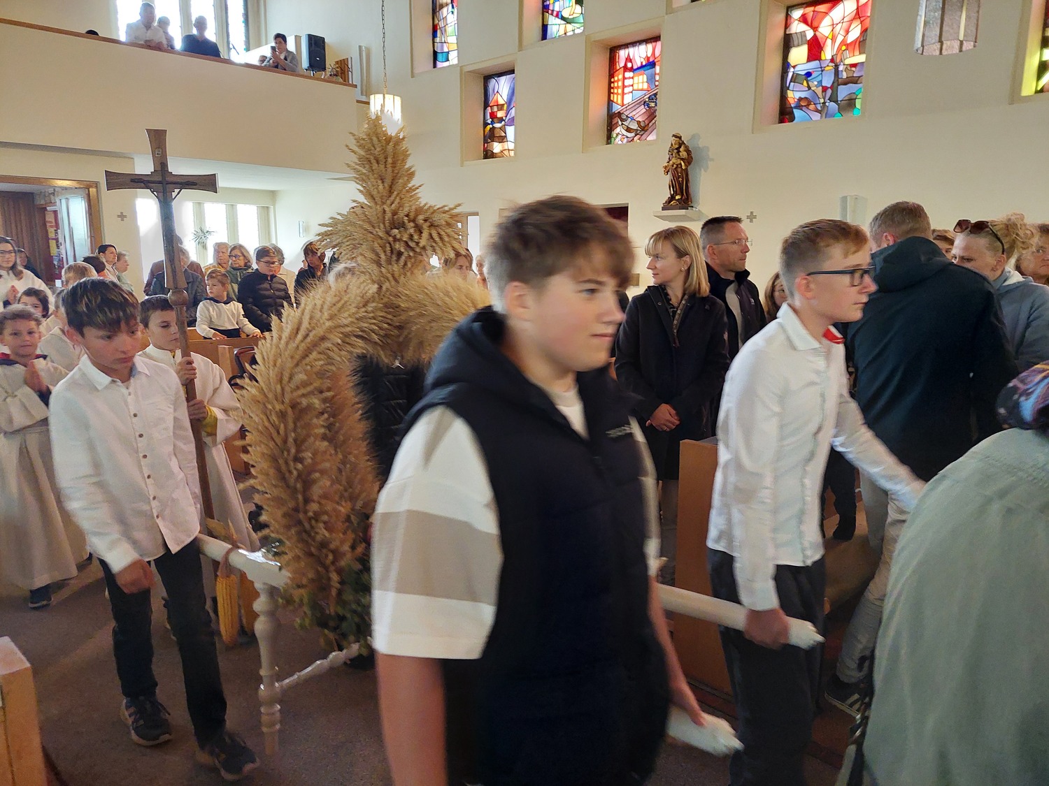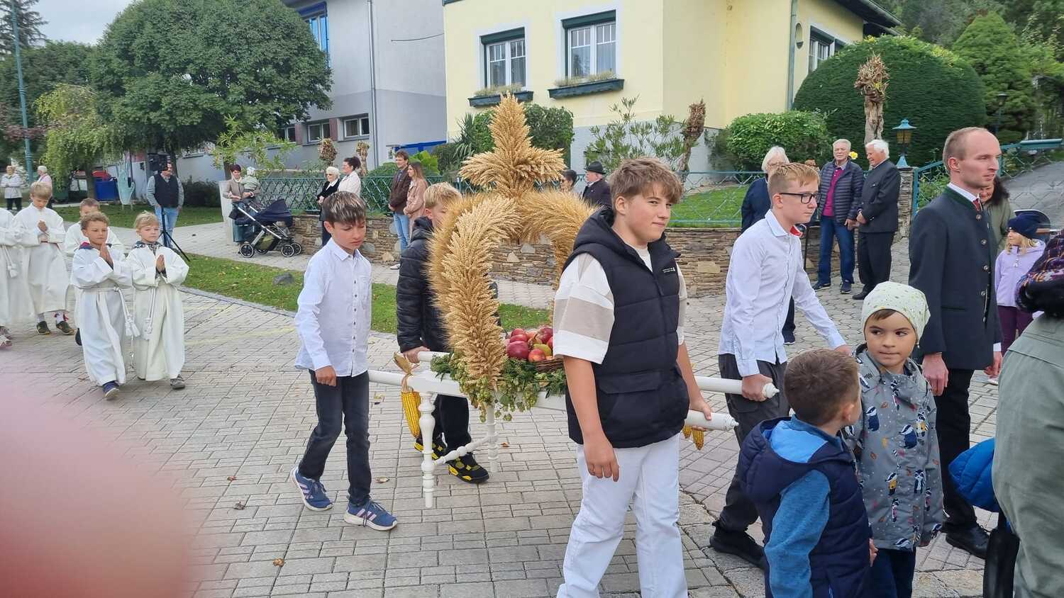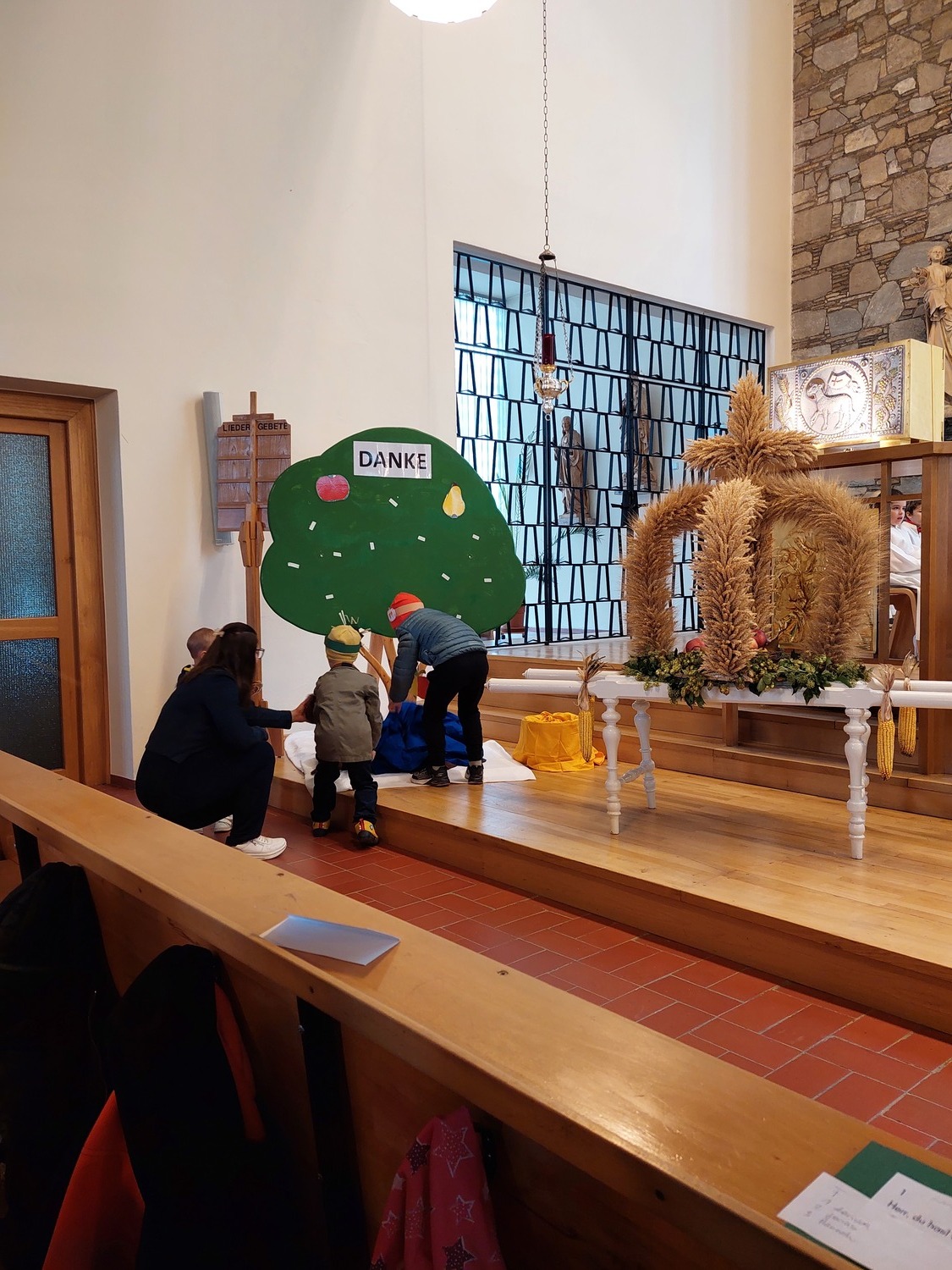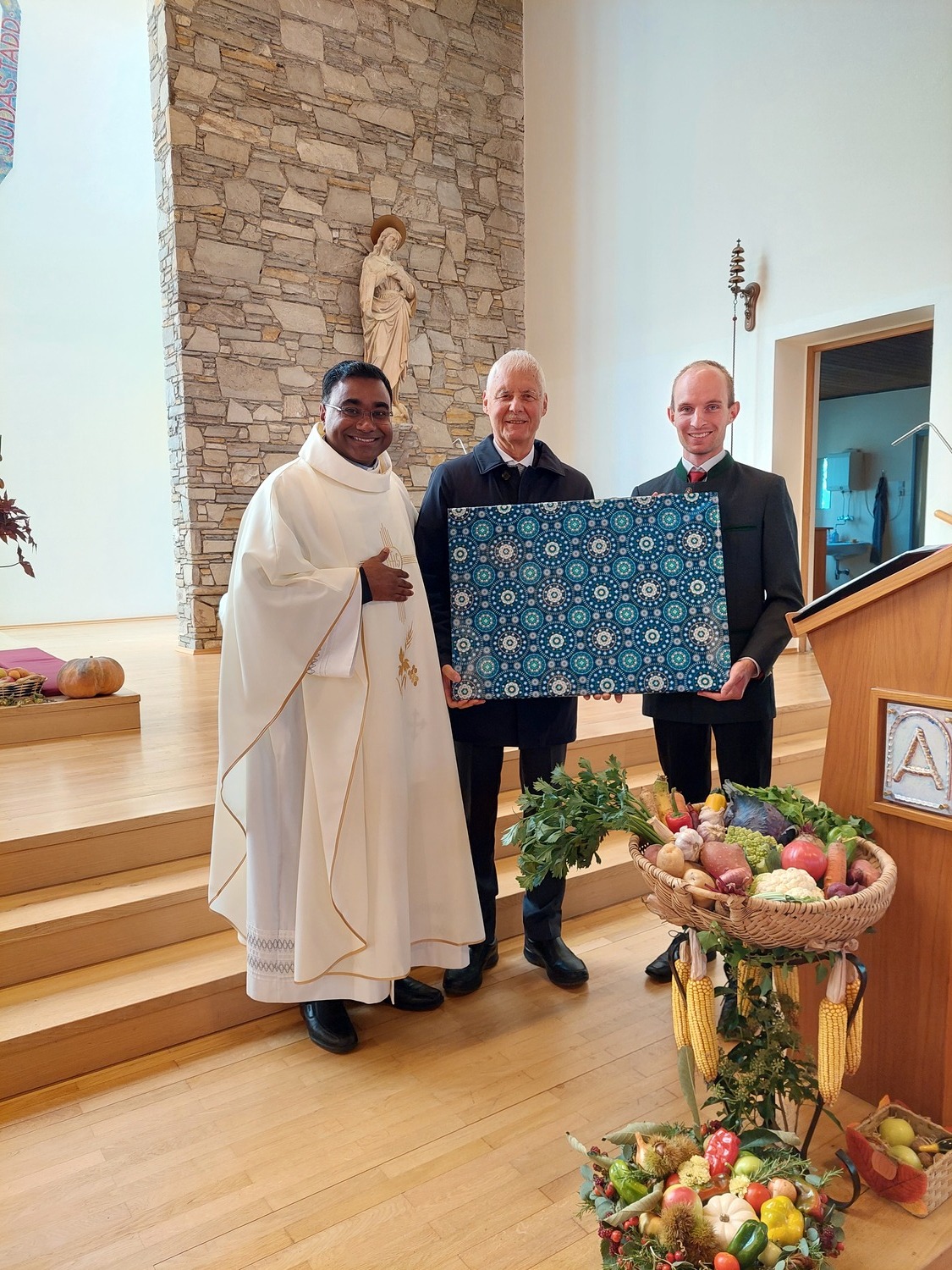 An diesem Tag dankte die Pfarre nicht nur für die Erntegaben, sondern ein großes Dankeschön erging von P. Jomon und den Messbesuchern an fünf Kinder, die sich neu für den Ministrantendienst gemeldet haben.