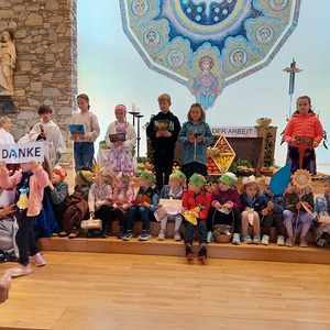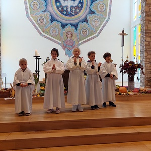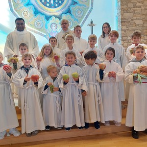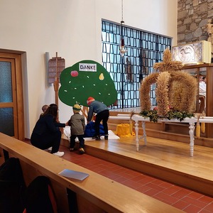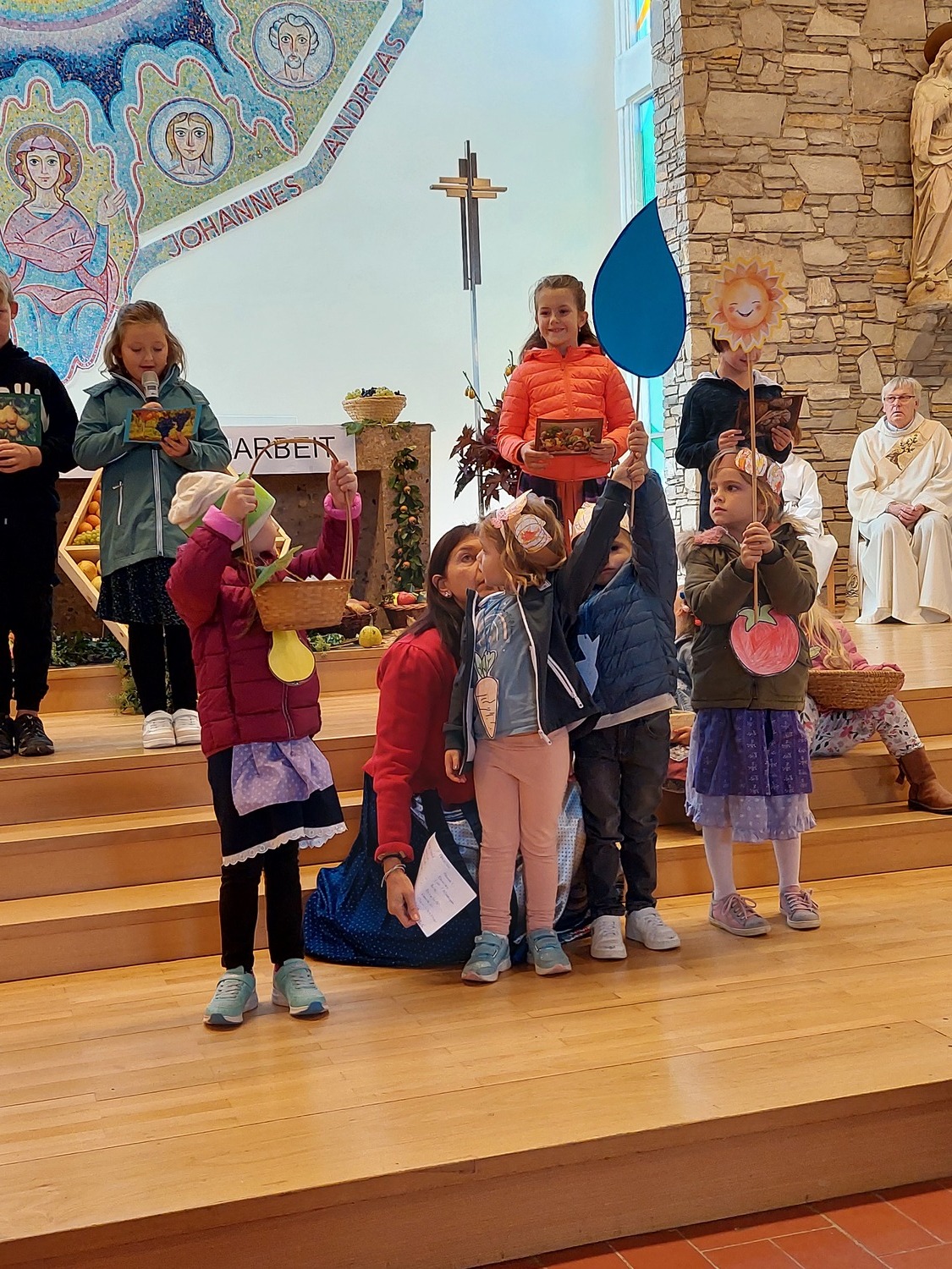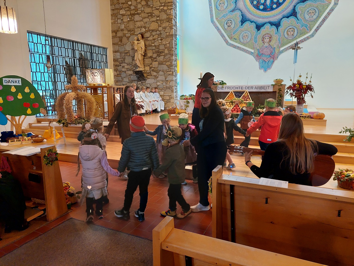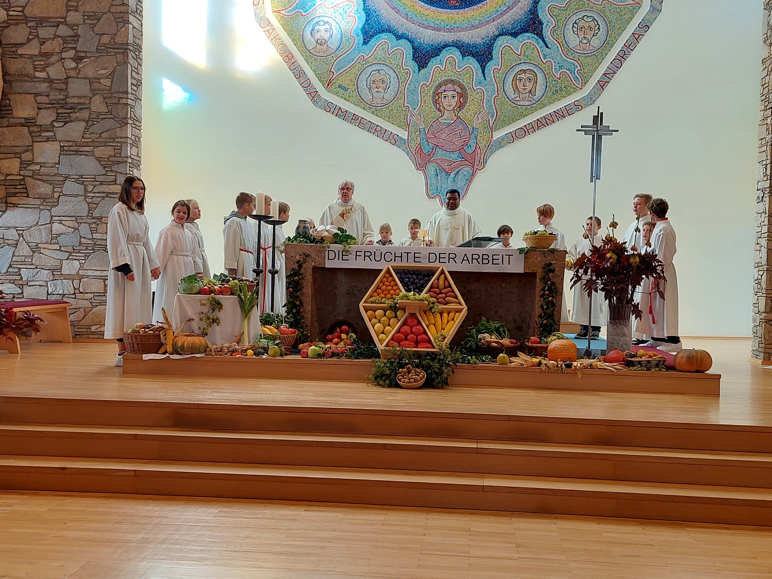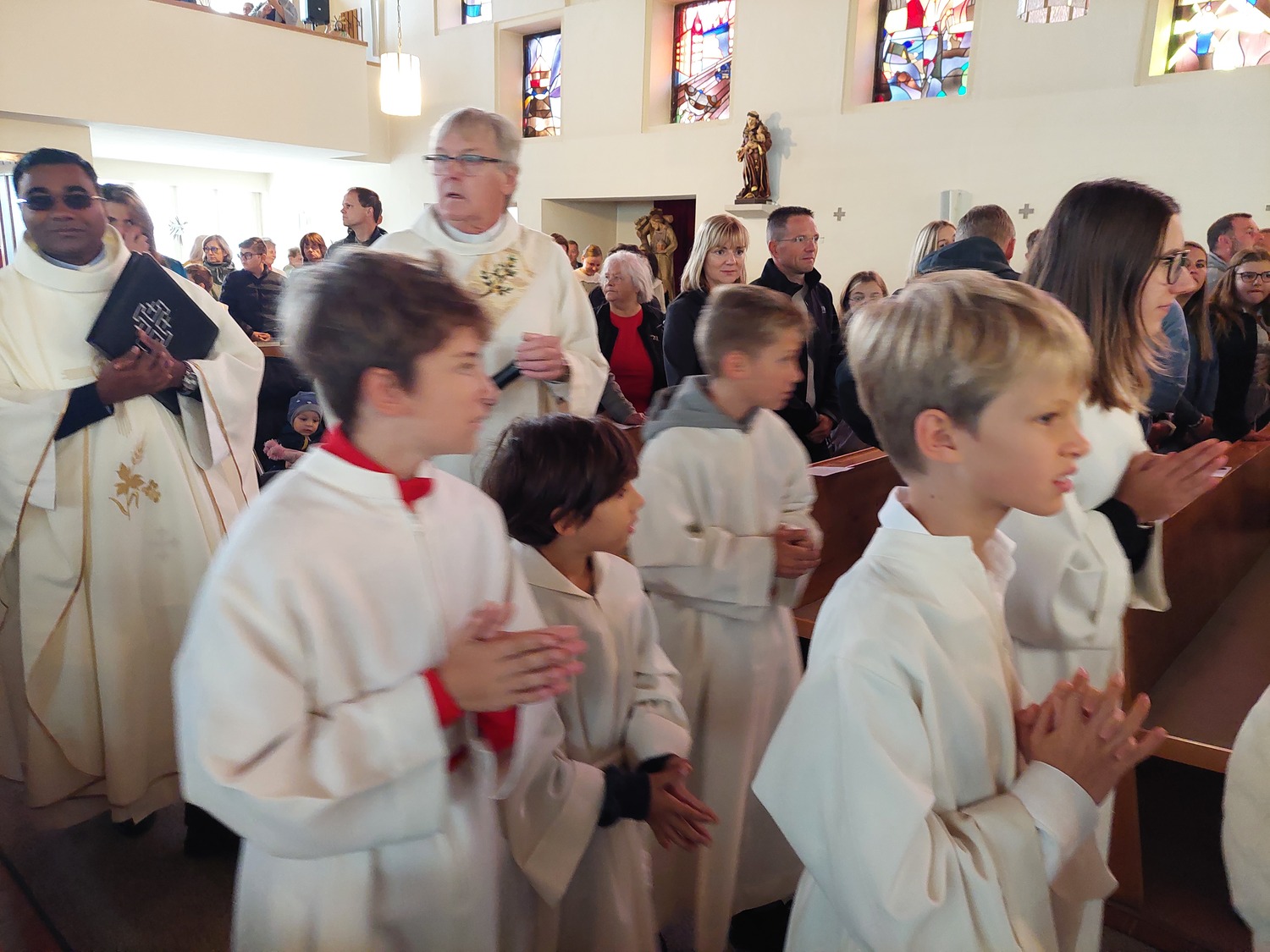 An diesem Tag dankte die Pfarre nicht nur für die Erntegaben, sondern ein großes Dankeschön erging von P. Jomon und den Messbesuchern an fünf Kinder, die sich neu für den Ministrantendienst gemeldet haben.