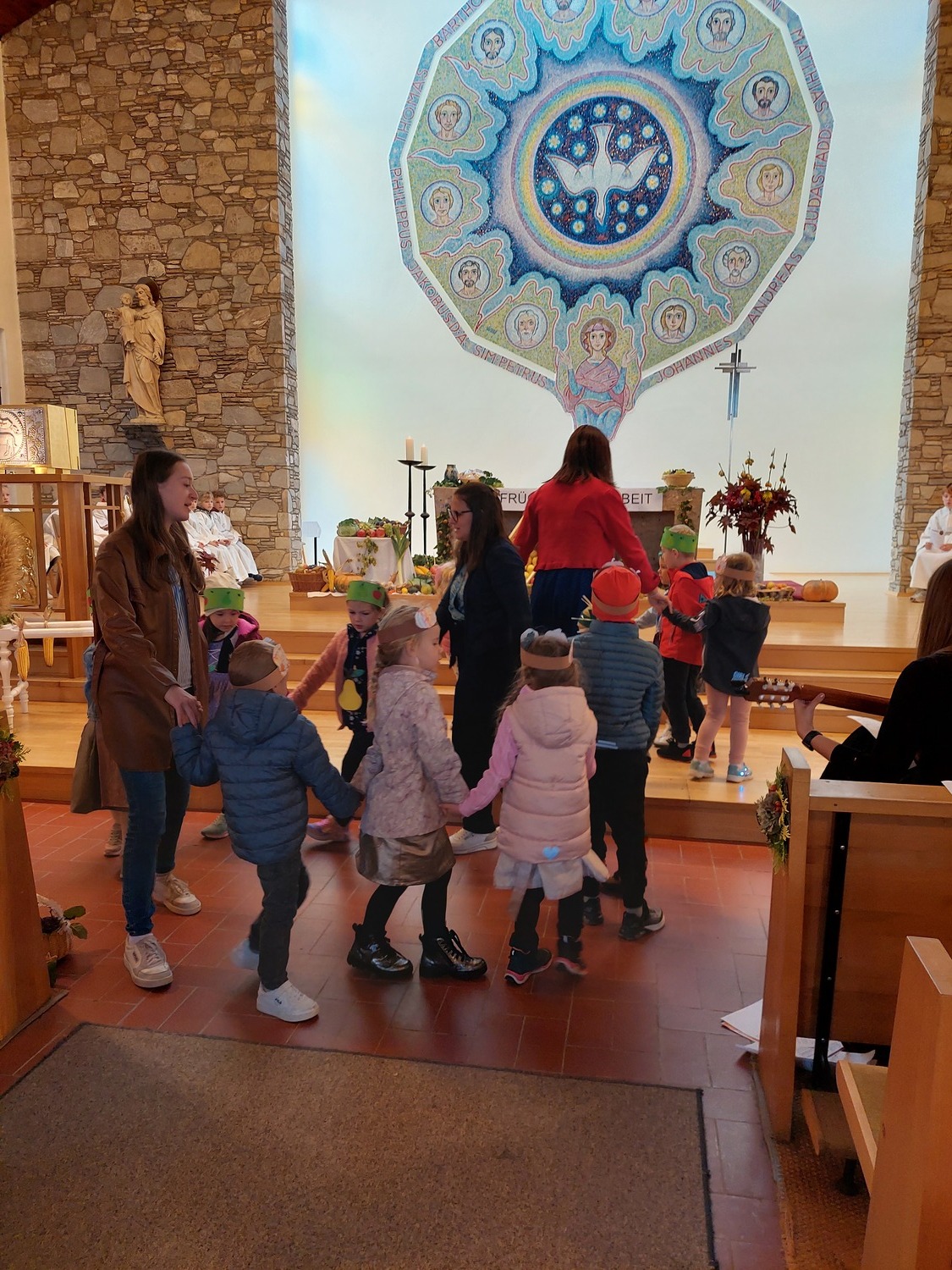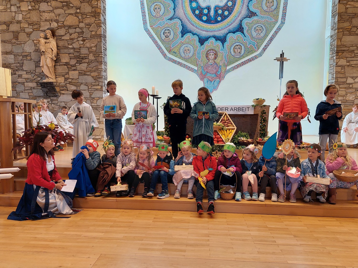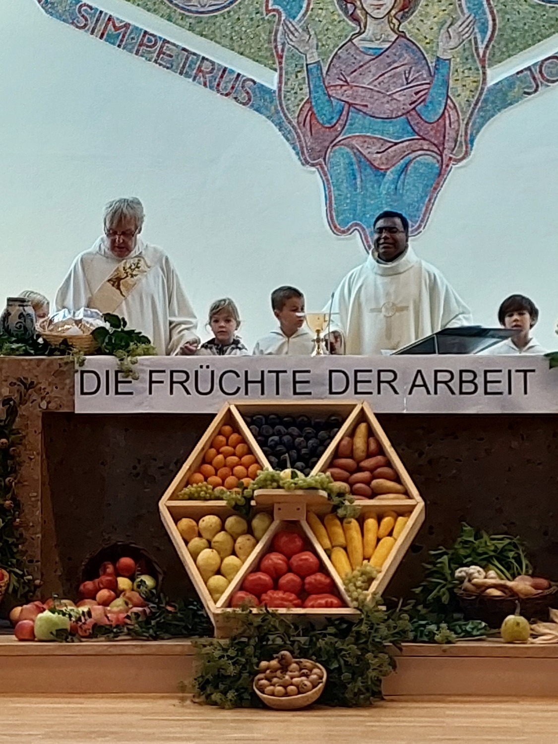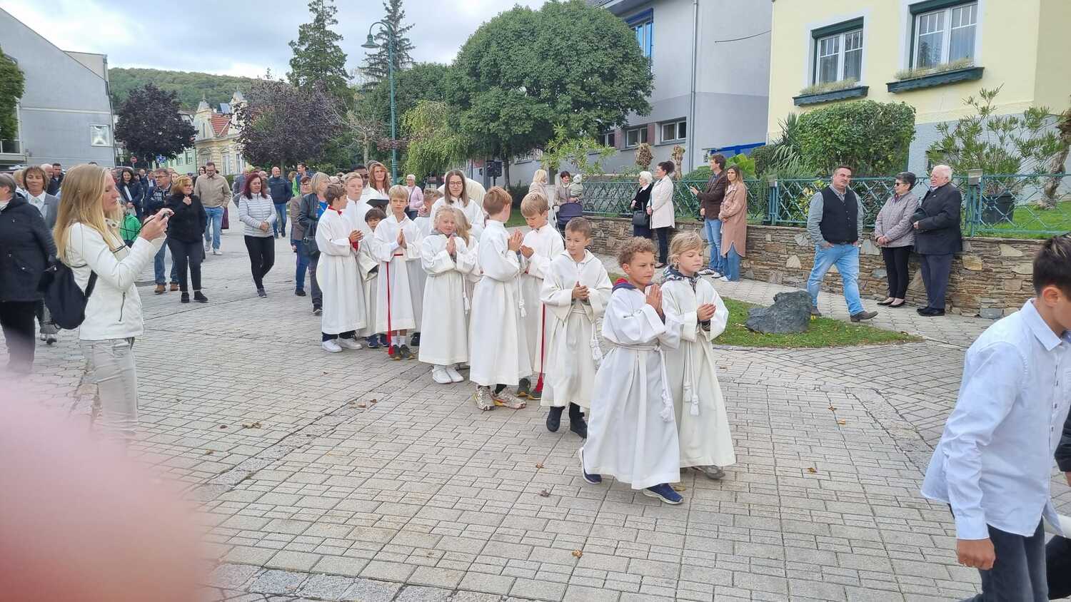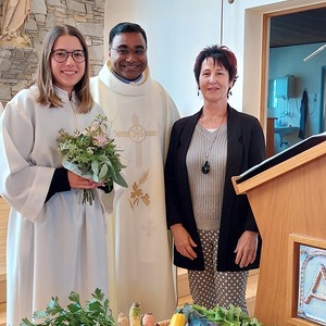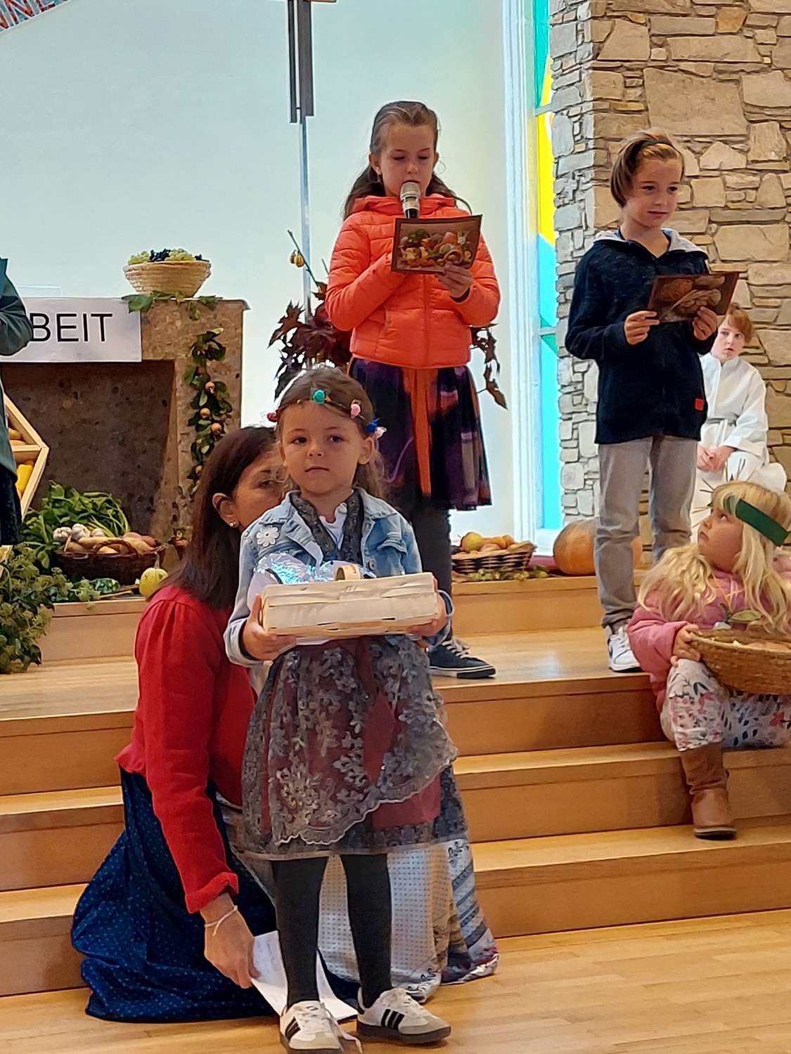 An diesem Tag dankte die Pfarre nicht nur für die Erntegaben, sondern ein großes Dankeschön erging von P. Jomon und den Messbesuchern an fünf Kinder, die sich neu für den Ministrantendienst gemeldet haben.