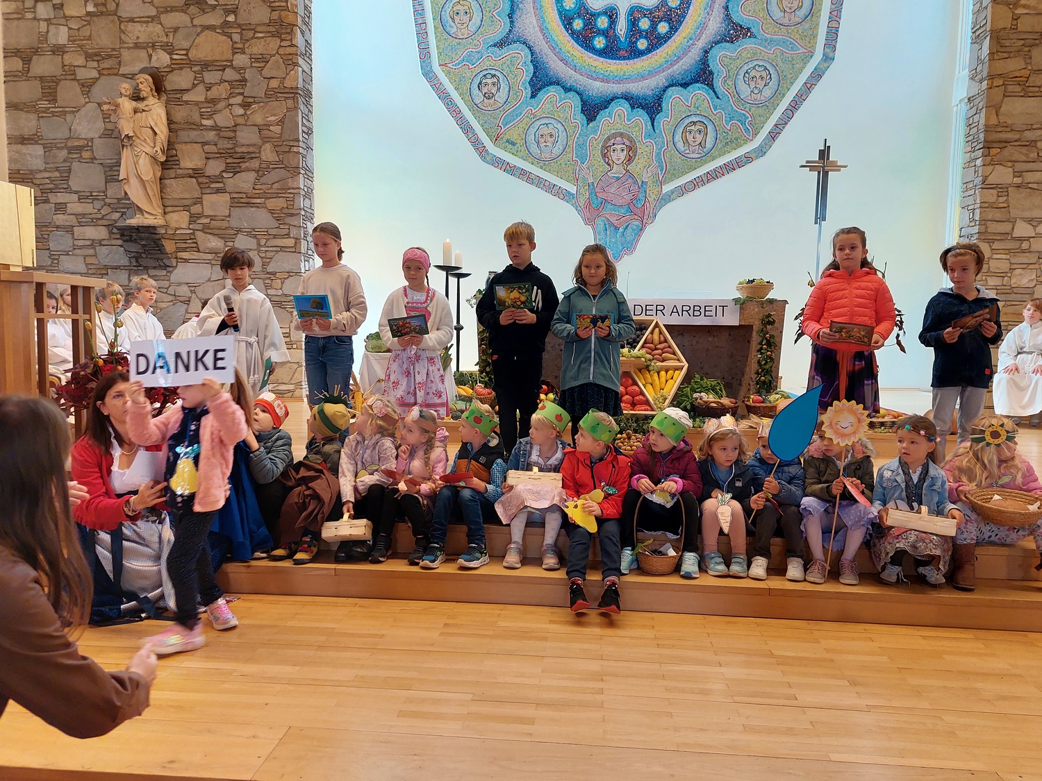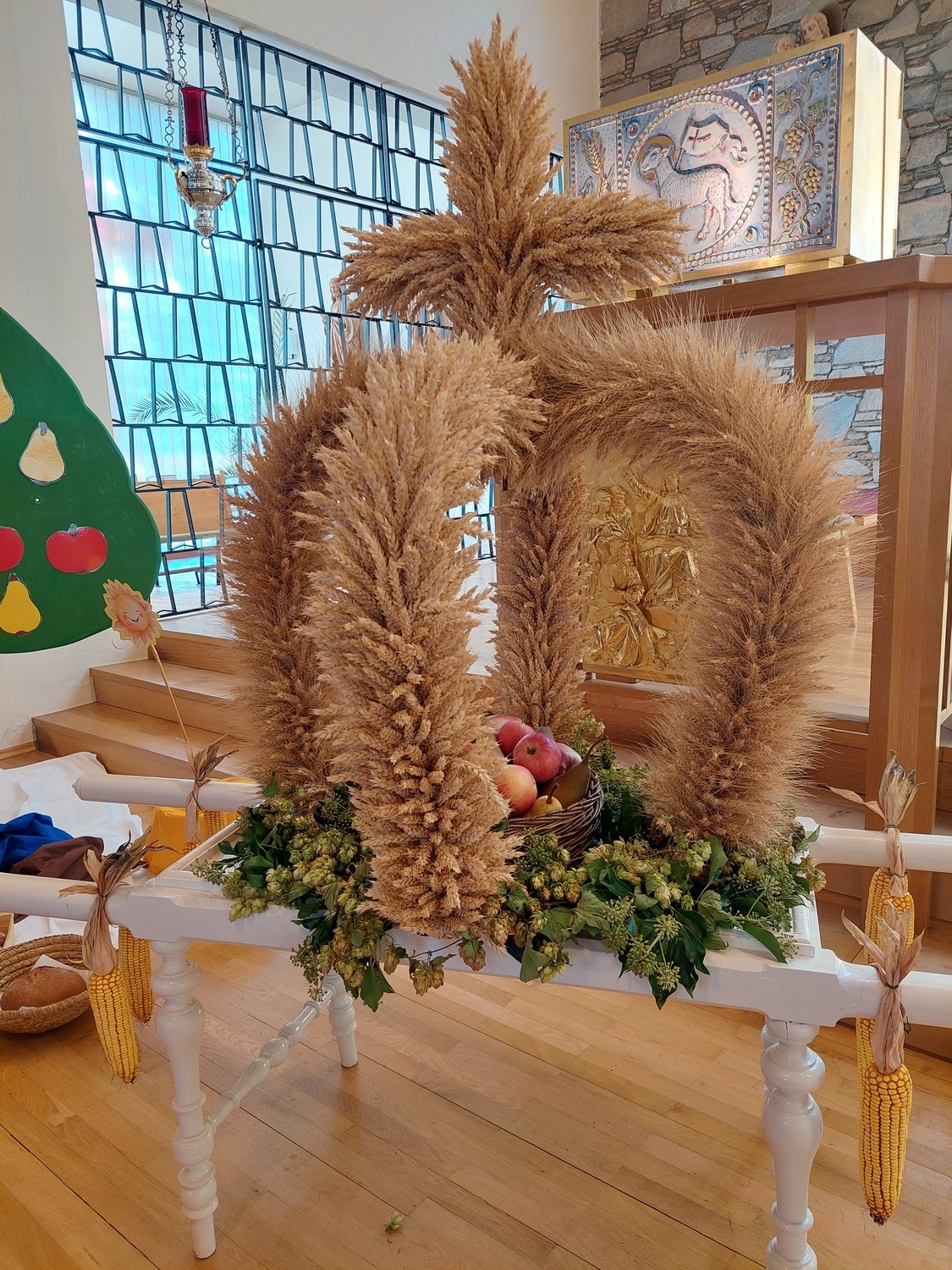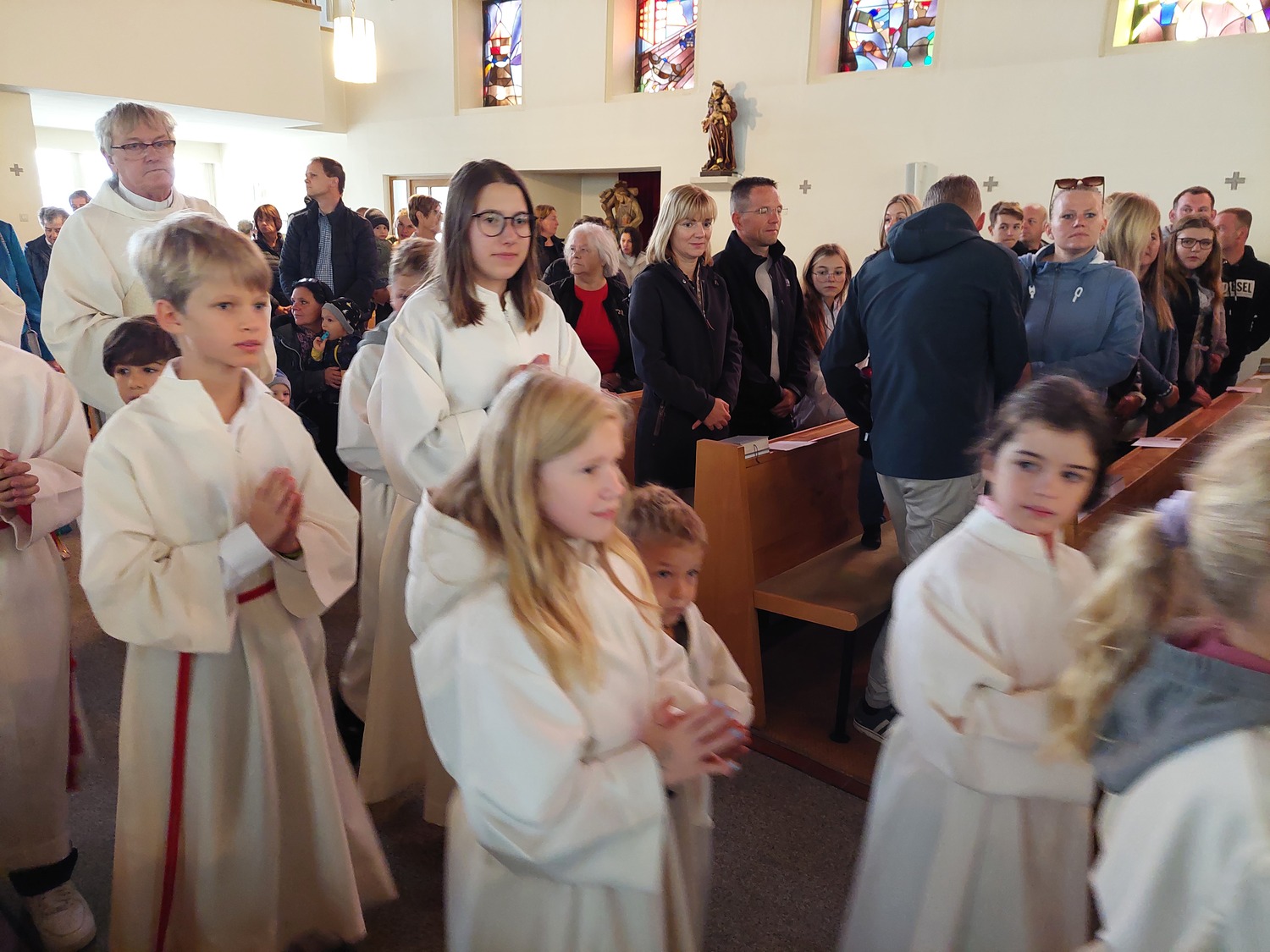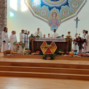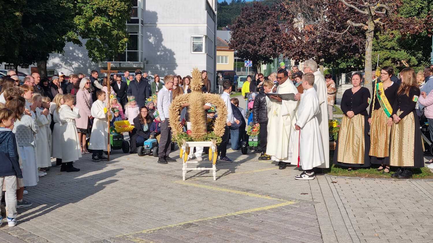 An diesem Tag dankte die Pfarre nicht nur für die Erntegaben, sondern ein großes Dankeschön erging von P. Jomon und den Messbesuchern an fünf Kinder, die sich neu für den Ministrantendienst gemeldet haben.