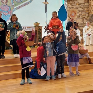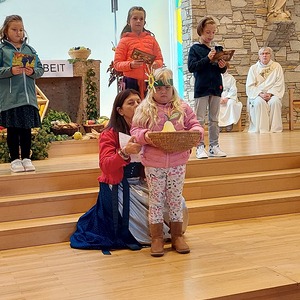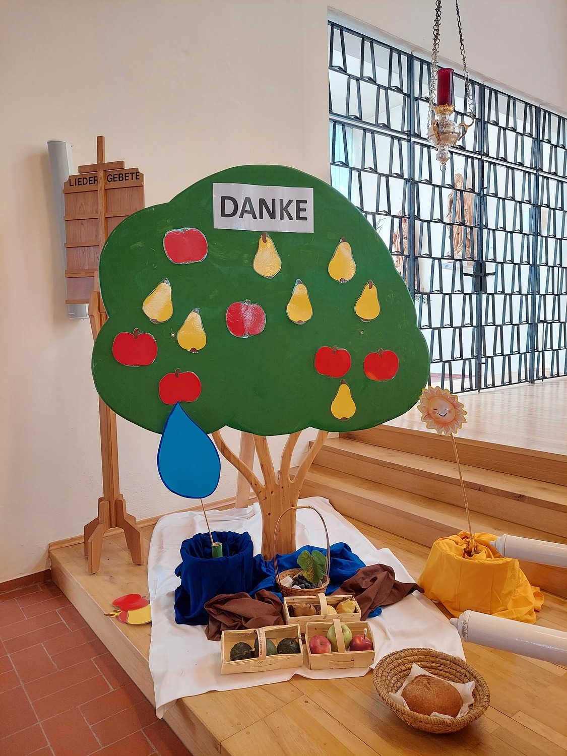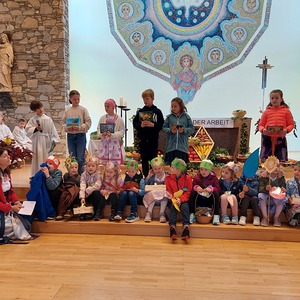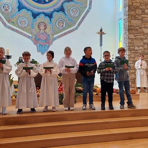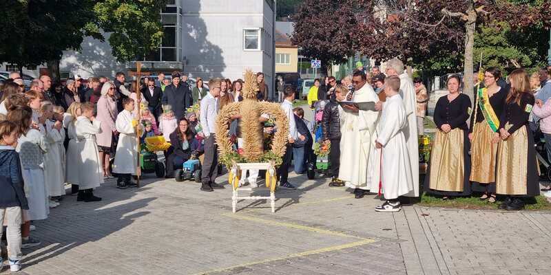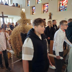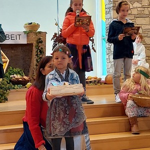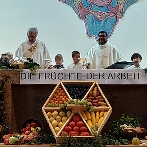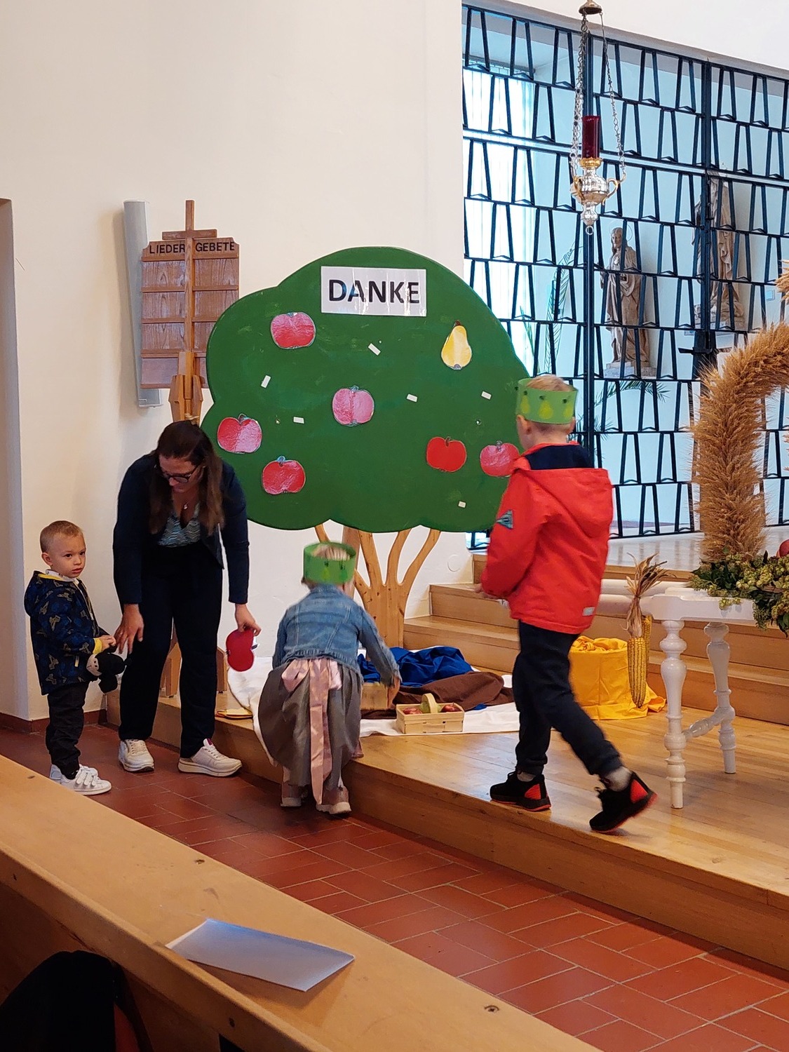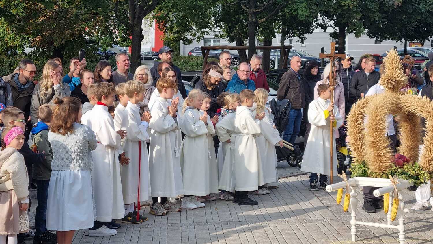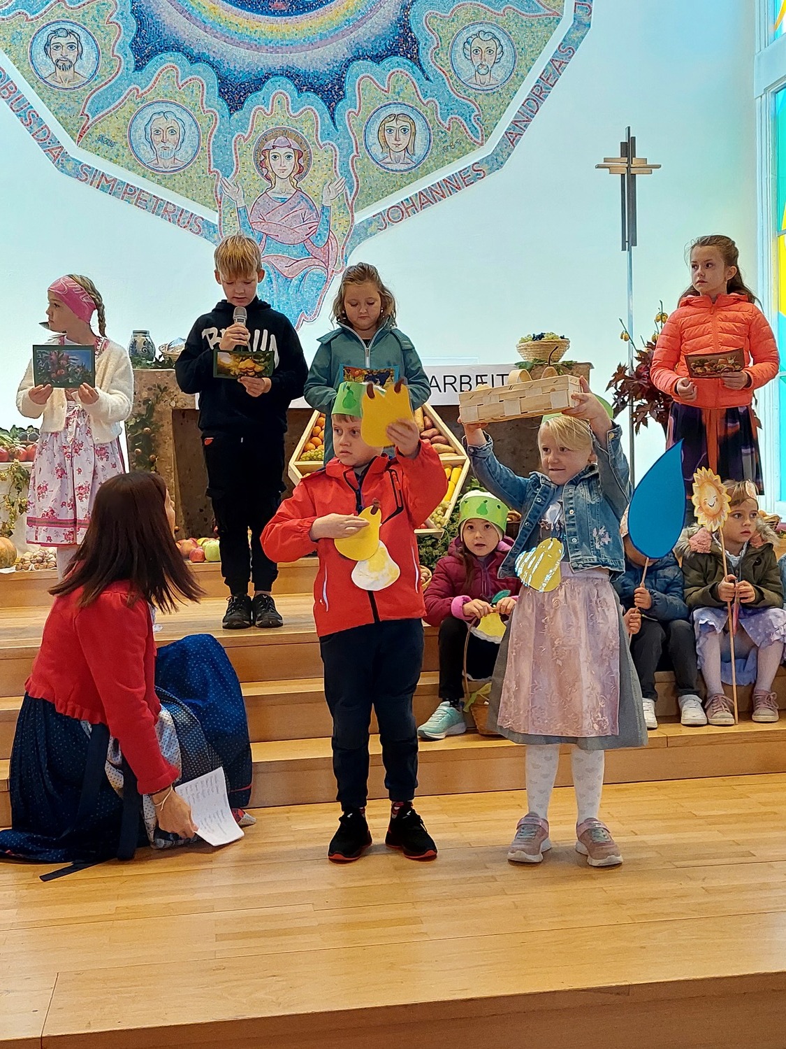 An diesem Tag dankte die Pfarre nicht nur für die Erntegaben, sondern ein großes Dankeschön erging von P. Jomon und den Messbesuchern an fünf Kinder, die sich neu für den Ministrantendienst gemeldet haben.