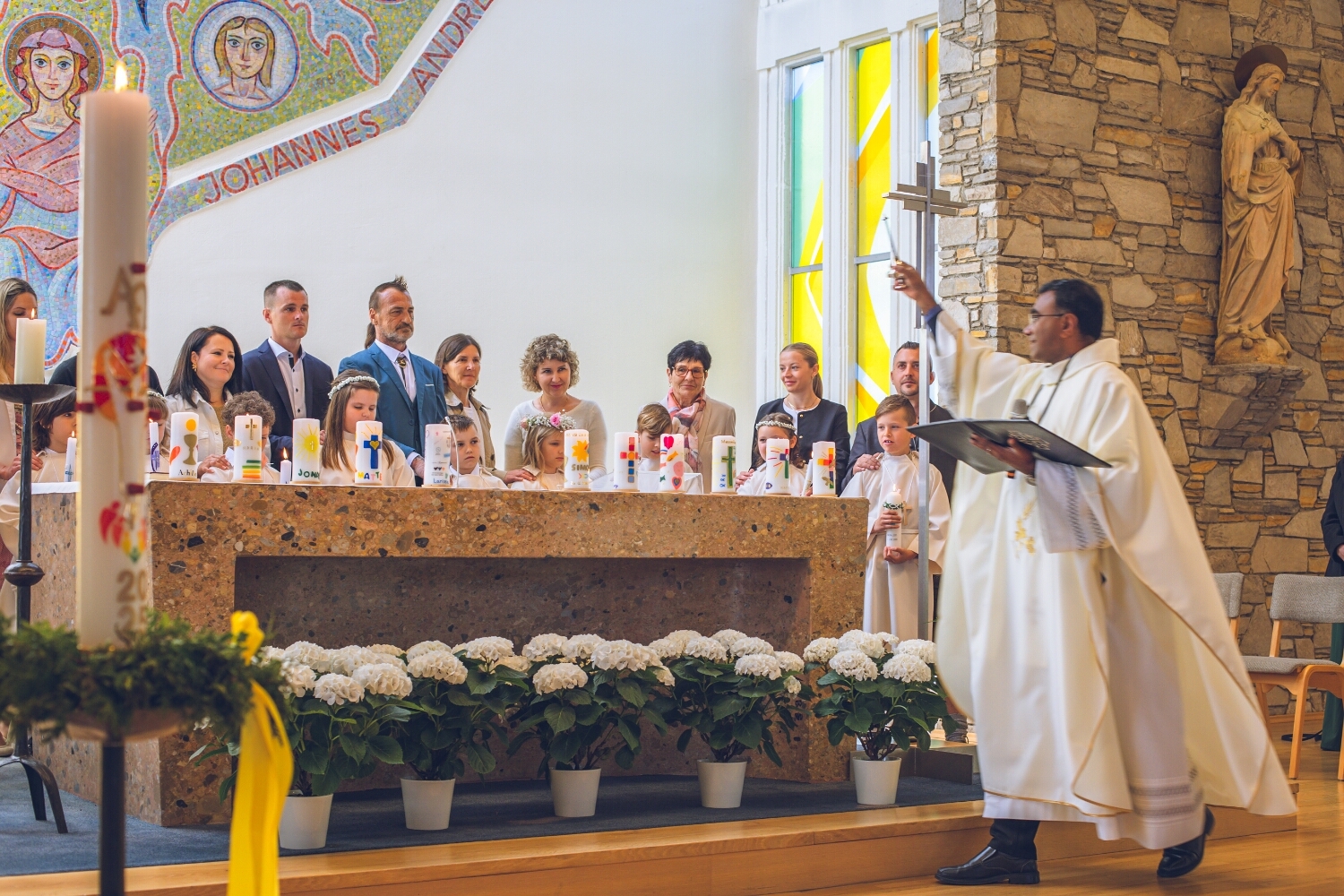 Auch dieses Jahr fand am "Weißen Sonntag" in unserer Pfarre die Erstkommunion statt. 11 Kinder hatten sich zum Thema "Jesus das Licht" auf den Empfang der ersten heiligen Kommunion vorbereitet.