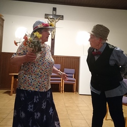 ….gibt’s auch bei den „Experten“ immer Freude, Scherz und Heiterkeit. So auch in diesem Jahr am 27. Februar. Gut gelaunt fanden sich rund 40 Seniorinnen und Senioren aus unserer Pfarre im Pfarrsaal ein – in freudiger Erwartung auf Darbietungen Gleichgesinnter (man wusste ja, dass da wieder etwas kommen wird), aber auch, um in froher Gemeinschaft zwei schöne Stunden miterleben zu können; „… sind wir alle doch geschaffen für die Freude, um zu lachen, froh zu sein, da zu sein für das Glück der Menschen um uns herum“ (nach Phil Bosmans). Lachen befreit – Humor entspannt, das merkte man, das war bei allen Darbietungen sichtbar und spürbar. Geboten wurde: Sketch (Schreibmaschinenreparatur) mit Elfi Strümpf und Alex Habeler, Couplet (Geburtstagswunsch „Vorderzahn“) mit Herta und Elfi Strümpf, Gedichten und Kurzgeschichten – vorgetragen von Karin Kremser, Regina Bauer und Anton Widlhofer. Mit Tee, Kaffee und Faschingskrapfen verköstigt, verweilten alle, die gekommen waren (darunter auch unser Herr Pfarrer Mag. Thorsten Carich) – in jeder Weise bereichert – noch in gemütlicher Runde. Es bewahrheitete sich offensichtlich: „Glücklich ist der Mensch, der dankbar für das ist, was ihm gegeben wird.“