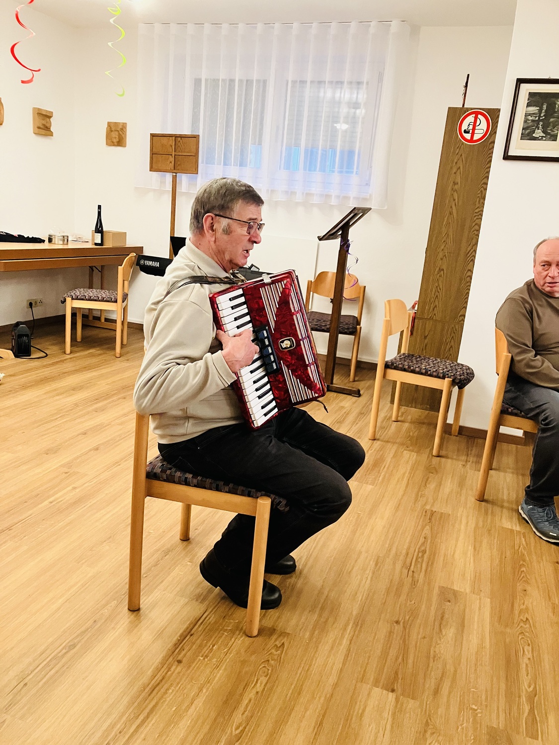 Mit lustigen Texten, Witzen und viel Humor wurde herzlich gelacht. Gemeinsam sang man alte, vertraute Lieder, musikalisch begleitet von einem Musikanten, der für beste Stimmung sorgte. Schon bald hielt es einige nicht mehr auf den Stühlen, und es wurde getanzt und geschunkelt.