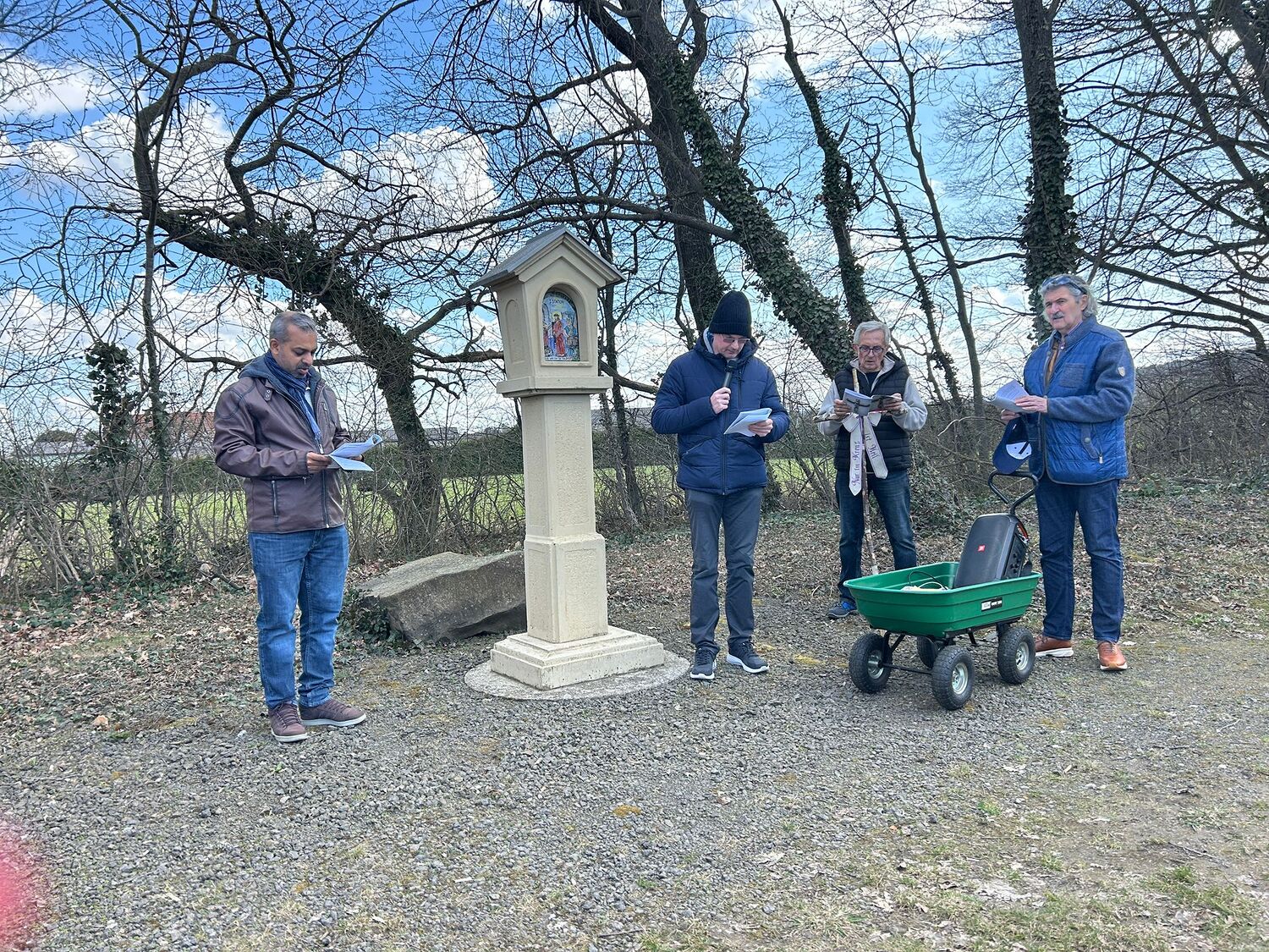 Bei strahlendem Sonnenschein und typisch märzlichem, etwas windigem Wetter machten sich die Teilnehmerinnen und Teilnehmer auf den Weg. Während wir von Station zu Station zogen, hielten wir inne, um den Leidensweg Christi zu betrachten. Die Mischung aus tiefgründigen Gebeten, gemeinsamen Liedern und der Bewegung an der frischen Luft schuf eine ganz besondere Atmosphäre der Einkehr.