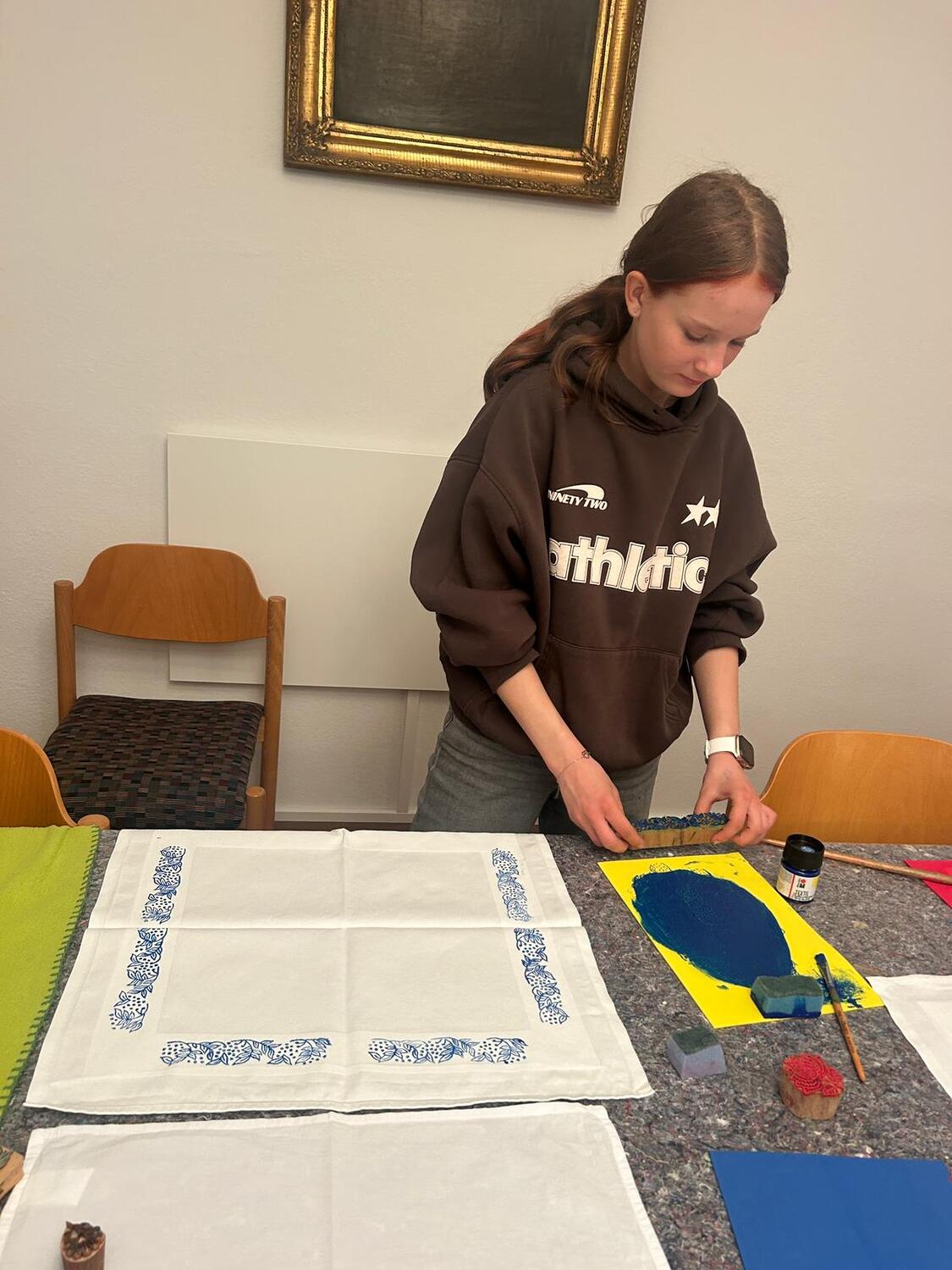 Besonders schön zu beobachten war das bunte Miteinander: Von Kindern und Jugendlichen bis hin zu erfahrenen Frauen waren alle Generationen vertreten. Gemeinsam lernten sie die Technik des Handdrucks kennen, deren Wurzeln ursprünglich im Orient liegen.