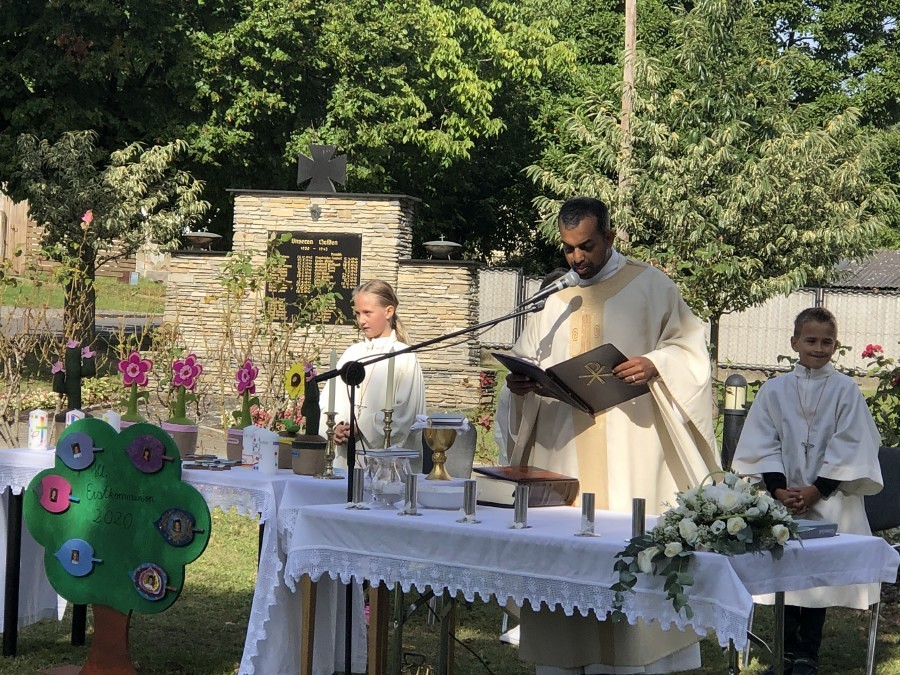 Es war ein besonders schönes Fest, das auf Grund der Corona- Pandemie im Freien vor der Kirche stattfand.