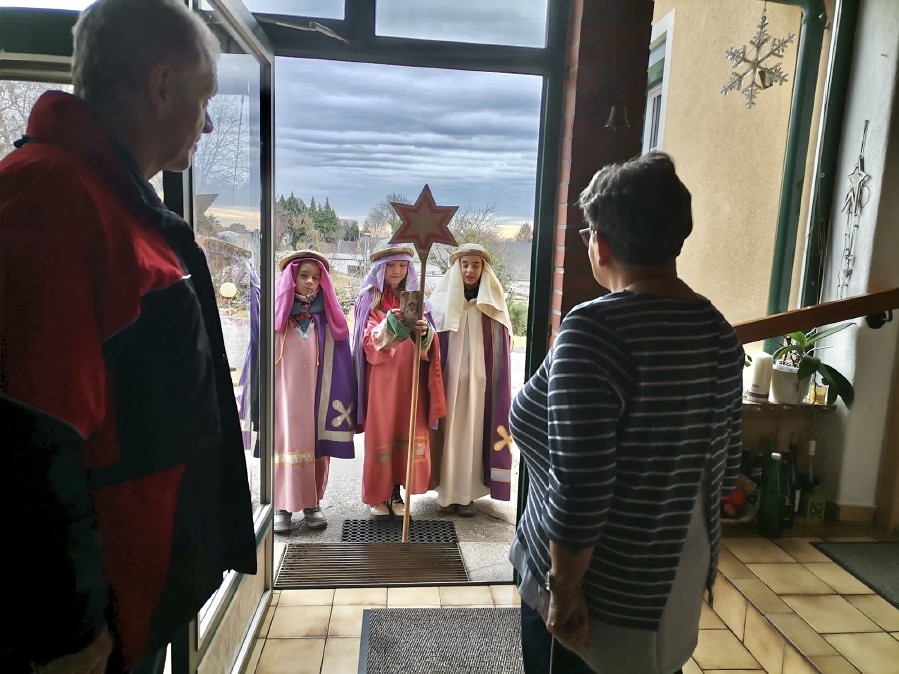 Besonders in diesem Jahr hatten wir das Gefühl, dass wir schon erwartet wurden und alle sich mit „Abstand“ freuten den Sternsingern zuhören zu dürfen.