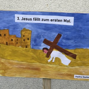 In diesem Jahr haben die Erstkommunionskinder den Kinderkreuzweg selbst gestaltet. Jedes Kind durfte zwei Stationen gestalten. Mit den Eltern haben sie sich in das Thema vertieft. Daraus entstanden wunderschöne Kunstwerke. Diese visualisierten den Leidensweg Jesu nochmal gut.