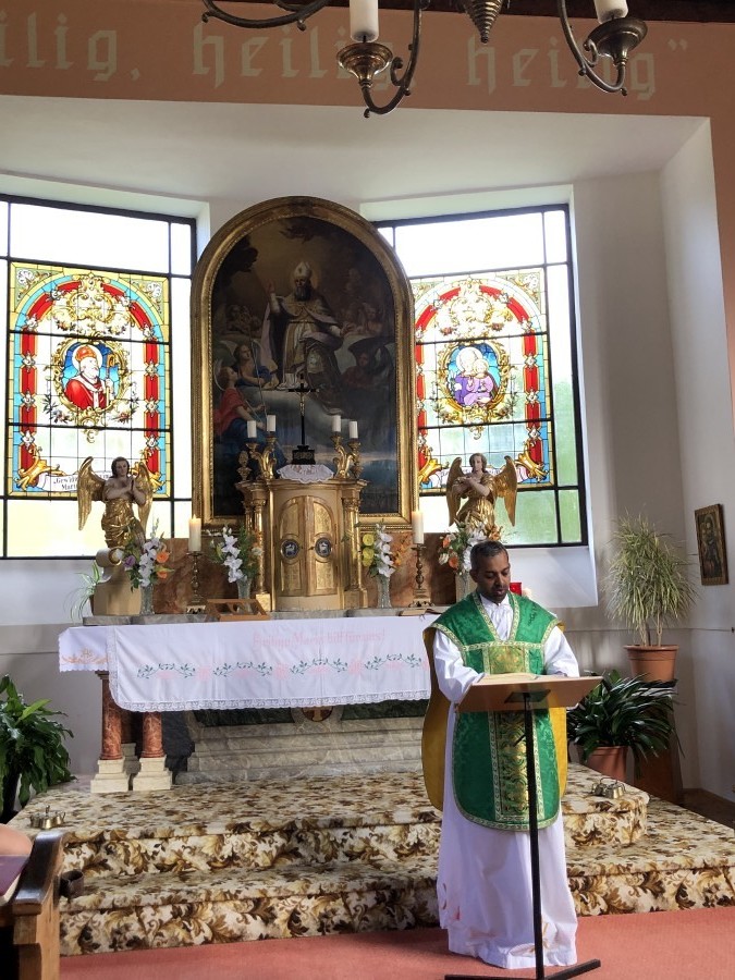 Am dritten Tag begrüßten wir unseren Pfarrer Shinto, der sich der Pilgergruppe anschloss. Wieder führte uns der Weg durch wunderschöne Landschaften, Wiesen, Auen und Wälder u. a. über das Preiner-Gscheid zum „Kobersdorfer-Wallfahrtsmarterl“. Nach einer besinnlichen Andacht setzten wir unsere Wallfahrt Richtung Frein, zu unserem nächsten Quartier, fort. Mit der Abendmesse in der Klemenskirche ,nahe unserer Herberge, bedankten wir uns für den erlebnisreichen Tag. Weitere 20km waren geschafft und wir holten uns Mut und Kraft für den letzten Tag. Mit einem fröhlichen Liederabend ging der Tag zu Ende.