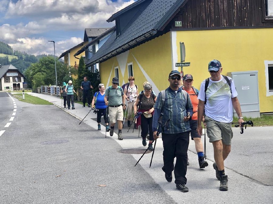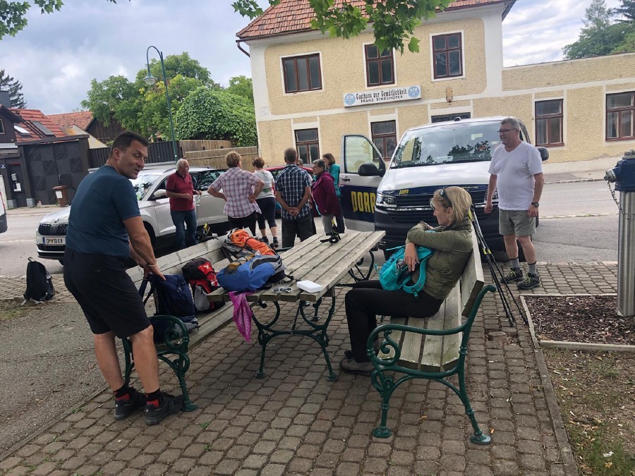 Am ersten Tag führte uns der Pilgerweg über Hochwolkersdorf, Pitten und Breitenau nach Grünbach am Schneeberg zur Schubertlinde, wo wir im Gasthof Mohr nach rund 50 km Fußmarsch den Tag ausklingen ließen. Ein besonderes Erlebnis bei dieser Wallfahrt sind die Rosenkranzgebete während des Gehens. „ Beten mit den Füßen“,nachdenken über das Leben, gute aufbauende Gespräche führen, wenn es einmal schwer fällt den Weg zu gehen.
