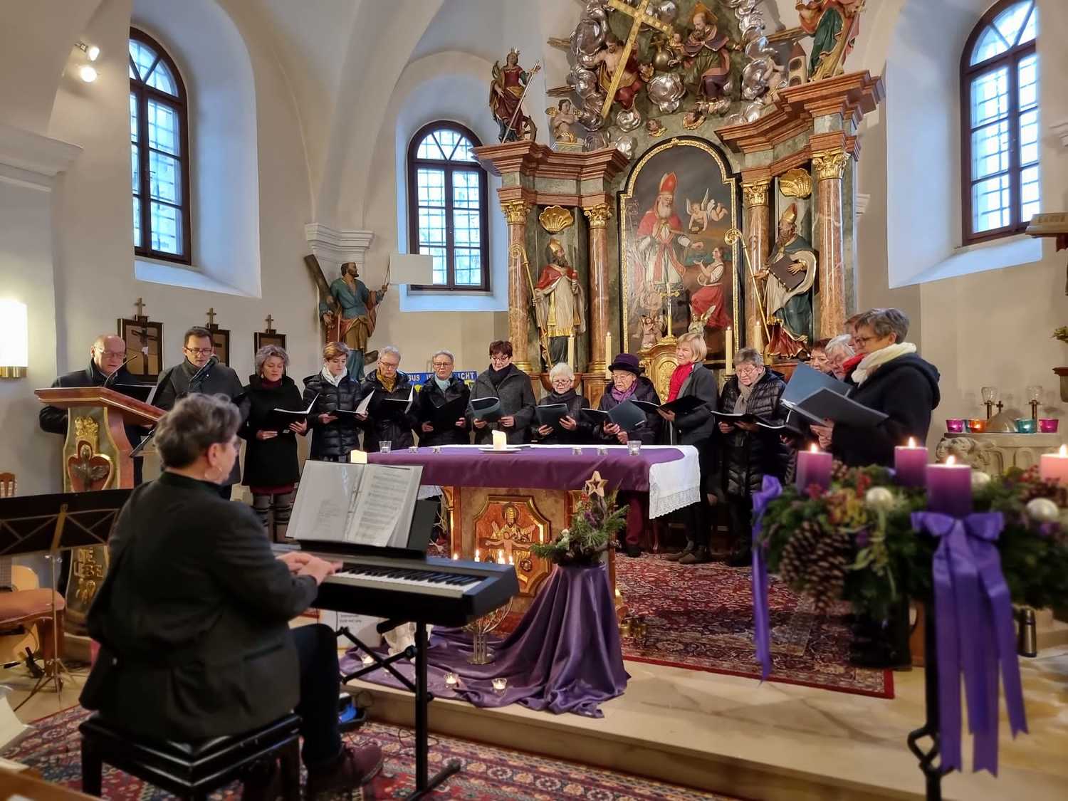Der Kirchenchor hat die volle Kirche wirklich in Stimmung gebracht. Es war eine besinnliche, sehr stimmungsvolle Stunde mit Texten und Gesang. Auch die Gäste hatten die Möglichkeit mitzusingen.