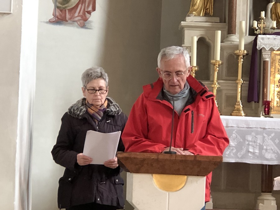 In der Pfarrkirche Markt Sankt Martin feierten die Pilgerinnen und Pilger eine Kreuzwegandacht. Die Verknüpfung des Leidensweges Christi mit dem eigenen Leben und mit Bibelstellen aus den Evangelien war berührend und hat nachdenklich gemacht.