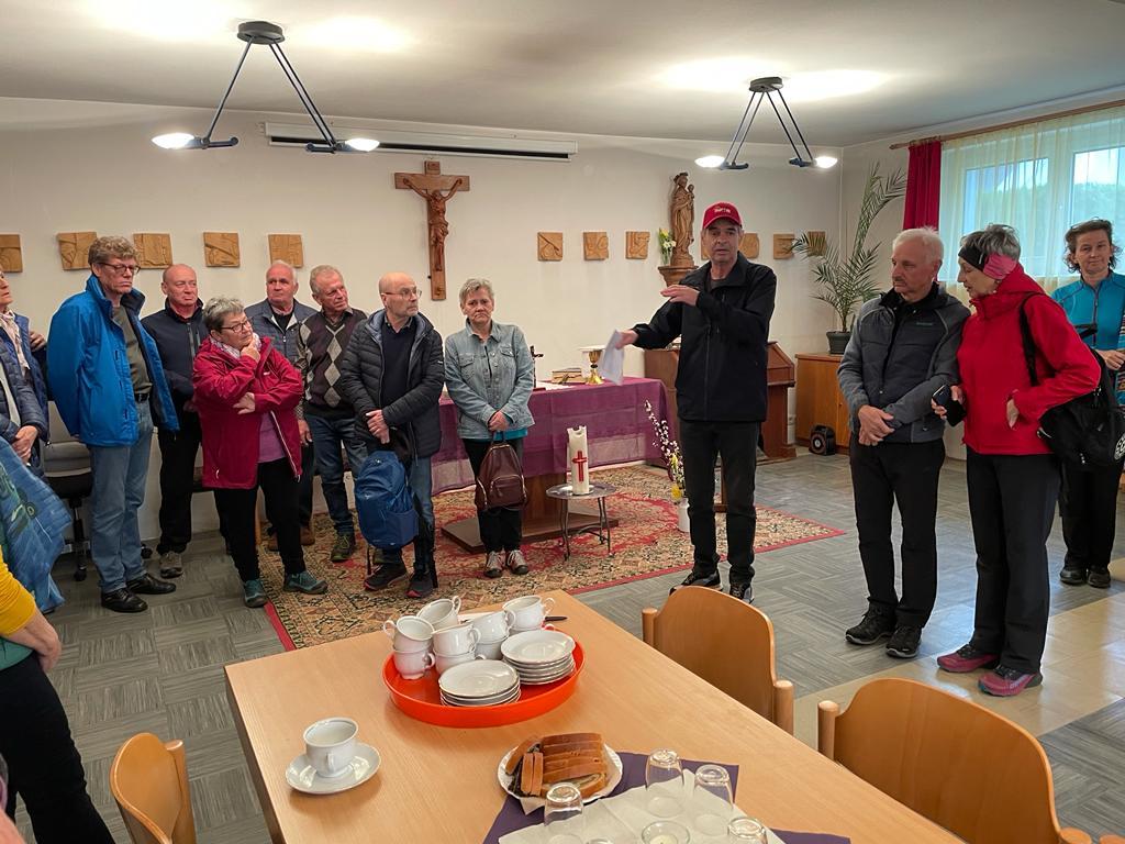 Kan. Roman Schwarz bedankte sich für alle Vorbereitungsarbeiten, für die inhaltliche Gestaltung und für die gute Gemeinschaft beim Pilgern. Dieser Dank galt auch Pfarrer Shinto und den Mitarbeiterinnen der Pfarre Kobersdorf, welche überraschend zu einer Agape einluden.