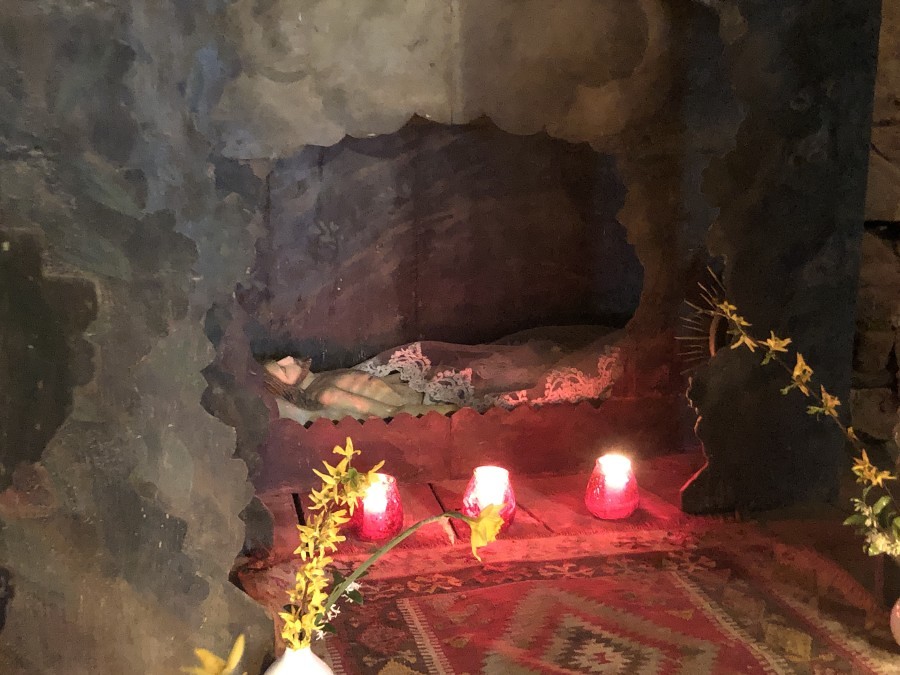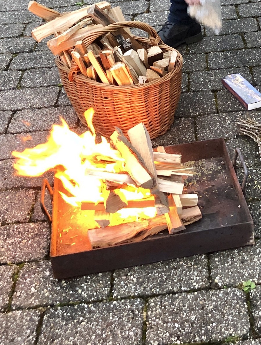 Die Kerze mit den Buchstaben Alpha und Omega und der Jahreszahle drückt aus, dass Anfang und Ende der Zeit, in die Ewigkeit Gottes eingeschrieben sind.