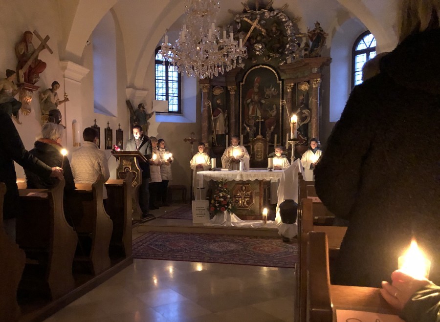 Beim Einzug in die noch völlig dunkle Kirch ruft der Priester dreimal: