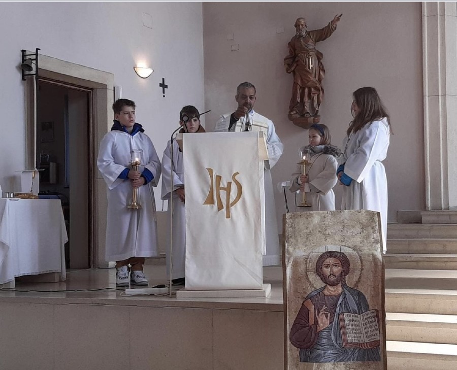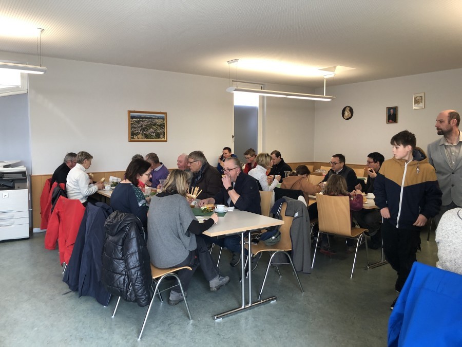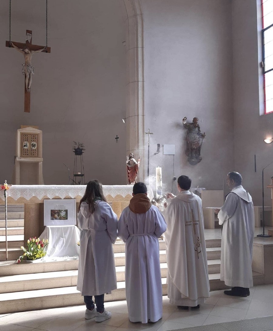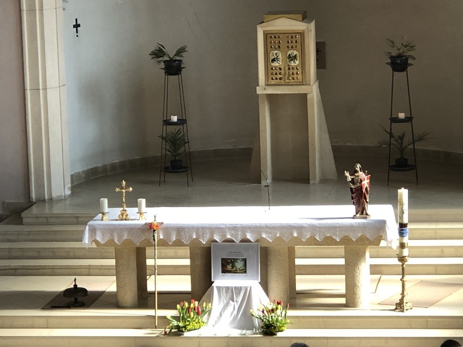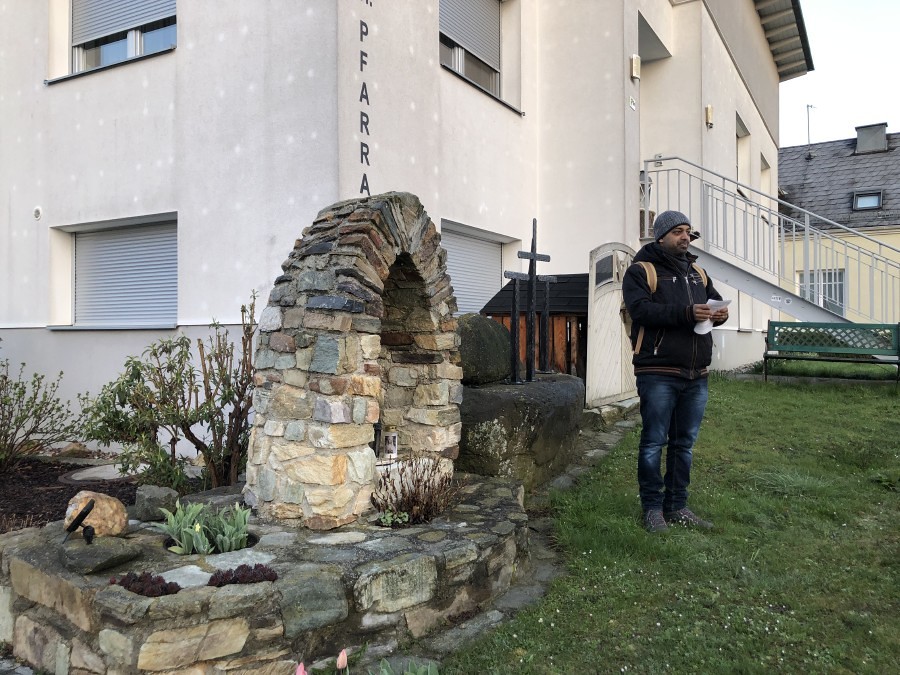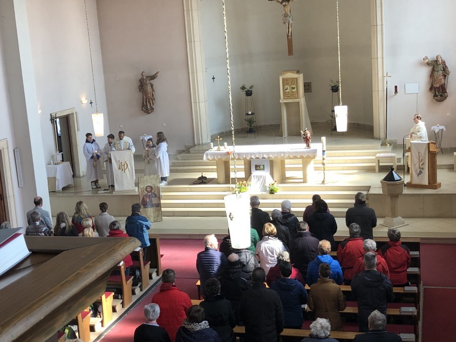 Nach 2 Stunden war dann Lackenbach erreicht, wo die vielen Wanderer aus allen Pfarren und Filialgemeinden mit einem guten Frühstück versorgt wurden. Anschließend feierte Gastpriester David Gold und Pfarrer Shinto die Eucharistie mit uns. Zu den 40 Emmauspilgern hatten sich noch weitere Gläubige gesellt, die den Weg nicht zu Fuß machen konnten, die Heilige Messe zum Osterfest aber nicht versäumen wollten.