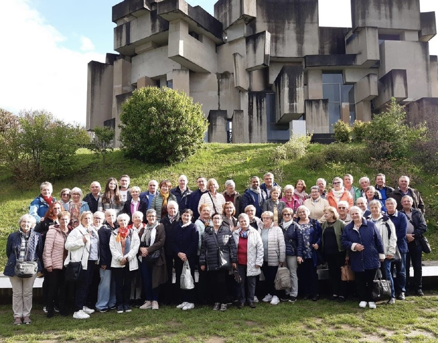 Beendet wurde der Ausflug mit einem Besuch der Wotrubakirche am Georgenberg in Wien-Mauer, welche in den 70-ger Jahren des 20. Jahrhunderts nach Entwürfen des Bildhauers Fritz Wotruba erbaut wurde. Das Kirchengebäude ist stilistisch dem Brutalismus zuzurechnen. Die Wotrubakirche, die heute zu den touristischen Sehenswürdigkeiten von Wien zählt, wirkte auf die knapp 60 Reiseteilnehmer sehr beeindruckend.
