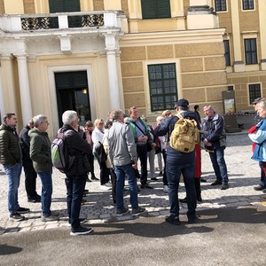 Im Anschluss an die Hl. Messe erfolgte – in zwei Gruppen – ein geführter Rundgang durch den Schlosspark und eine Besichtigung der Prunkräume des Schlosses Schönbrunn. Nach dem Mittagessen ging es mit dem Bus über die Höhenstraße zum Kahlenberg, wo die Gläubigen einen herrlichen Ausblick auf die Bundeshauptstadt Wien genießen konnten. Ein Muss war natürlich auch eine Kurzvisite in der St. Josef-Kirche am Kahlenberg.
