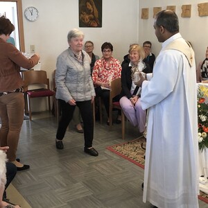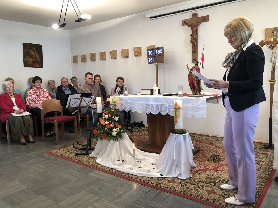 Danke auch an Martina Pauer, unsere Chorleiterin. Mit großer Freude leitet sie unseren Kirchenchor und wir sind sehr froh und dankbar, sie als unsere Chorleiterin zu haben.