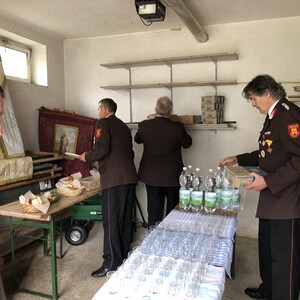 Nach dem Gottesdienst wurde zu einer Agape geladen. Trotz des Regens verweilten die Besucher bei netten Gesprächen und einem guten Miteinander.